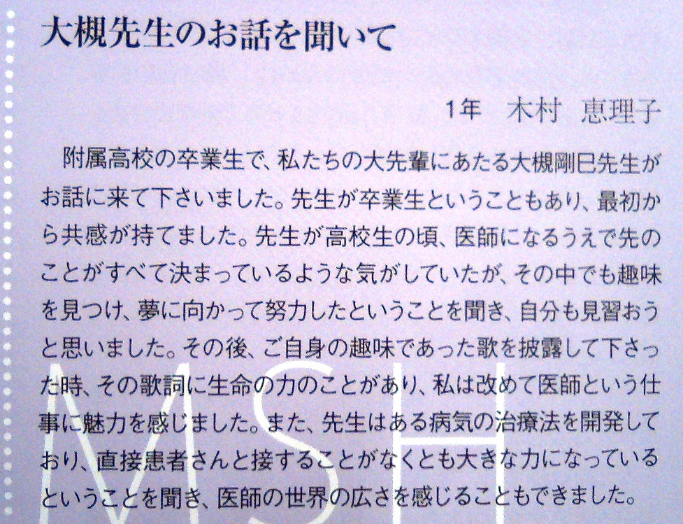 大槻の話には,生徒さんが,感想を寄せてくれていました。