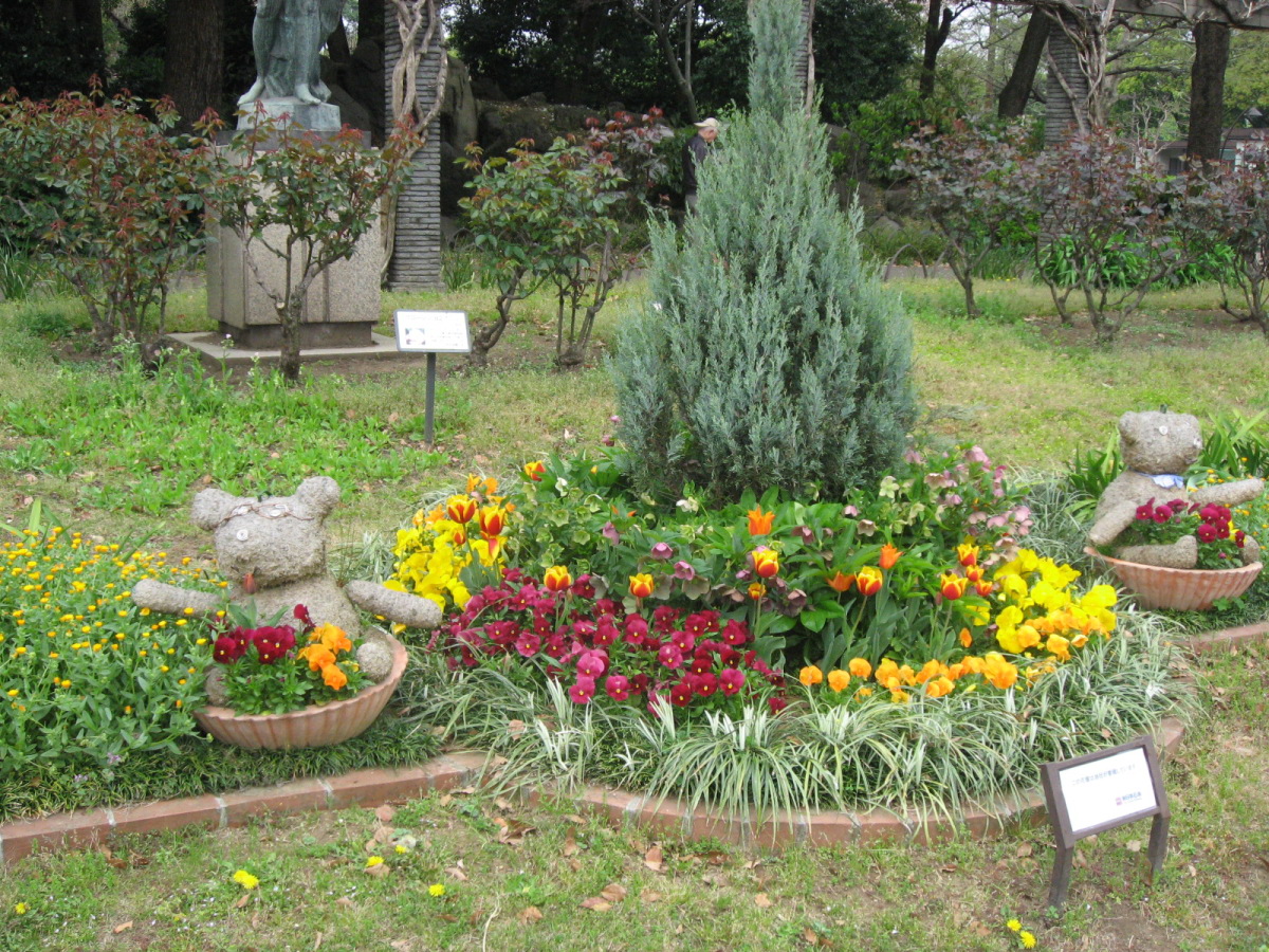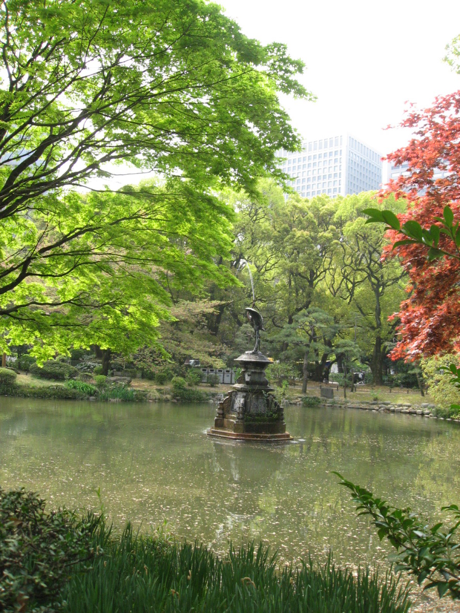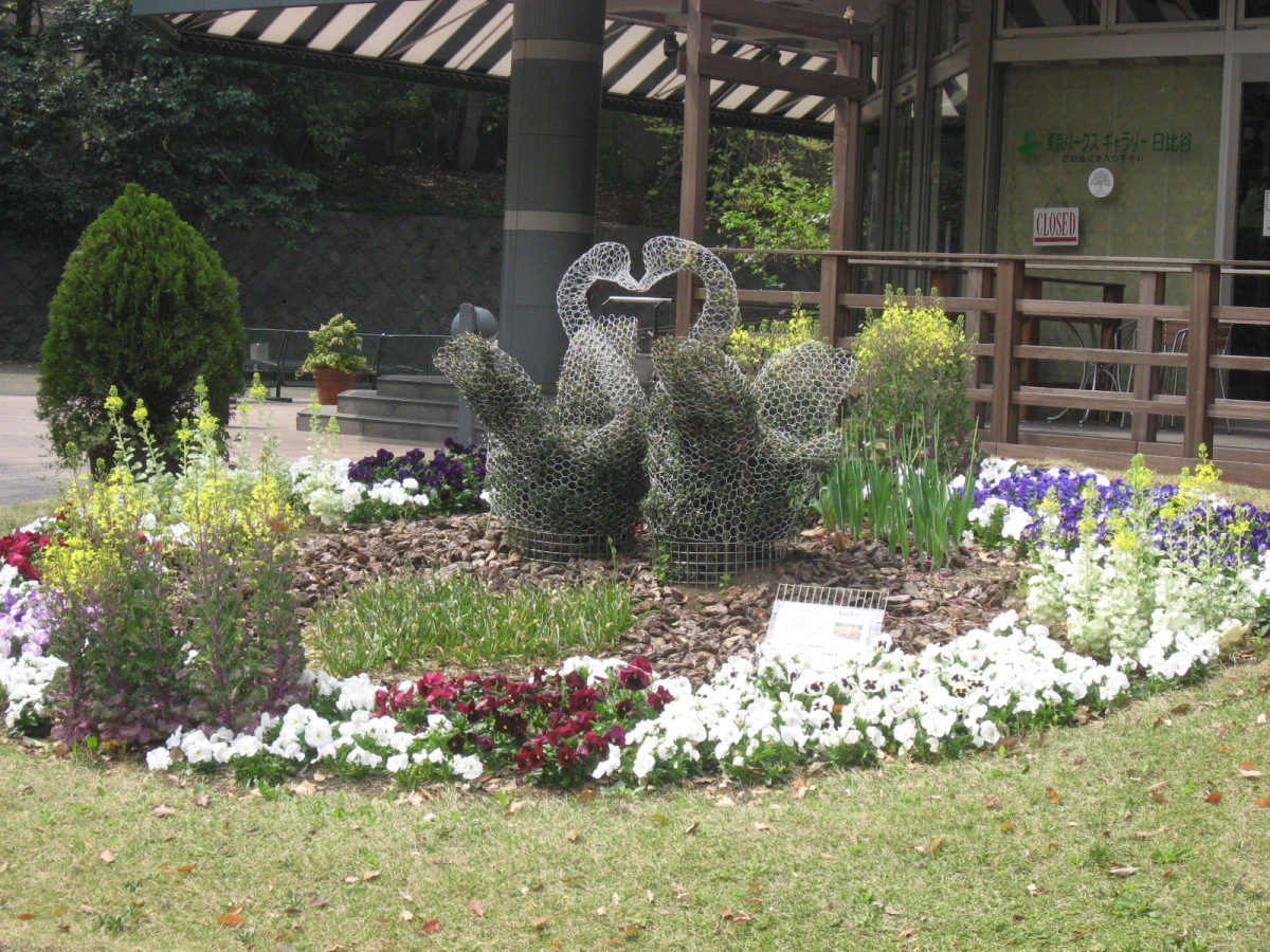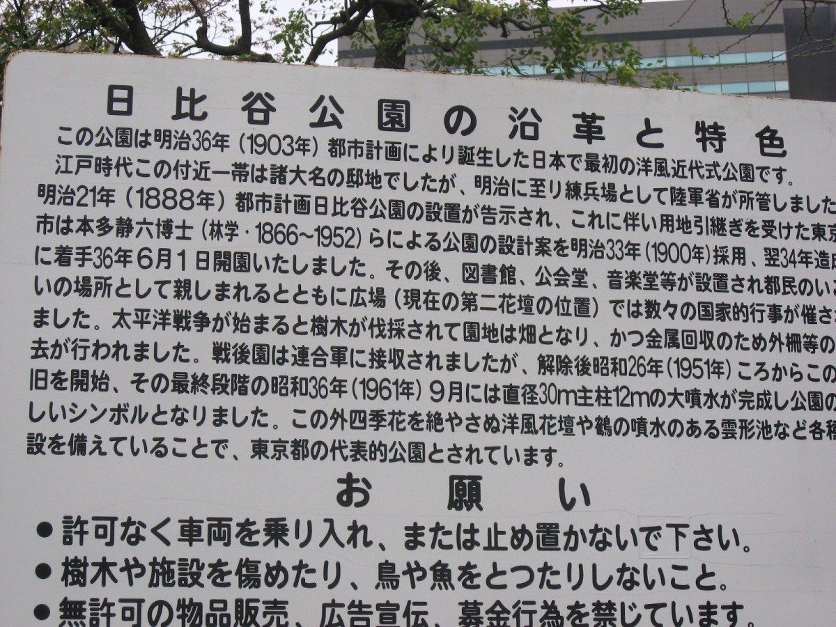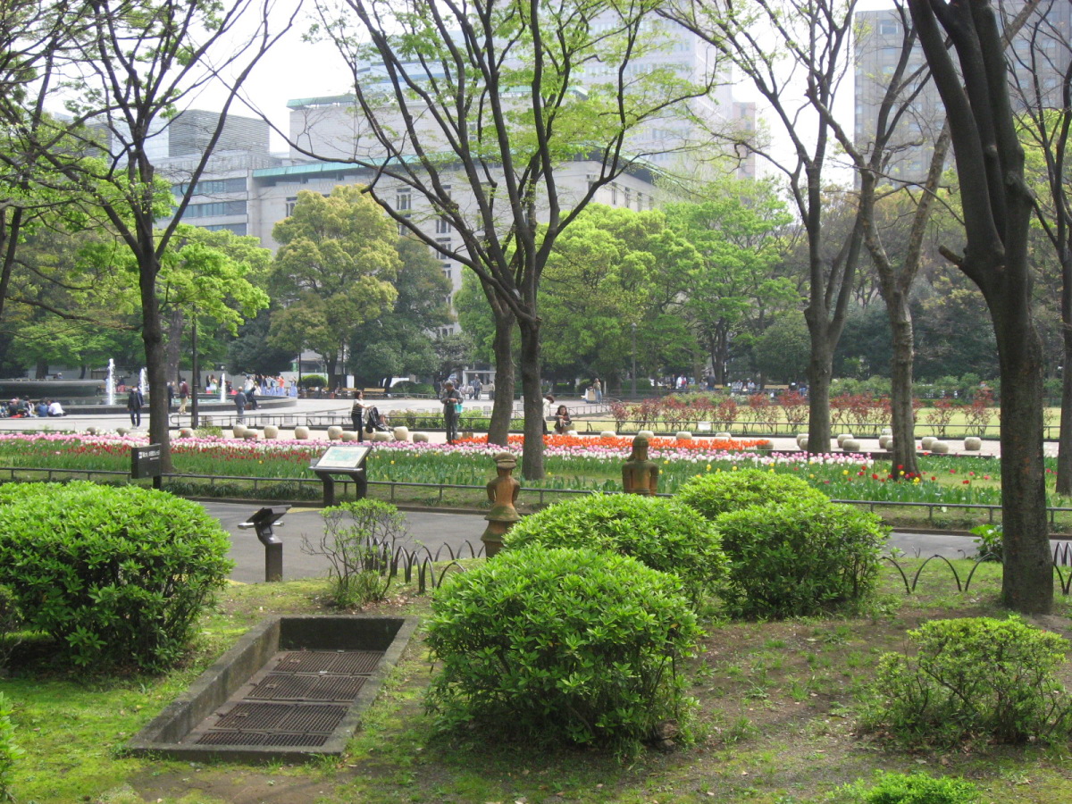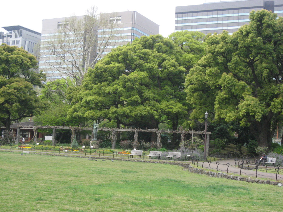 | 2009.4.12. 日比谷公園です・・。 廻った巡に紹介しましょう! 東京フォーラム方向から来ましたので,有楽門から入りました。 春爛漫で花盛り・・・です。 まずは,こちらはお堀の名残で日本庭園がありますよね・・。 で,桜田門の方へ,まずは,向かいました。 公園事務所跡は・・結構式の予約が入っていたようです。 レストランとかもあります。 この頃は,まだ,曇空でした・・・。 テニスコートの横は菜の花でいっぱいです。 北・東側は・・自由の鐘があって・・・桜は・・葉桜になってきていましたが・・。 でも,しだれ桜は・・しっかり満開です。 花を愛でましょう! 小高い丘が設えてあります。 自由の鐘です。 少しアスレチックなどがあって・・・健康広場って名前になっている辺りです。 八重桜が・・・。 ソメイヨシノ??? 葉桜になってきた桜もたくさん・・・・。 草地広場は・・・子供たちの遊具もたくさんです・・。 菜の花で一杯ってのも,いいですね・・。里山に居るみたい! そして,背の高い木々も・・・たくさんです。 いろんな様子を見せてくれるのは,すてきですし・・・こういう面でも東京は良いですよね・・ 第一花壇のフィールドに入りました。花々がきれいに丹精込めて,整備されていますね・・。 花壇の裏手には・・・こんなのも・・「ローマの牝狼」!! 鳩たちも・・・緑が,芝生が・・好きかしら? チューリップが・・・でも,第二花壇にはもっと一杯だったけれど・・・。 ところどころで・・桜もあって・・・。 第二花壇の方には,噴水が勢いよく光にはじけていました・・・少し日が差してきた・・。 小音楽堂では・・今日は,何かのイベント? アマチュアさん?? リハーサルをしていました。ロックな感じだったのですが,この女性たち・・・のハワイアンミュージックも・・・リハーサルを後でしていました。 第二花壇ではTULIPが・・もう満載!!!!!! 子どもたちとか,とにかく沢山の人が来ていました。春の休日・・少しだけ,曇りがちでも・・・ 子どもたちは,何かイベントっぽかったですね,チューターさんがいて,何か活動って感じでした。 それから・・・西幸門の方へ回っていきました。 こちらにもカモメの広場と郷土の森・・各県から寄贈された木々があります。 うちの大学の「ふるさとの森」は,各県の県木ですが・・・ちょっと,違う種類みたいですが・・。 たまたま見つけた宮崎と,僕の郷里の京都府と,そして,岡山県は,あかまつ です。 ちなみに岡山県は,県木は「あかまつ」,県花は「もも」,鳥は「きじ」ですね・・桃太郎?? 霞門から(霞が関の方ですね)・・・再度入場・・・ こちらには,鶴の噴水と日本的な庭園・・池が設えてあります。 沢山,景色を切り取りました。 これは・・・花蘇芳--ハナズオウですね・・。 こんなのもあったりします・・・from 京都 池には,鯉も一杯ですが・・・これは?? 少し大き過ぎない? 藤棚は・・もう少し後でしょうね・・素敵なのは・・。 ビルの真ん中に・・でも,広い公園ですし,木々も豊かです。 こういうのが,うらやましいですよね・・結構,東京は,木々を愛でることが可能ですしね・・・。 ぐるりと回って・・再び,第二花壇の方へ向かいますが・・。 「ハナミズキ」も・・・一青窈さんの歌でもヒットしました。 再び・・・TULIP・・これは,大塚愛さんの歌??? はにわ・・・は,宮崎より・・とのことです。 大銀杏です・・・首カケイチョウだそうです。 で,松本楼っていうあレストランでも結婚式が・・・。 東京都は銀杏だそうです。 第一花壇に入るところを,今度は,日比谷門の方へ・・そして,心宇池の日本庭園っていうか・・そこです。 いろんな興味深いものが並んでいます。 さっきの鶴の噴水の池とも,少し雰囲気が違います・・京風?と江戸風??? 池をぐるりと・・・南側は石垣になっていて,少し上りますよね・・。 ちょっと隠れたところに・・こんな像も・・ この日本式の景色は,それでも,心が和みます・・和ませる春の日差しにも恵まれて・・・。