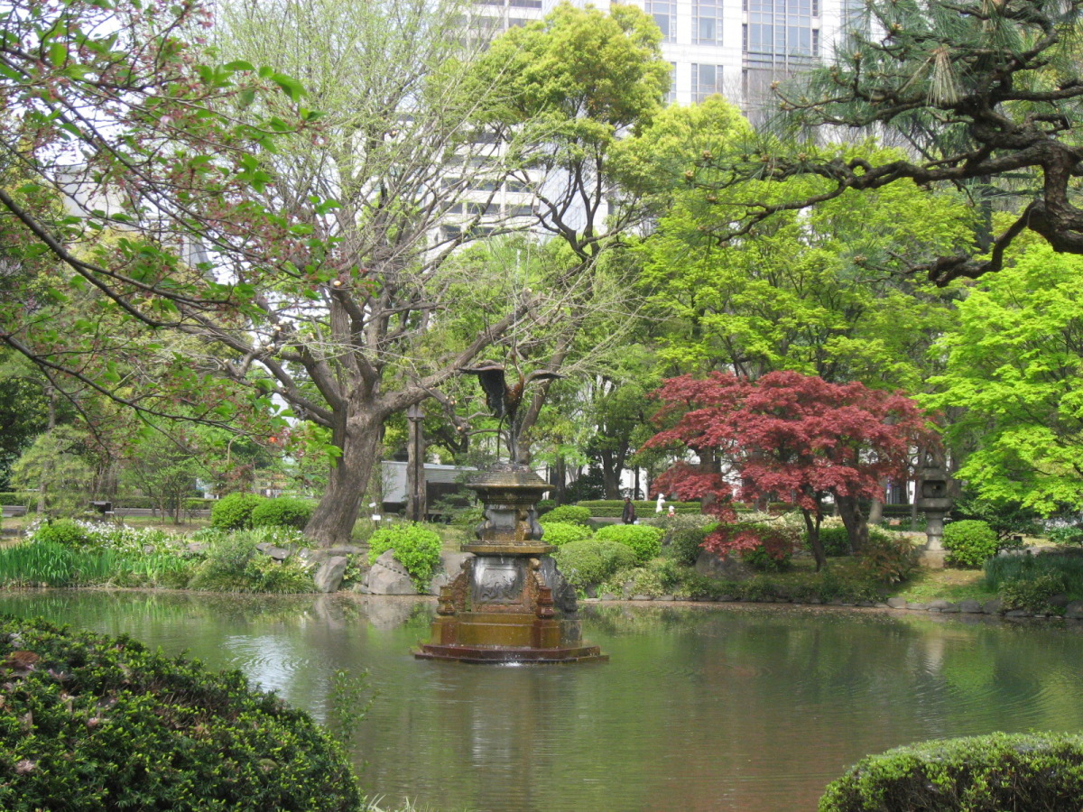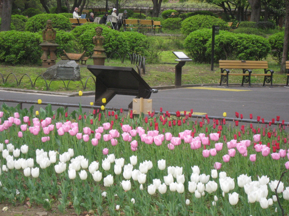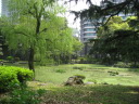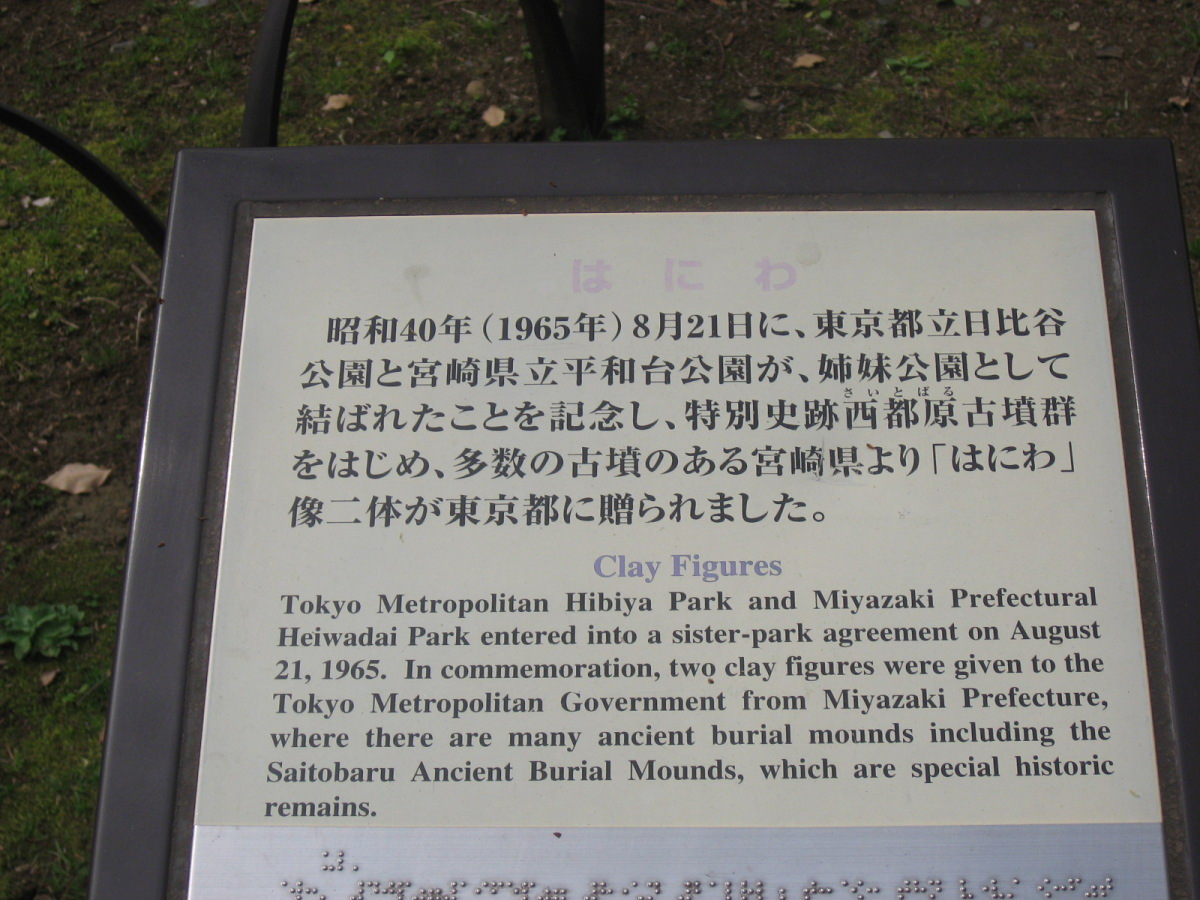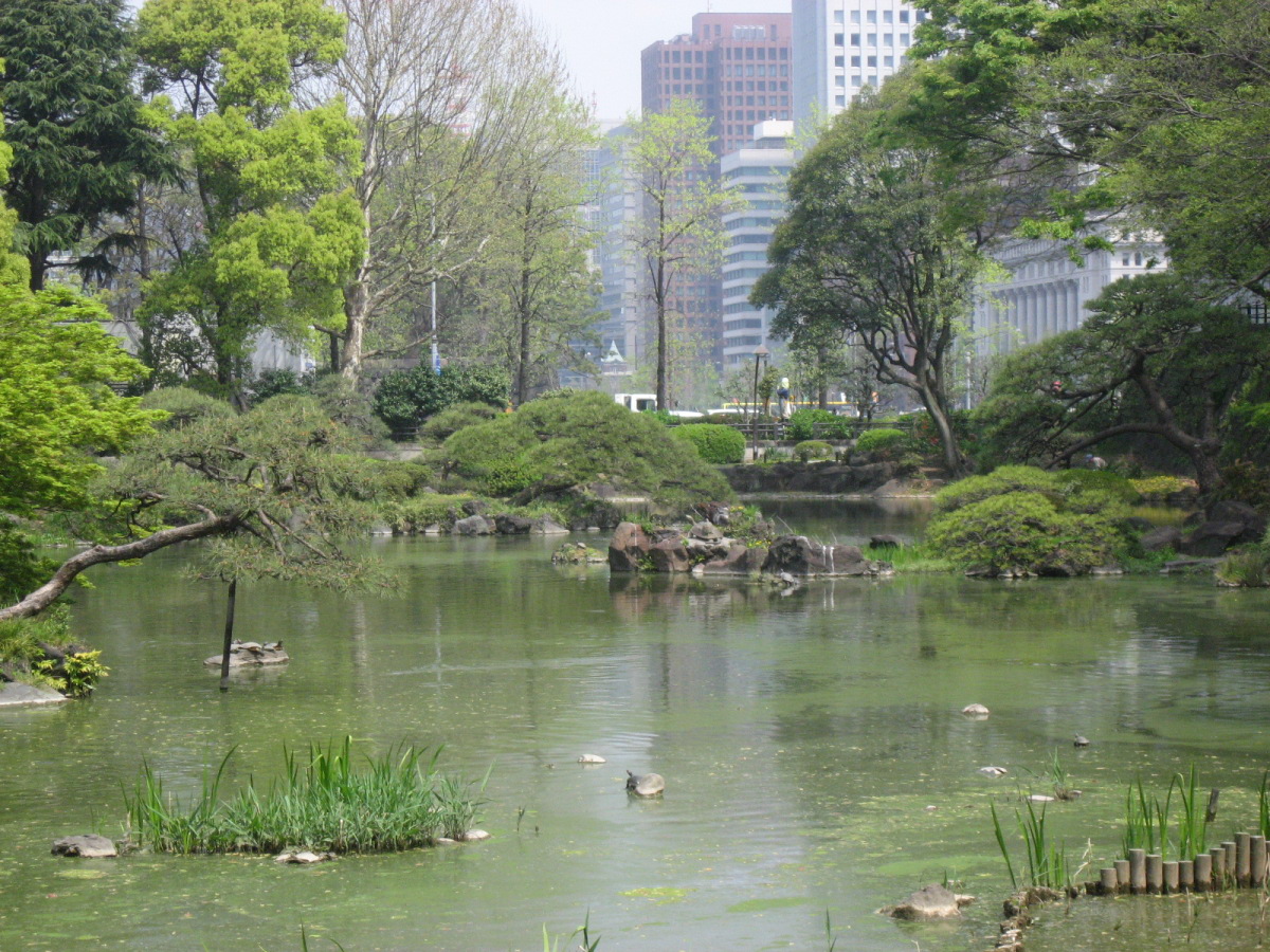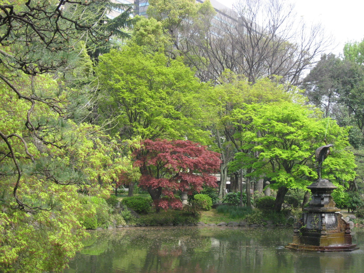 | 2009.4.12. 日比谷公園です・・。 廻った巡に紹介しましょう! 東京フォーラム方向から来ましたので,有楽門から入りました。 春爛漫で花盛り・・・です。 まずは,こちらはお堀の名残で日本庭園がありますよね・・。 で,桜田門の方へ,まずは,向かいました。 公園事務所跡は・・結構式の予約が入っていたようです。 レストランとかもあります。 この頃は,まだ,曇空でした・・・。 テニスコートの横は菜の花でいっぱいです。 北・東側は・・自由の鐘があって・・・桜は・・葉桜になってきていましたが・・。 でも,しだれ桜は・・しっかり満開です。 花を愛でましょう! 小高い丘が設えてあります。 自由の鐘です。 少しアスレチックなどがあって・・・健康広場って名前になっている辺りです。 八重桜が・・・。 ソメイヨシノ??? 葉桜になってきた桜もたくさん・・・・。 草地広場は・・・子供たちの遊具もたくさんです・・。 菜の花で一杯ってのも,いいですね・・。里山に居るみたい! そして,背の高い木々も・・・たくさんです。 いろんな様子を見せてくれるのは,すてきですし・・・こういう面でも東京は良いですよね・・ 第一花壇のフィールドに入りました。花々がきれいに丹精込めて,整備されていますね・・。 花壇の裏手には・・・こんなのも・・「ローマの牝狼」!! 鳩たちも・・・緑が,芝生が・・好きかしら? チューリップが・・・でも,第二花壇にはもっと一杯だったけれど・・・。 ところどころで・・桜もあって・・・。 第二花壇の方には,噴水が勢いよく光にはじけていました・・・少し日が差してきた・・。 小音楽堂では・・今日は,何かのイベント? アマチュアさん?? リハーサルをしていました。ロックな感じだったのですが,この女性たち・・・のハワイアンミュージックも・・・リハーサルを後でしていました。 第二花壇ではTULIPが・・もう満載!!!!!! 子どもたちとか,とにかく沢山の人が来ていました。春の休日・・少しだけ,曇りがちでも・・・ 子どもたちは,何かイベントっぽかったですね,チューターさんがいて,何か活動って感じでした。 それから・・・西幸門の方へ回っていきました。 こちらにもカモメの広場と郷土の森・・各県から寄贈された木々があります。 うちの大学の「ふるさとの森」は,各県の県木ですが・・・ちょっと,違う種類みたいですが・・。 たまたま見つけた宮崎と,僕の郷里の京都府と,そして,岡山県は,あかまつ です。 ちなみに岡山県は,県木は「あかまつ」,県花は「もも」,鳥は「きじ」ですね・・桃太郎?? 霞門から(霞が関の方ですね)・・・再度入場・・・ こちらには,鶴の噴水と日本的な庭園・・池が設えてあります。 沢山,景色を切り取りました。 これは・・・花蘇芳--ハナズオウですね・・。 こんなのもあったりします・・・from 京都 池には,鯉も一杯ですが・・・これは?? 少し大き過ぎない? 藤棚は・・もう少し後でしょうね・・素敵なのは・・。 ビルの真ん中に・・でも,広い公園ですし,木々も豊かです。 こういうのが,うらやましいですよね・・結構,東京は,木々を愛でることが可能ですしね・・・。 ぐるりと回って・・再び,第二花壇の方へ向かいますが・・。 「ハナミズキ」も・・・一青窈さんの歌でもヒットしました。 再び・・・TULIP・・これは,大塚愛さんの歌??? はにわ・・・は,宮崎より・・とのことです。 大銀杏です・・・首カケイチョウだそうです。 で,松本楼っていうあレストランでも結婚式が・・・。 東京都は銀杏だそうです。 第一花壇に入るところを,今度は,日比谷門の方へ・・そして,心宇池の日本庭園っていうか・・そこです。 いろんな興味深いものが並んでいます。 さっきの鶴の噴水の池とも,少し雰囲気が違います・・京風?と江戸風??? 池をぐるりと・・・南側は石垣になっていて,少し上りますよね・・。 ちょっと隠れたところに・・こんな像も・・ この日本式の景色は,それでも,心が和みます・・和ませる春の日差しにも恵まれて・・・。