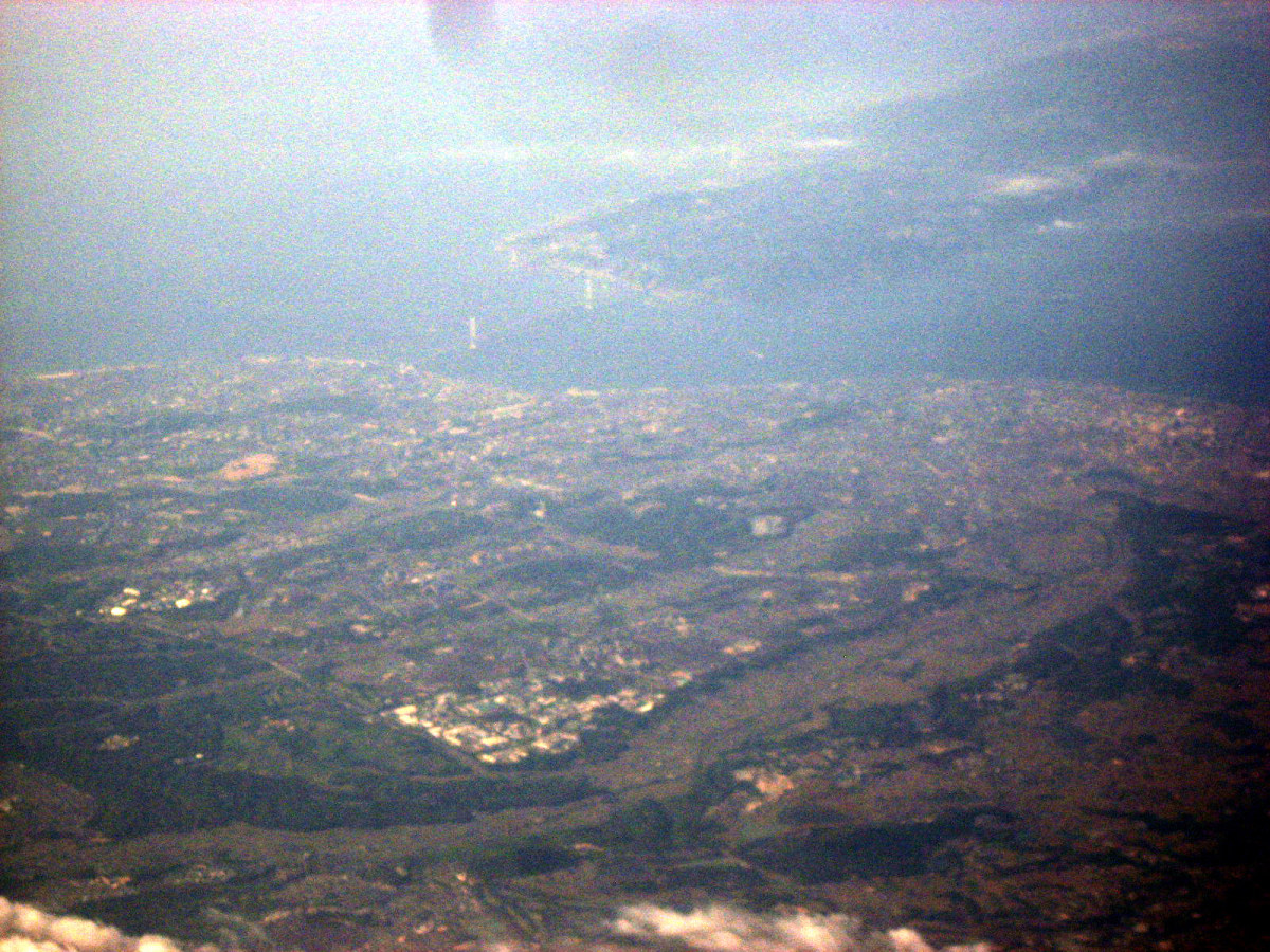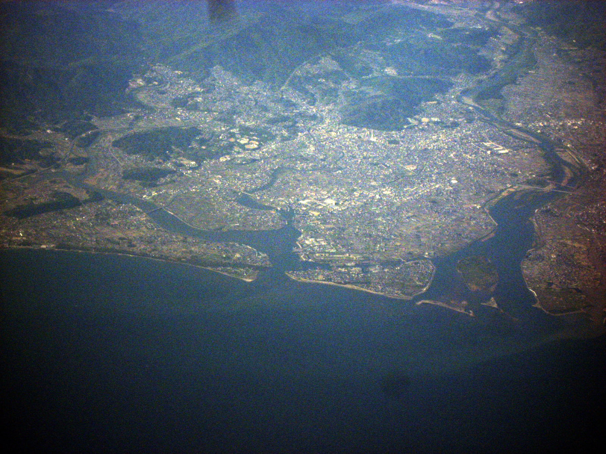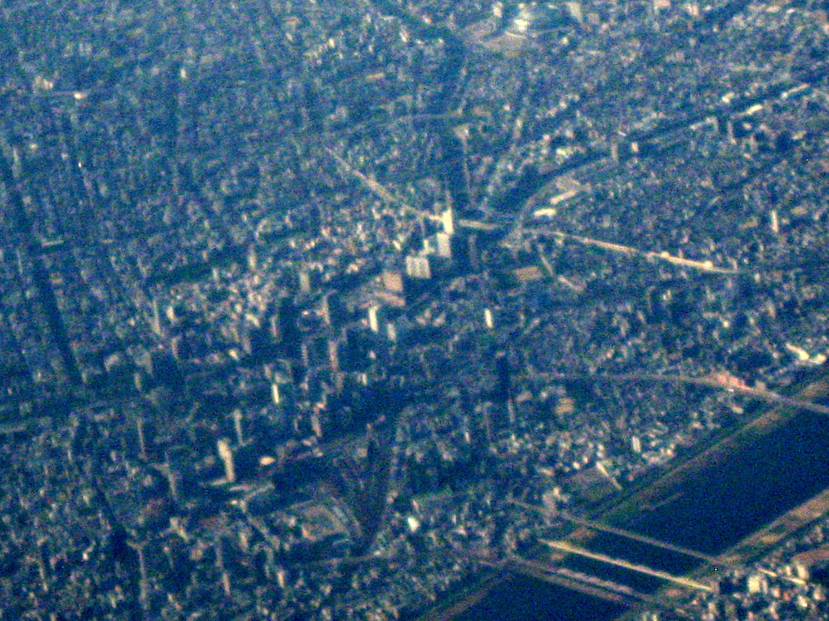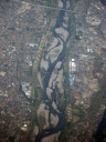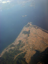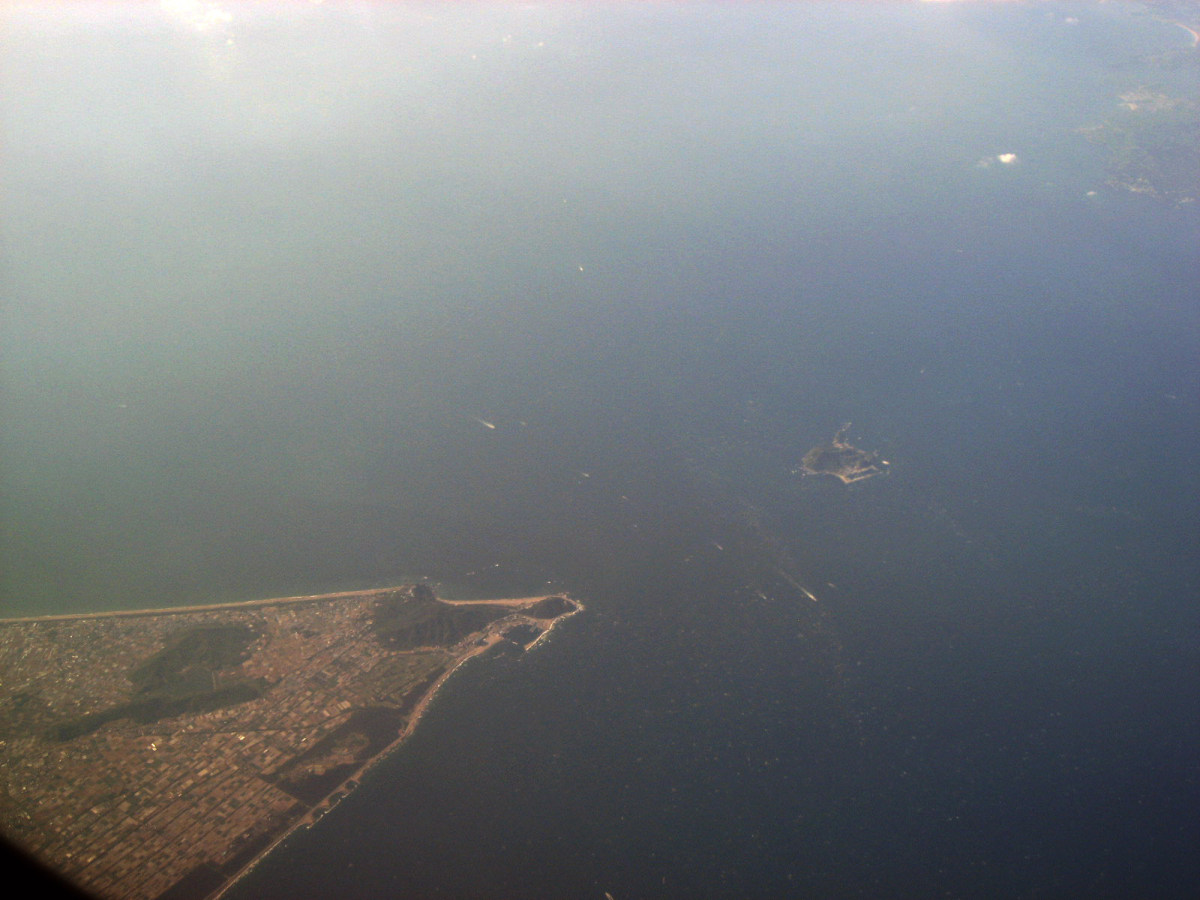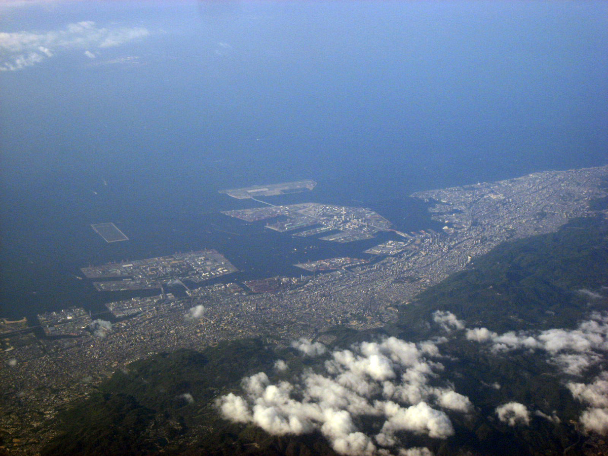 大阪湾に近づいてきました・伊丹空港がよく見えます。淀川が大きく湾に注ぎ込んでいます。
