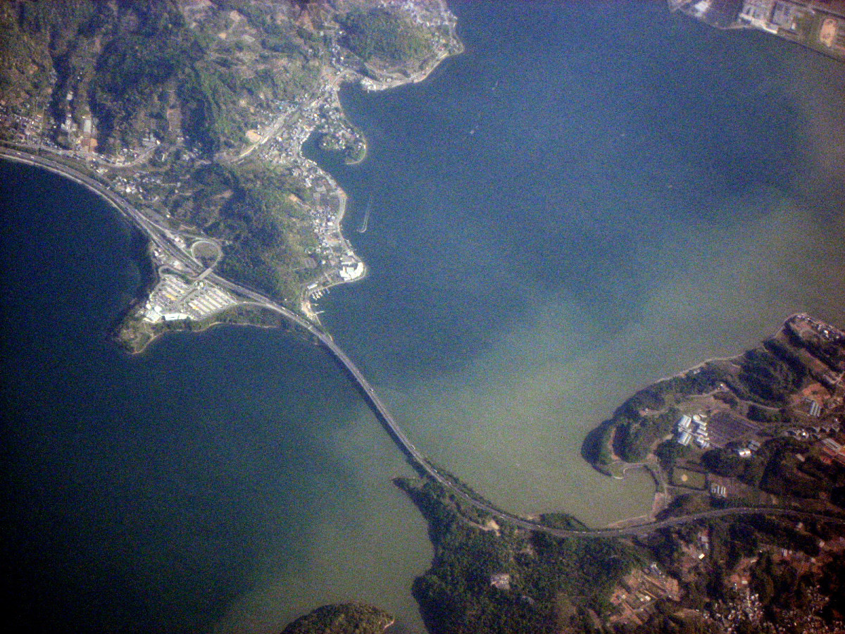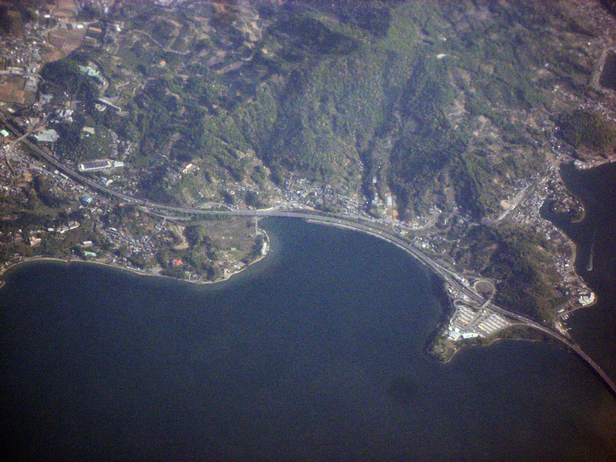 さて,浜名湖! 猪鼻瀬戸,東名高速の浜名湖SAと橋・・もくっきり!