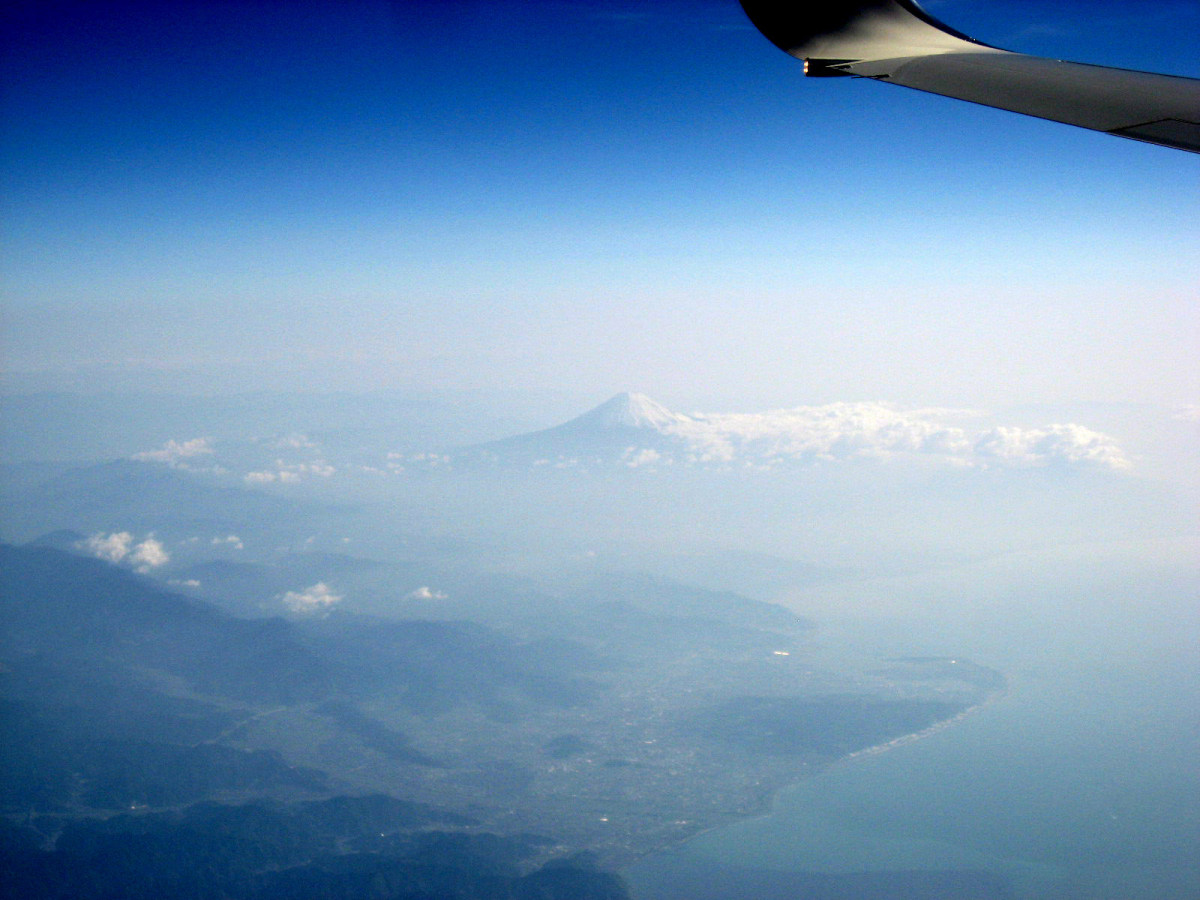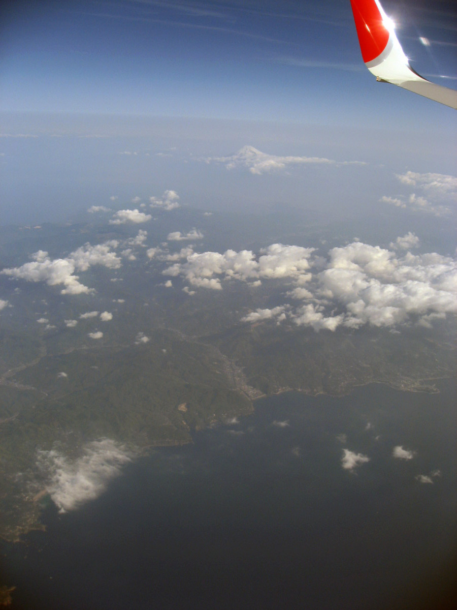 さて,そのあたりから・・・駿河湾と上空に富士です。