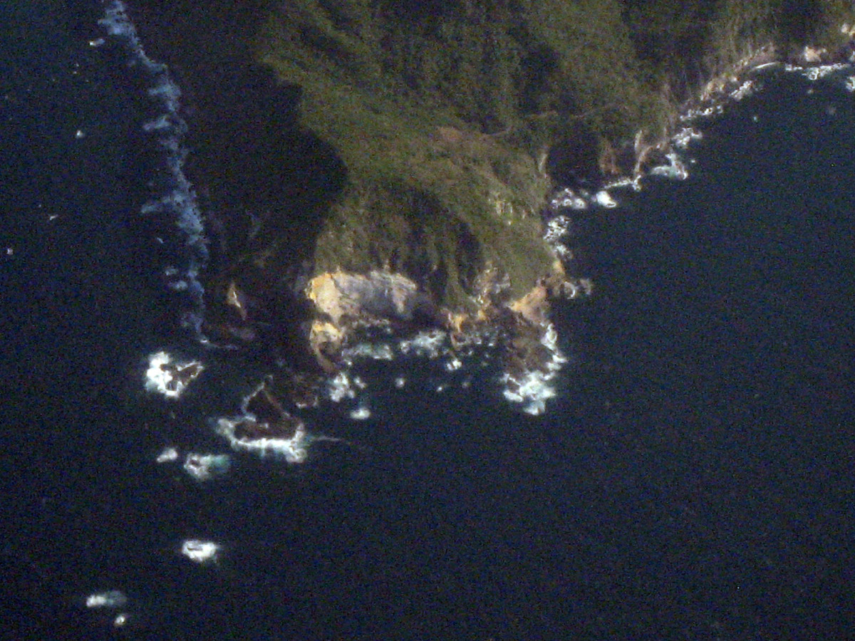 たぶん,松崎町って辺りを眺めやって・・・妻良港をくっきりよ見て・・・三ツ石三崎の突端,石廊埼の西側辺りの白波を見ていきます。