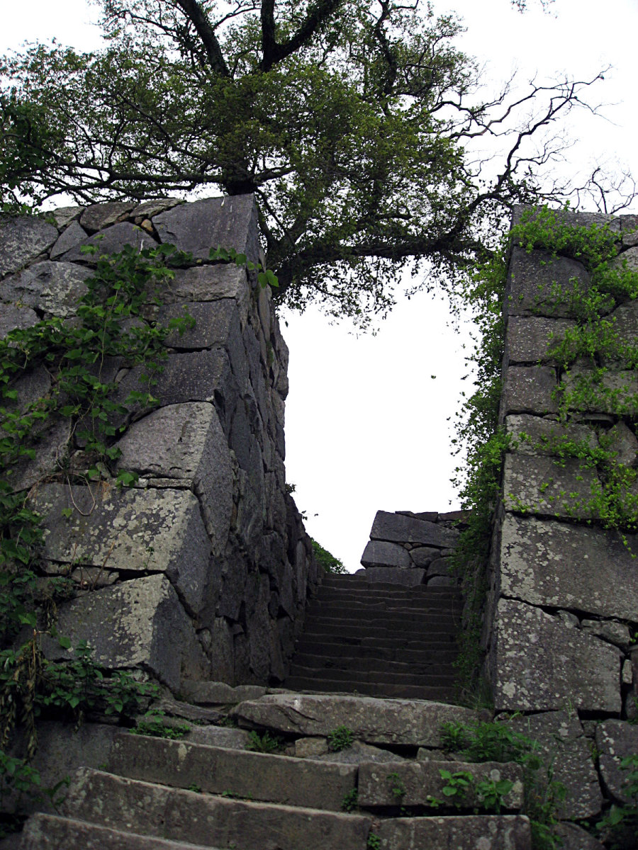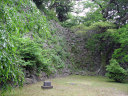 木々の緑が心地よい季節ですが,お城跡は案内の石があって,石垣が残っていて・・・・・・です。