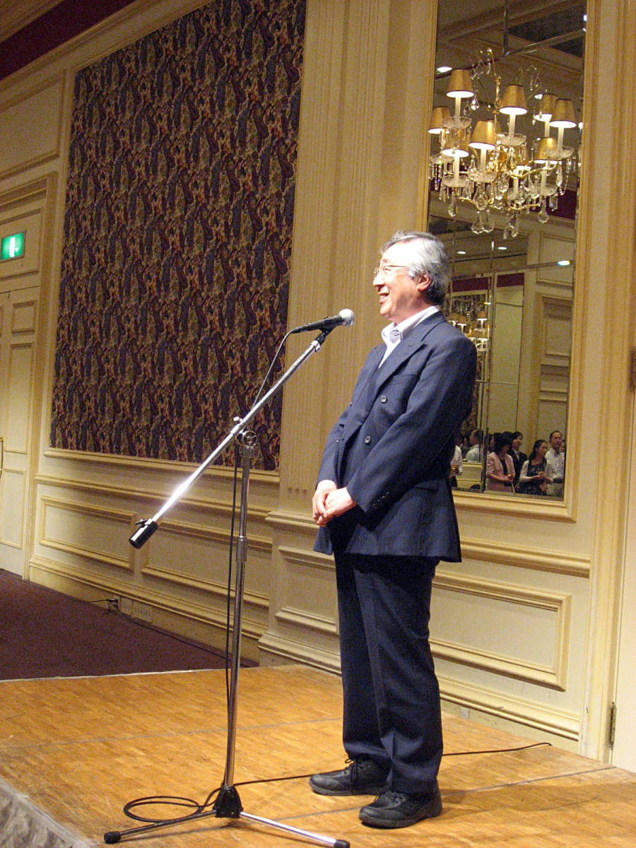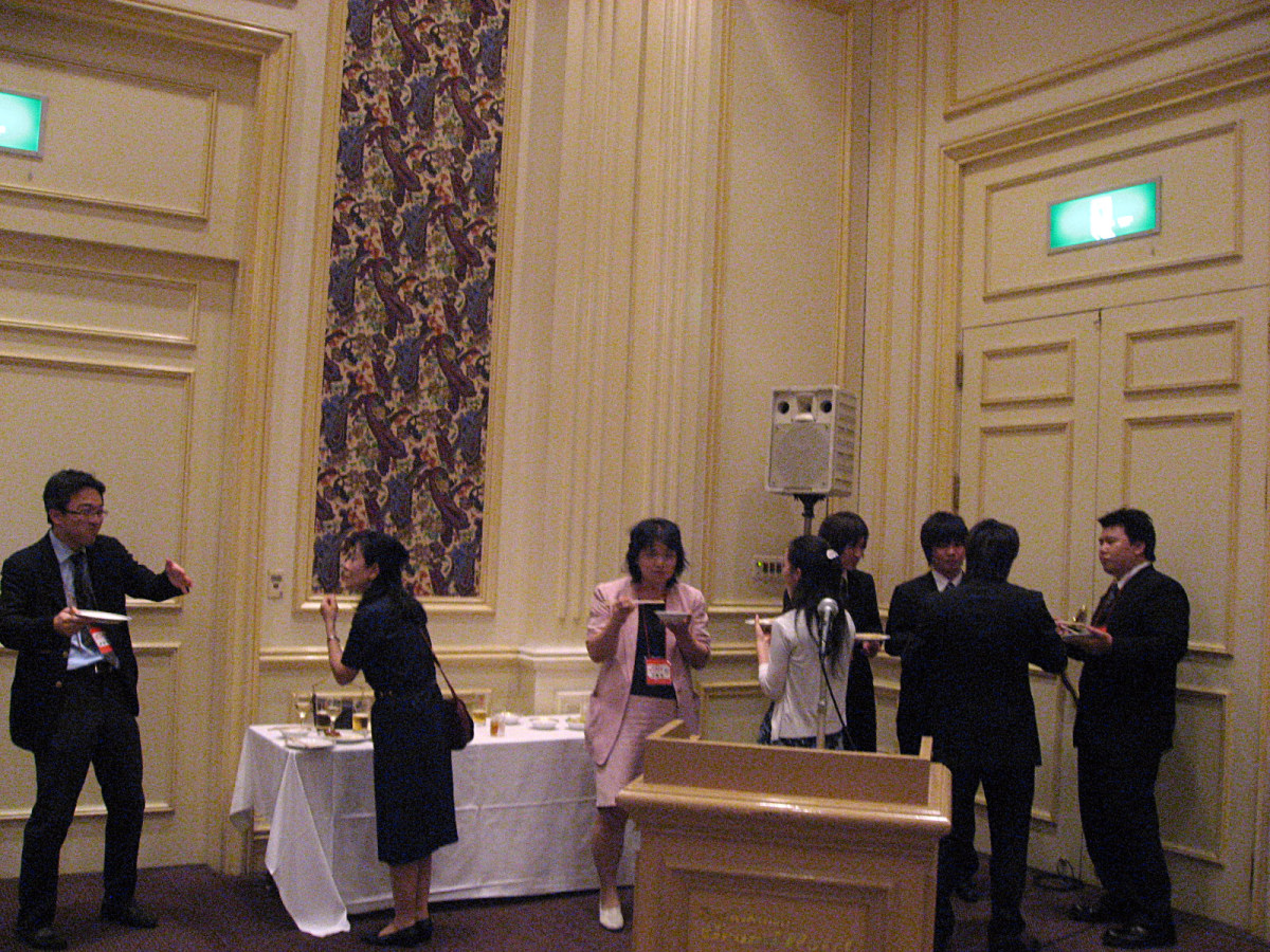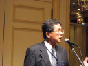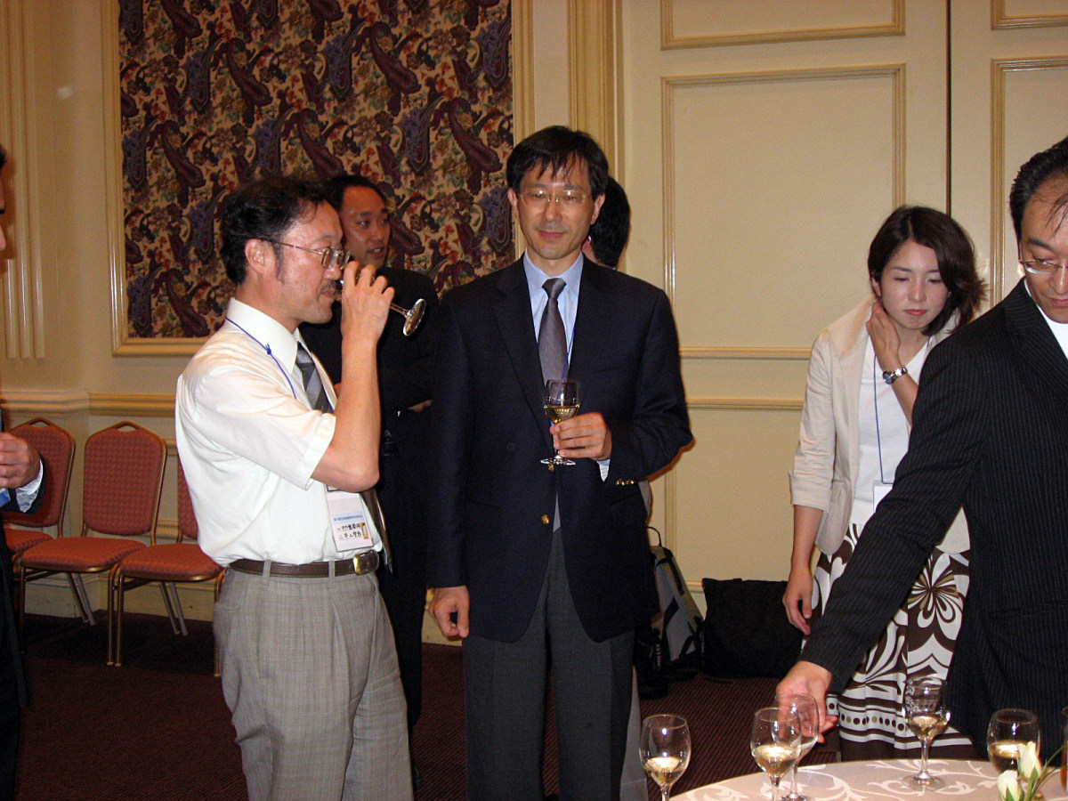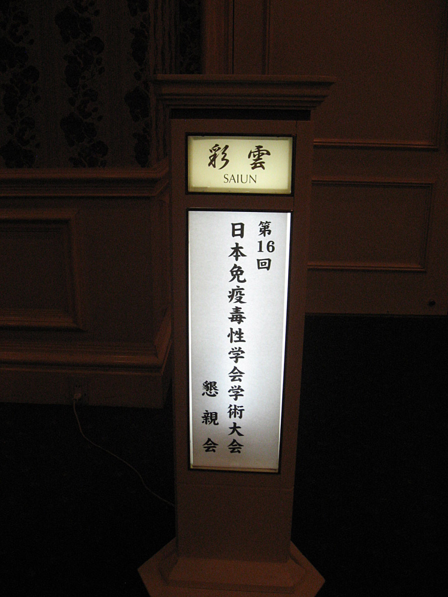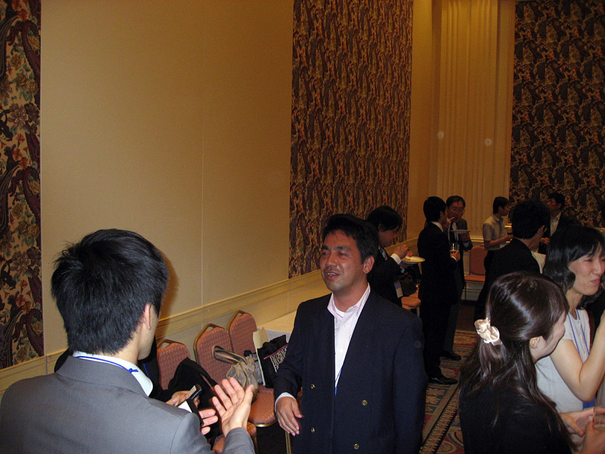 | 2009.8.27. 第16回日本免疫毒性学会学術大会の懇親会( 吉田先生の年会長としてのご挨拶 この衣装はなかなかすごいっすね!!大雪さんろくまつり・・・で,お名前入りの法被です。 で,さんろくは山麓にあらず,3条6丁目で,繁華街の名前だそうですが・・・。 夏祭りの様です。 澤田日本免疫毒性学会理事長 森本日本産業衛生学会・アレルギー免疫毒性研究会代表世話人のご挨拶の後, 大沢前日本免疫毒性学会理事長の乾杯の音頭です。 途中,国際化委員会の委員長の中村先生の紹介で,来賓っていうか,Dr. Germolec,Dr. Zelikoff のスピーチもありました。