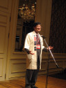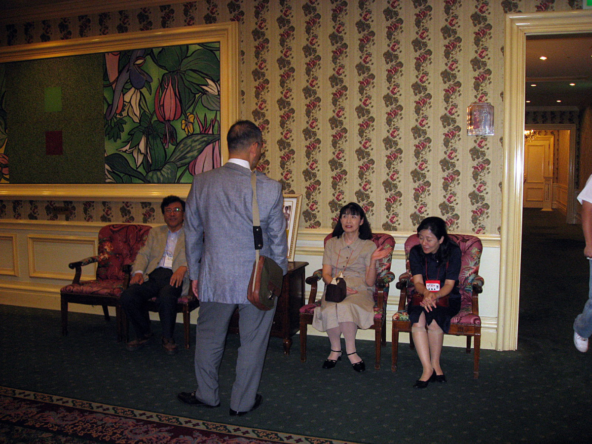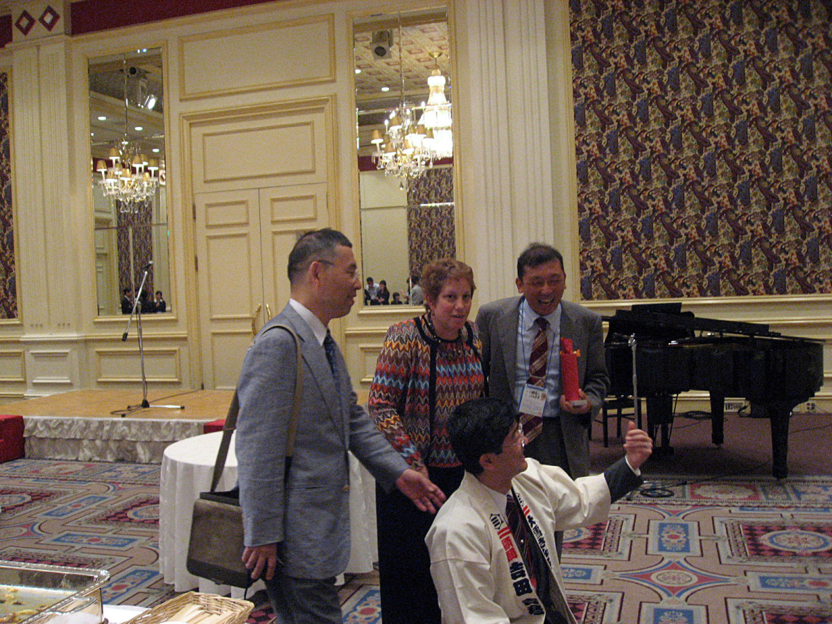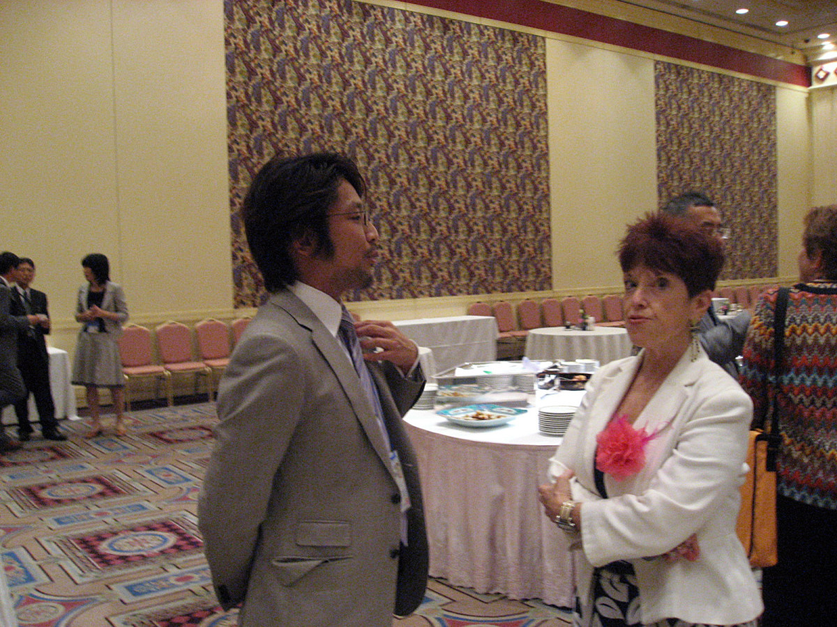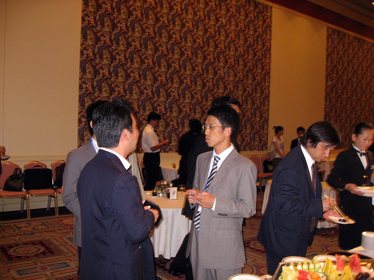 | 2009.8.27. 第16回日本免疫毒性学会学術大会の懇親会( 吉田先生の年会長としてのご挨拶 この衣装はなかなかすごいっすね!!大雪さんろくまつり・・・で,お名前入りの法被です。 で,さんろくは山麓にあらず,3条6丁目で,繁華街の名前だそうですが・・・。 夏祭りの様です。 澤田日本免疫毒性学会理事長 森本日本産業衛生学会・アレルギー免疫毒性研究会代表世話人のご挨拶の後, 大沢前日本免疫毒性学会理事長の乾杯の音頭です。 途中,国際化委員会の委員長の中村先生の紹介で,来賓っていうか,Dr. Germolec,Dr. Zelikoff のスピーチもありました。