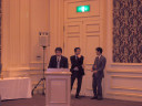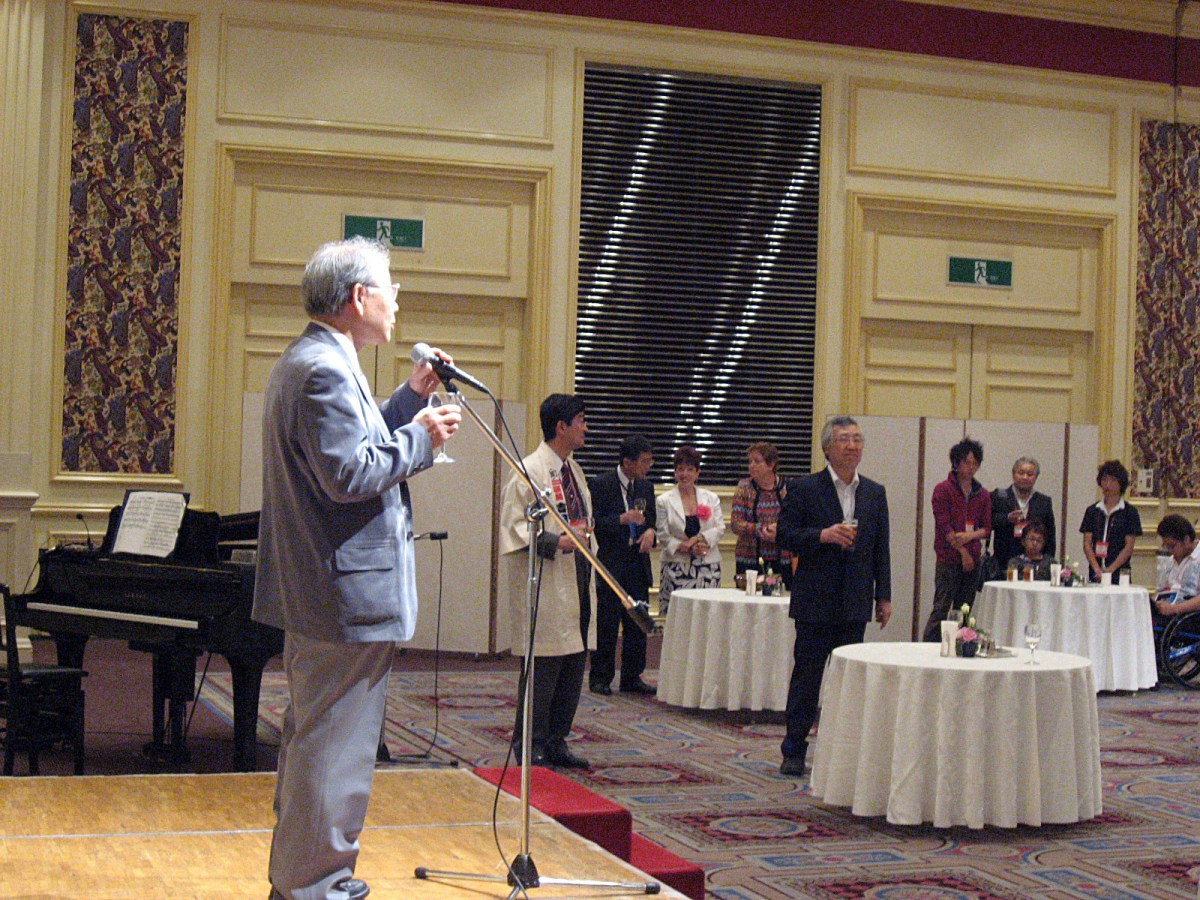 途中の吉田先生のご挨拶と,藤巻次期年会長の中締めです。 後は,みなさんの楽しい様子をご覧ください。 米国のお二人も法被を着せてもらって,満面の笑顔です・・。 結構,みなさん,長くいらっしゃいましたし・・。 談笑が絶えない懇親会でした。 吉田先生のお人柄の出た,そして,スタッフのみなさんの愛情のこもったパーティーでした。 ありがとうございます。