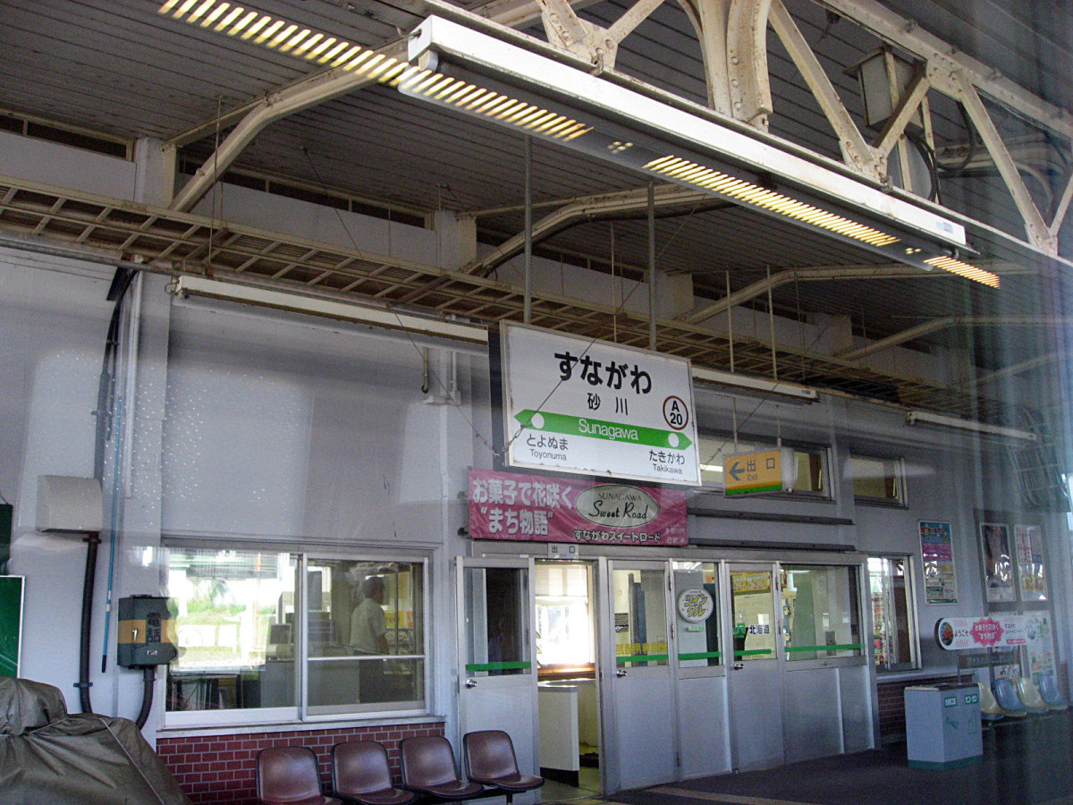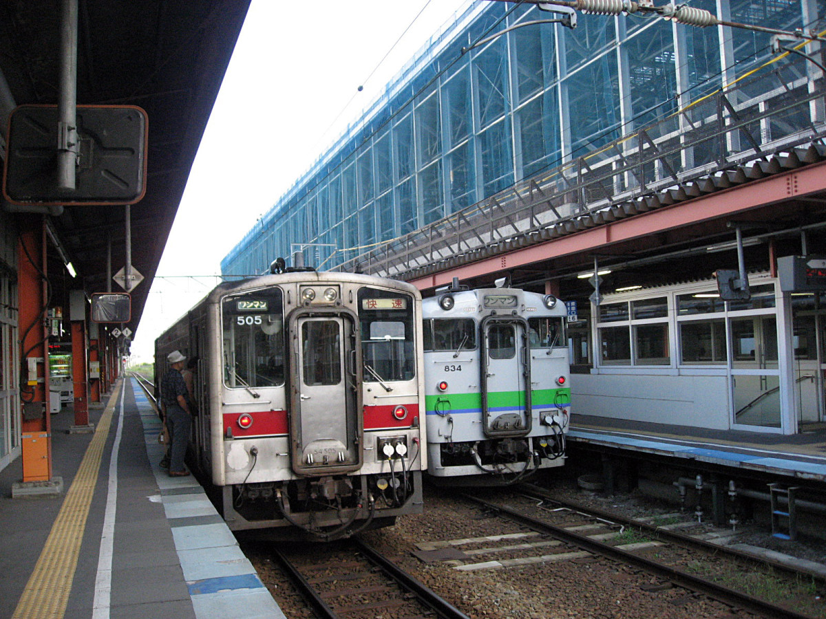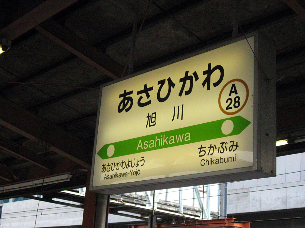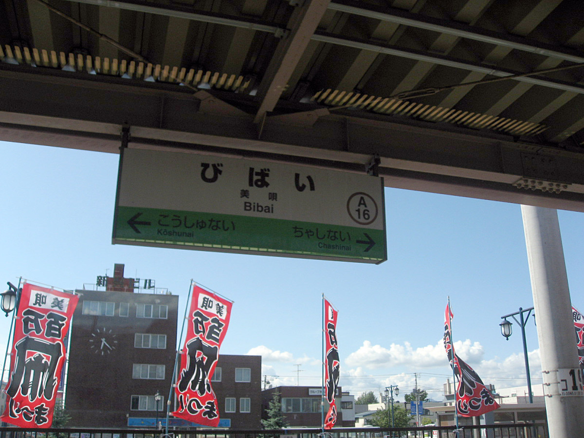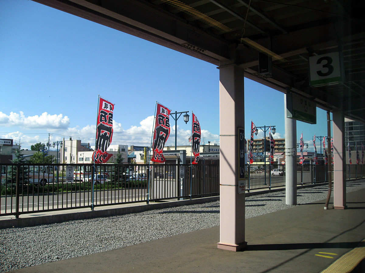さて,妹背牛っていう通過駅で函館本線は東に曲がって,深川駅です・・。