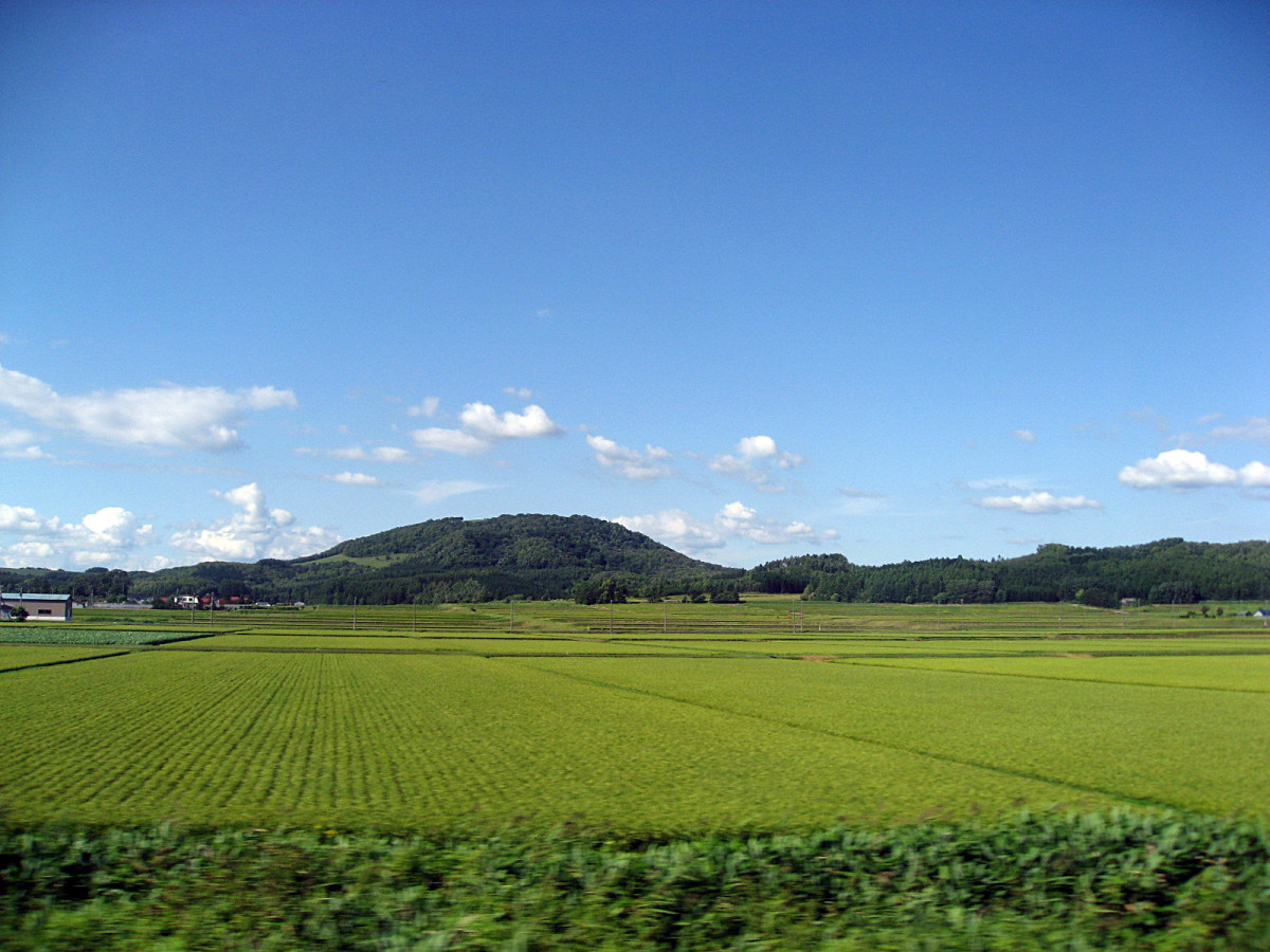 旭川盆地は,北西から天塩山地,北東は北見山地,東は大雪山の石狩山地,そして西南は夕張山地で囲まれていて・・・で,列車は天塩山地と夕張山地がつながっている辺りをトンネルで抜けていきます。
