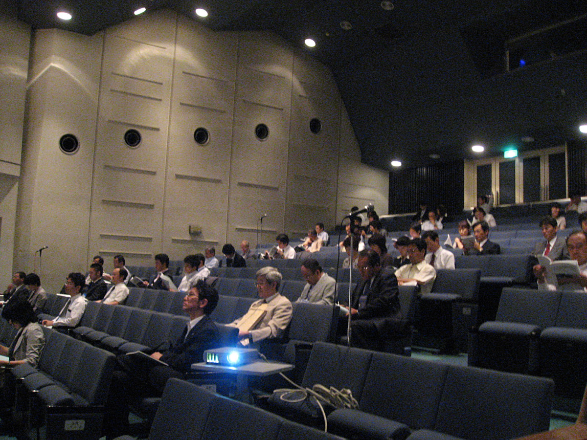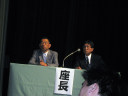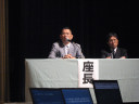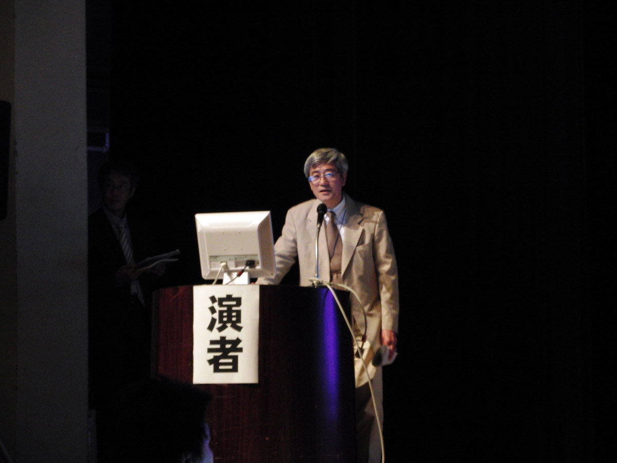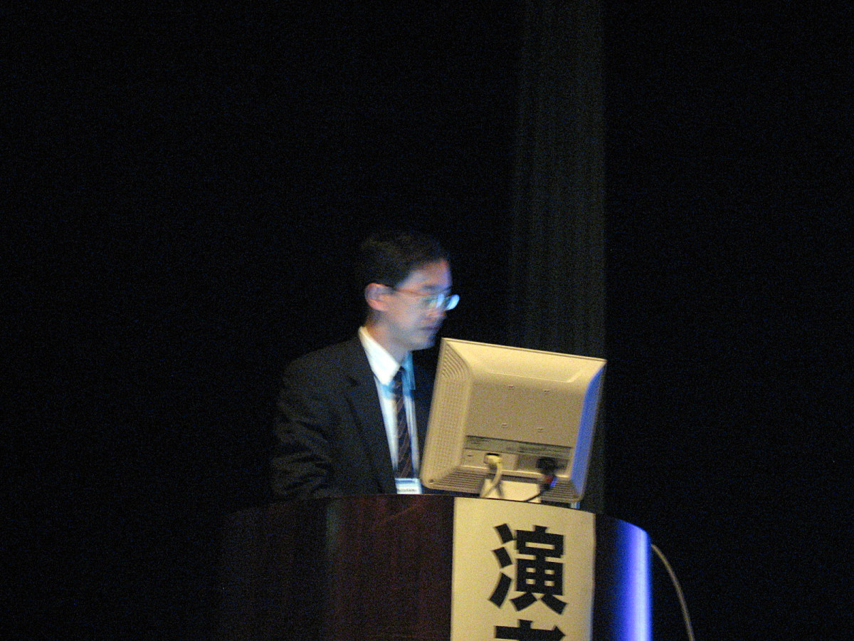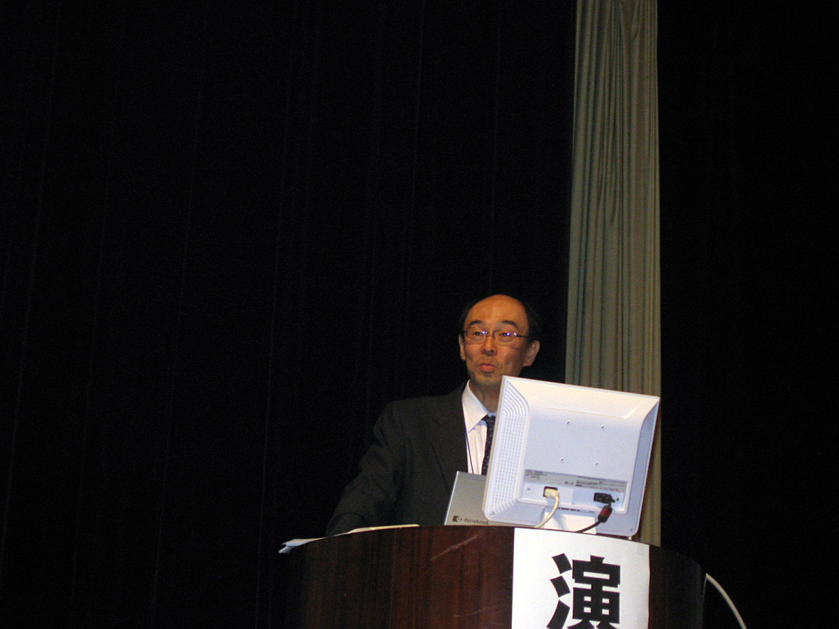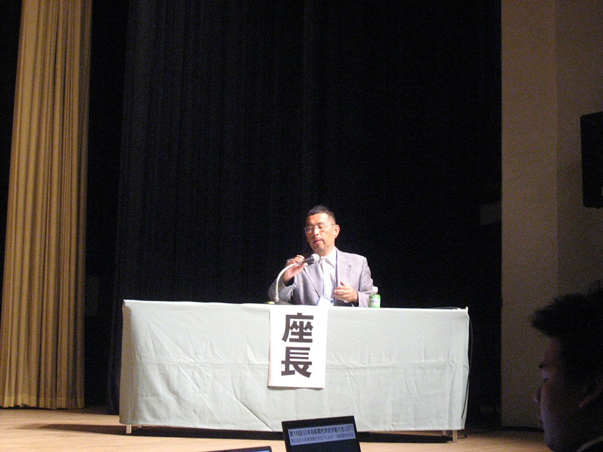 そうそう,1日目には総会が午後一番でありました。 これがまた,事務局としてみれば,滞りなく終了するかどうかってのが,大問題! 時間も限られていますし・・・,大変です。 座長は吉田先生,理事長の澤田先生と大槻は檀上で発言します。 次期会長の藤巻先生が最後を締めて下さいました。 |