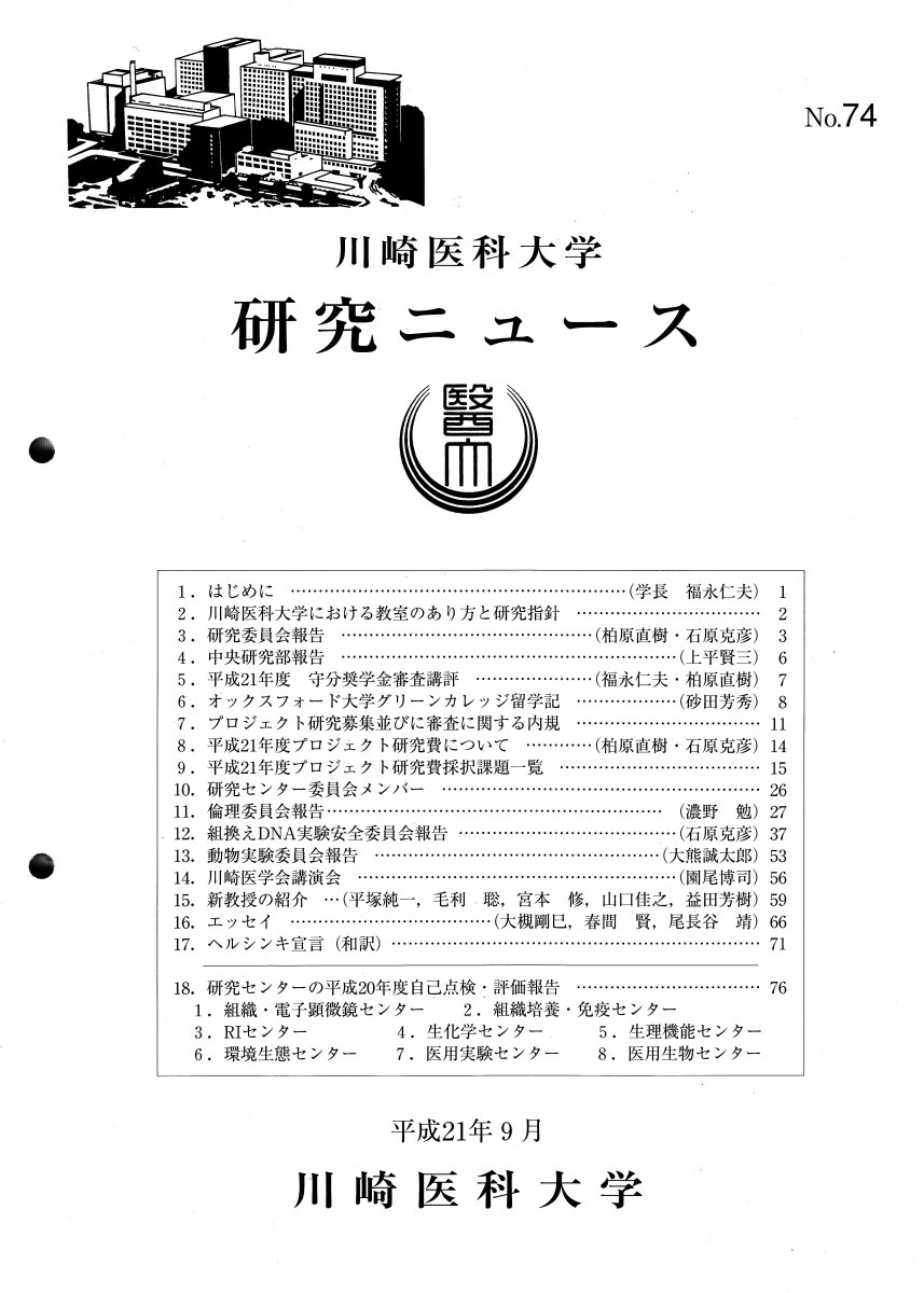 川崎医科大学の研究ニュース No.74.が配布されました。