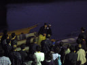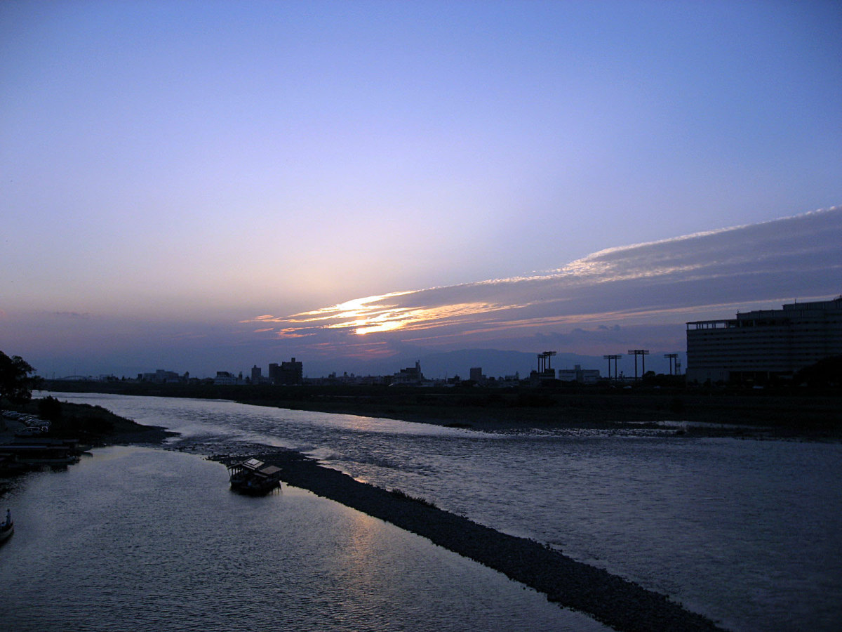夕暮れに浮かび上がる会場と・・・長良川を染めて沈む夕陽です。
