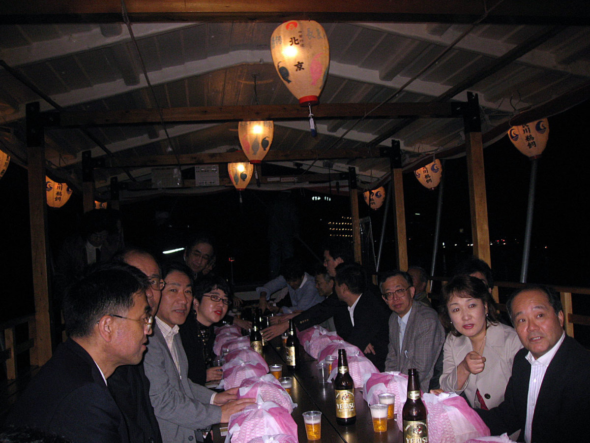 懇親会はなんと鵜飼見学/見物〜屋形船での会食でした。