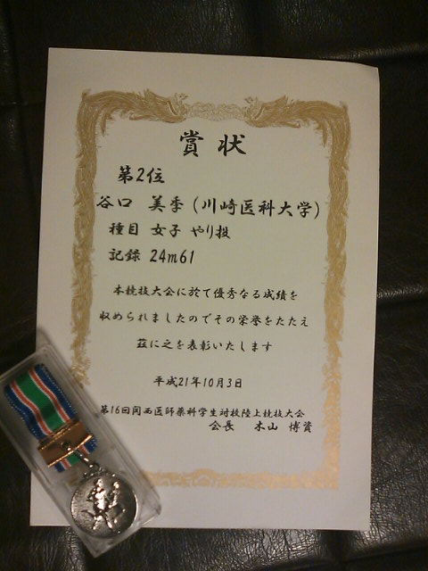 2009.10.04. 顧問をしています陸上部の面々が・・ 第16回関西医歯薬科学対抗陸上競技大会で・・ 結構,自己新とか一杯だして,頑張ってきてくれました。