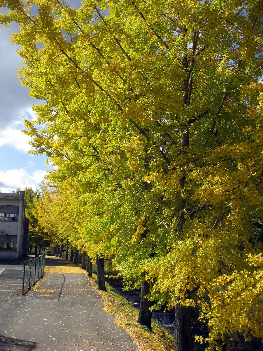 登り口の辺りの,久米南中学校脇の銀杏並木です。