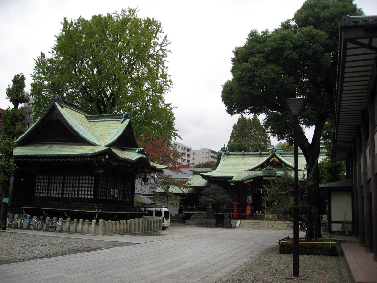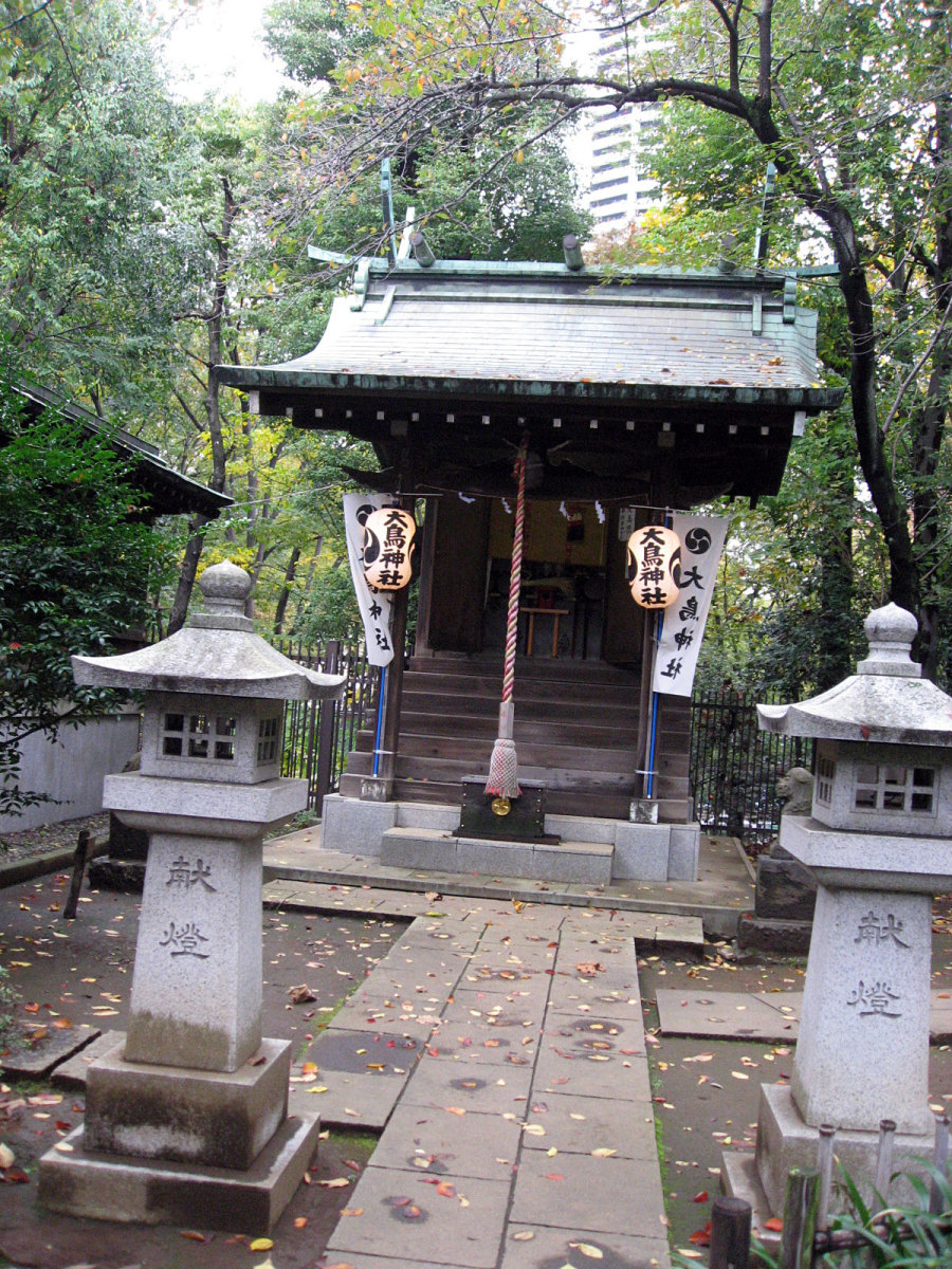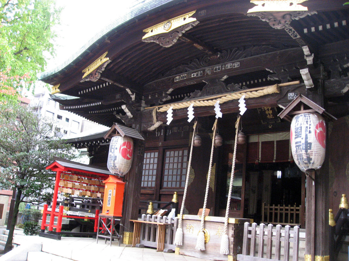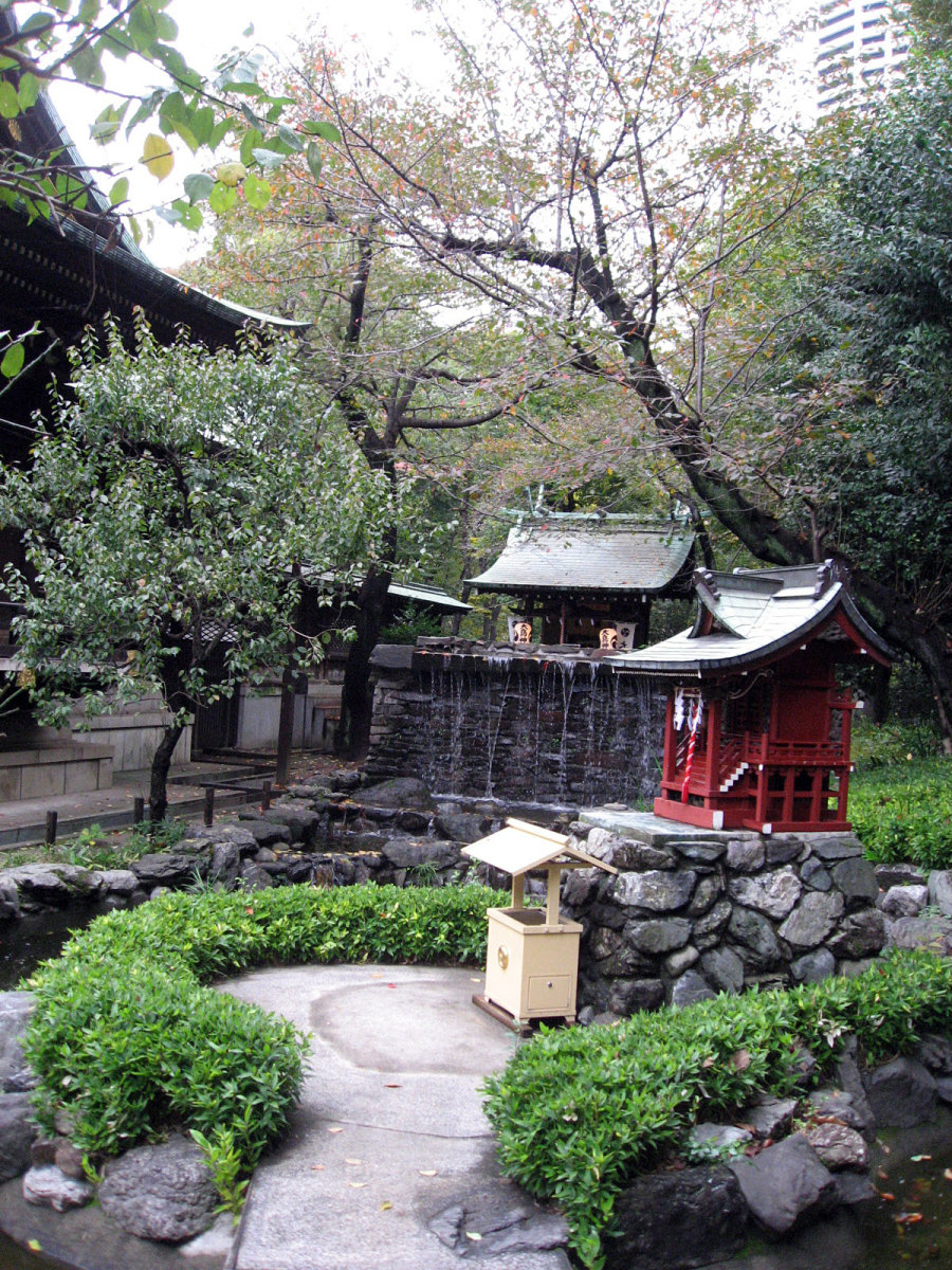【十二社熊野神社は、室町時代の応永年間(1394〜1428)に中野長者と呼ばれた鈴木九郎が、故郷である紀州の熊野三山より十二所権現をうつし祠ったものと伝えられます(一説に、この地域の開拓にあたった渡辺興兵衛が、天文・永禄年間(1532〜69)の熊野の乱に際し、紀州よりこの地に流れ着き、熊野権現を祠ったともいいます)。鈴木家は、紀州藤代で熊野三山の祠官をつとめる家柄でしたが、源義経に従ったため、奥州平泉より東国各地を敗走し、九郎の代に中野(現在の中野坂上から西新宿一帯)に住むようになりました。九郎は、この地域の開拓にあたるとともに、自身の産土神である熊野三山より若一王子宮を祠りました。その後鈴木家は、家運が上昇し、中野長者と呼ばれる資産家になったため、応永10年(1403)熊野三山の十二所権現すべてを祠ったといいます。江戸時代には、熊野十二所権現社と呼ばれ、幕府による社殿の整備や修復も何回か行われました。また、享保年間(1716〜1735)には八代将軍吉宗が鷹狩を機会に参拝するようになり、滝や池を擁した周辺の風致は江戸西郊の景勝地として賑わい、文人墨客も多数訪れました。明治維新後は、現在の櫛御気野大神・伊邪奈美大神を祭神とし、熊野神社と改称し現在にいたっています。氏子町の範囲は、西新宿ならびに新宿駅周辺及び歌舞伎町を含む地域で、新宿の総鎮守となっています。】