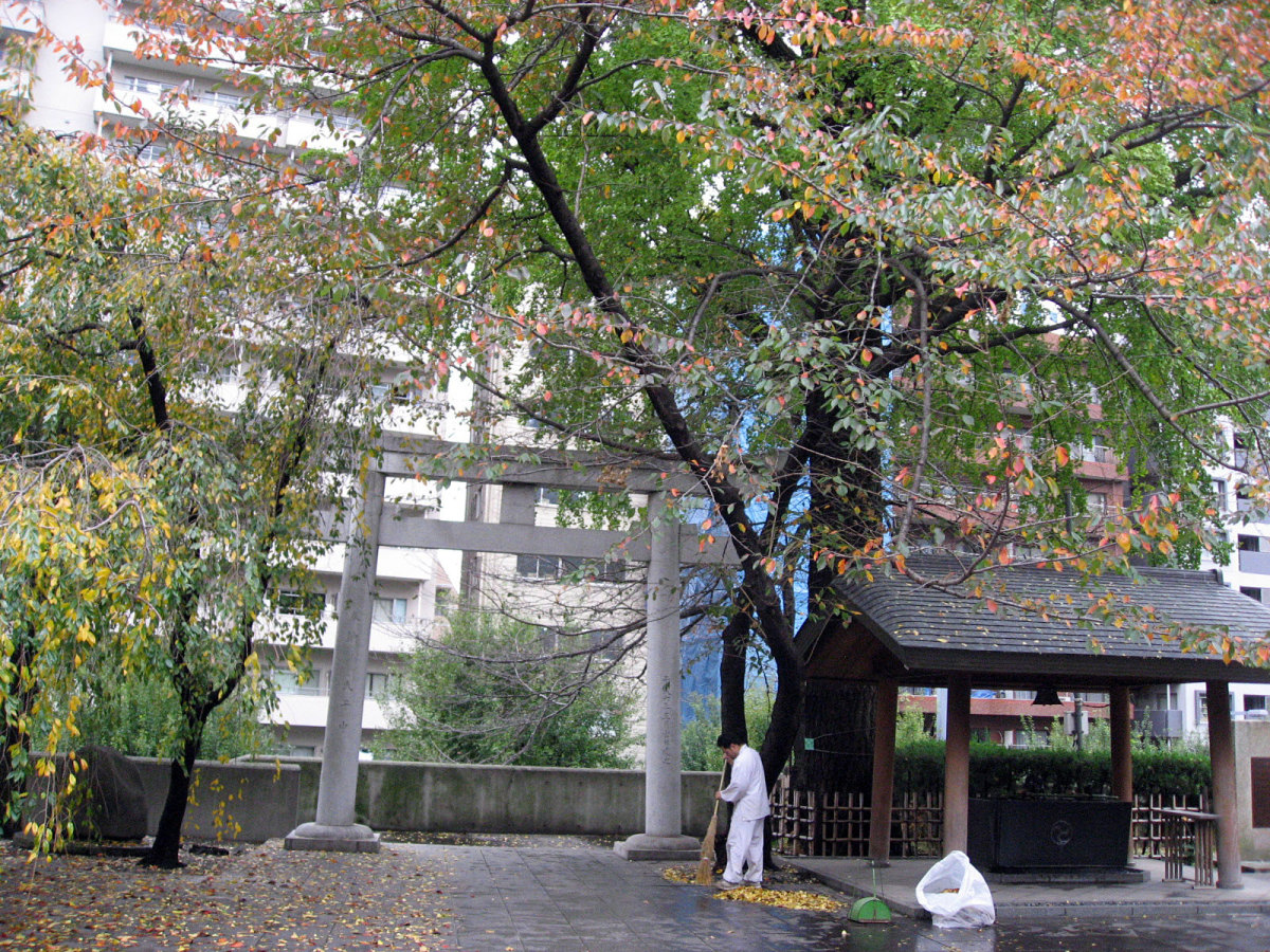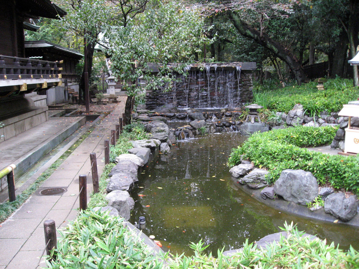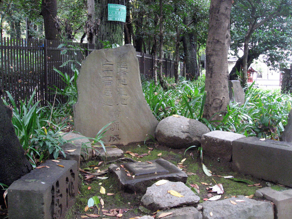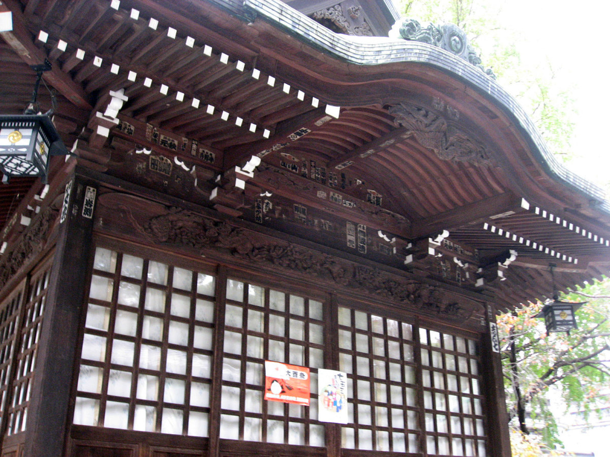 【十二社熊野神社は、室町時代の応永年間(1394〜1428)に中野長者と呼ばれた鈴木九郎が、故郷である紀州の熊野三山より十二所権現をうつし祠ったものと伝えられます(一説に、この地域の開拓にあたった渡辺興兵衛が、天文・永禄年間(1532〜69)の熊野の乱に際し、紀州よりこの地に流れ着き、熊野権現を祠ったともいいます)。鈴木家は、紀州藤代で熊野三山の祠官をつとめる家柄でしたが、源義経に従ったため、奥州平泉より東国各地を敗走し、九郎の代に中野(現在の中野坂上から西新宿一帯)に住むようになりました。九郎は、この地域の開拓にあたるとともに、自身の産土神である熊野三山より若一王子宮を祠りました。その後鈴木家は、家運が上昇し、中野長者と呼ばれる資産家になったため、応永10年(1403)熊野三山の十二所権現すべてを祠ったといいます。江戸時代には、熊野十二所権現社と呼ばれ、幕府による社殿の整備や修復も何回か行われました。また、享保年間(1716〜1735)には八代将軍吉宗が鷹狩を機会に参拝するようになり、滝や池を擁した周辺の風致は江戸西郊の景勝地として賑わい、文人墨客も多数訪れました。明治維新後は、現在の櫛御気野大神・伊邪奈美大神を祭神とし、熊野神社と改称し現在にいたっています。氏子町の範囲は、西新宿ならびに新宿駅周辺及び歌舞伎町を含む地域で、新宿の総鎮守となっています。】
