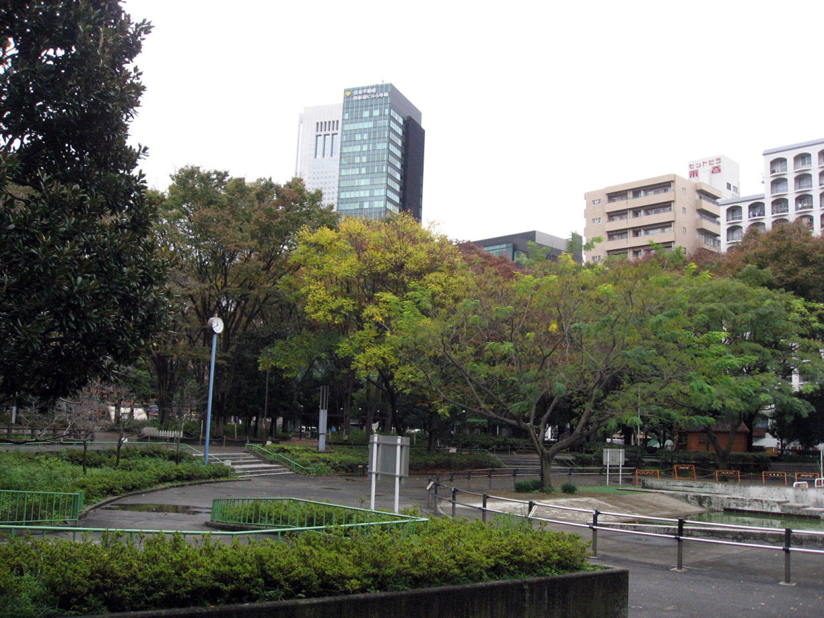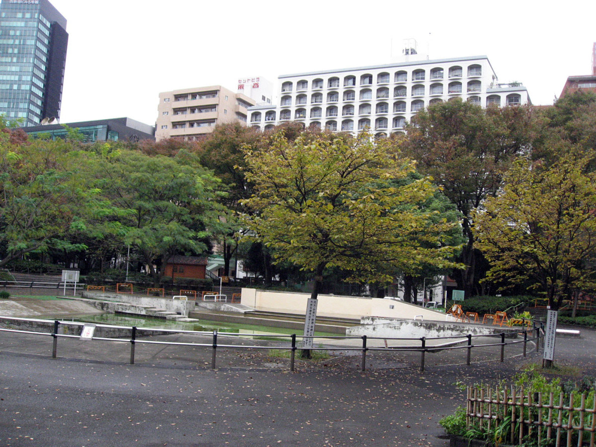 【十二社の池は、慶長11年(1606)伊丹播磨守が田畑の用水溜として大小つの池を開発したもので、現在の熊野神社の西側、十二社通りをへだてたて建つ三省堂ビル・後楽園ビルのあたりにありました。大池(中池・上の溜井)は南北126間・東西8〜26間とされ、水源は湧水であったようです。池の周囲には享保年間(1716〜35)より多数の茶屋ができ景勝地として振るわいました。明治時代以後は、大きな料亭ができ花柳界として知られるようになり、最盛期には料亭・茶屋約100軒、芸妓約300名を擁したほか、ボート・屋形船・釣り・花火などの娯楽も盛んに行われましたが、昭和43年(1968)7月に埋め立てられました。大池の北側に隣接する小池(下池、下の溜井)は、大池の分水で、南北50間・東西7〜16間ありました。昭和の初期より一部の埋め立てが行われ、第2次大戦中には完全に埋め立てられました。】