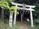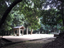 【明治四十三年奉献の八幡鳥居の向こうに東面して建つ素木の春日造。屋根は銅板葺で、棟には千木鰹木を置く。殿内に棟札を置くが、明治二十五年十月二十五日の正遷宮時の棟札の裏面に「当社元来檜皮葺ナリシガ鼬鼠(いたち)ノ類屋ヲ穿ツテ巣ヲ構ヘ失水ノ汚穢ト雨漏ノ朽腐アリ神明ニ対シ畏懼ニ堪エス爰ニ銅板ヲ以テ屋上ヲ修覆ス之ヨリサキ瑞垣大破セリ依テ有志相議リ喜捨シテ石造トナス共明治三十五年八月十日工ヲ起シ同年十月廿五日竣成ス」と記されている。(高市郡神社誌)】