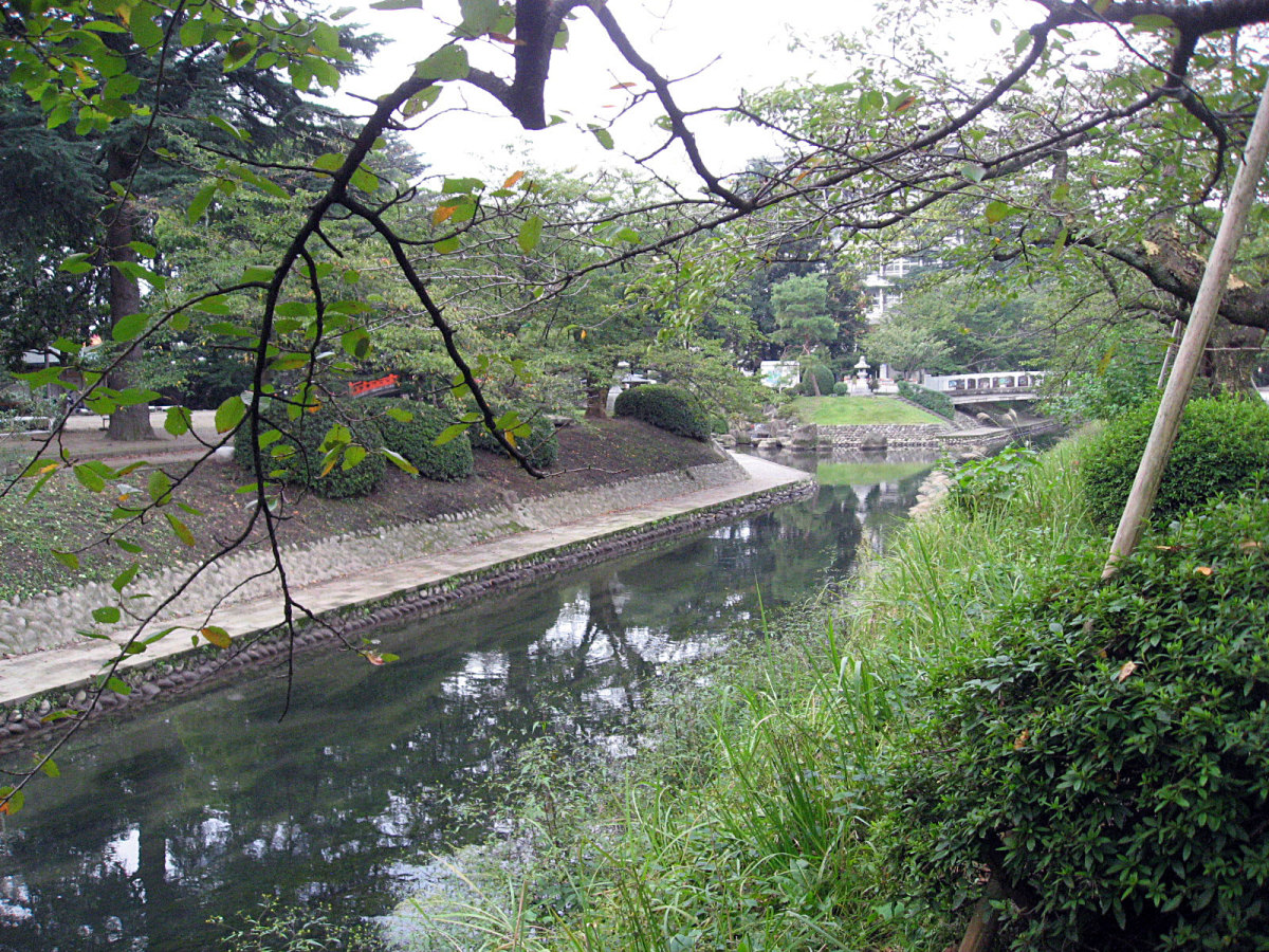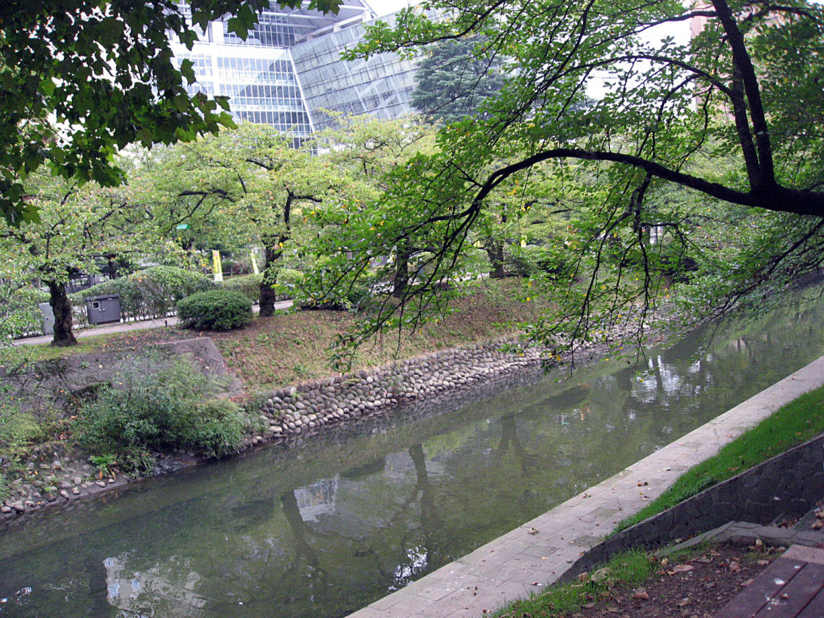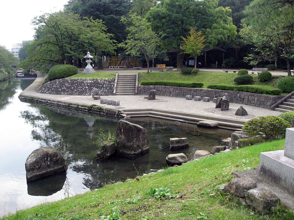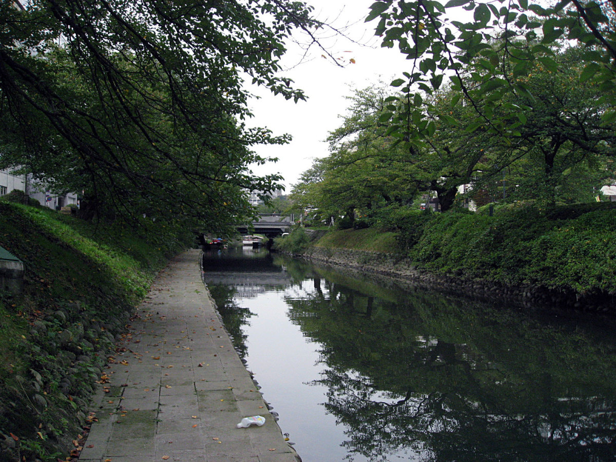 お城を眺めて,親水(日庭園式)公園をもう一度歩いて・・・さて,松川沿いに西へ向けて進みました。