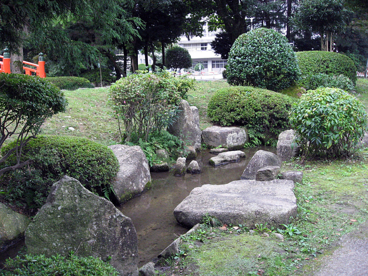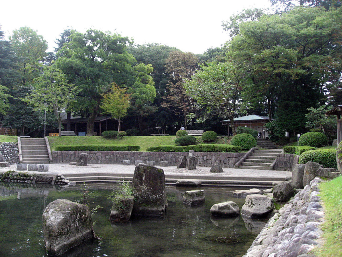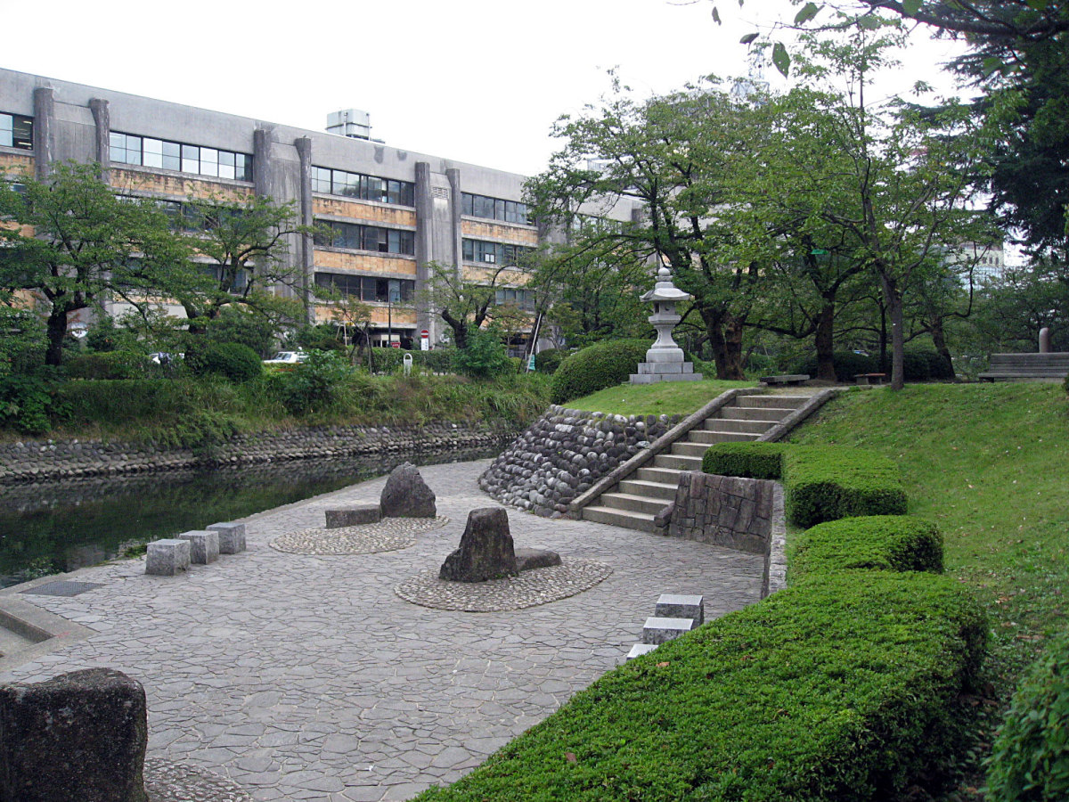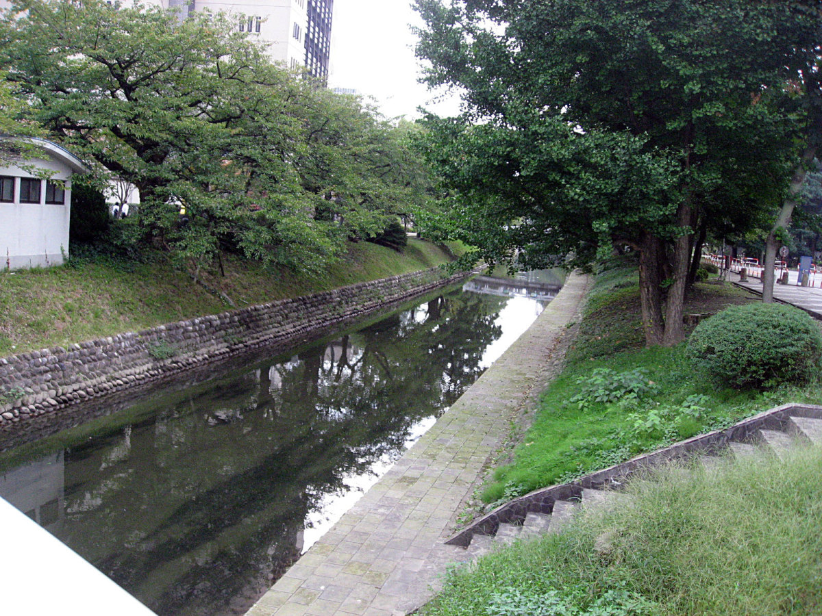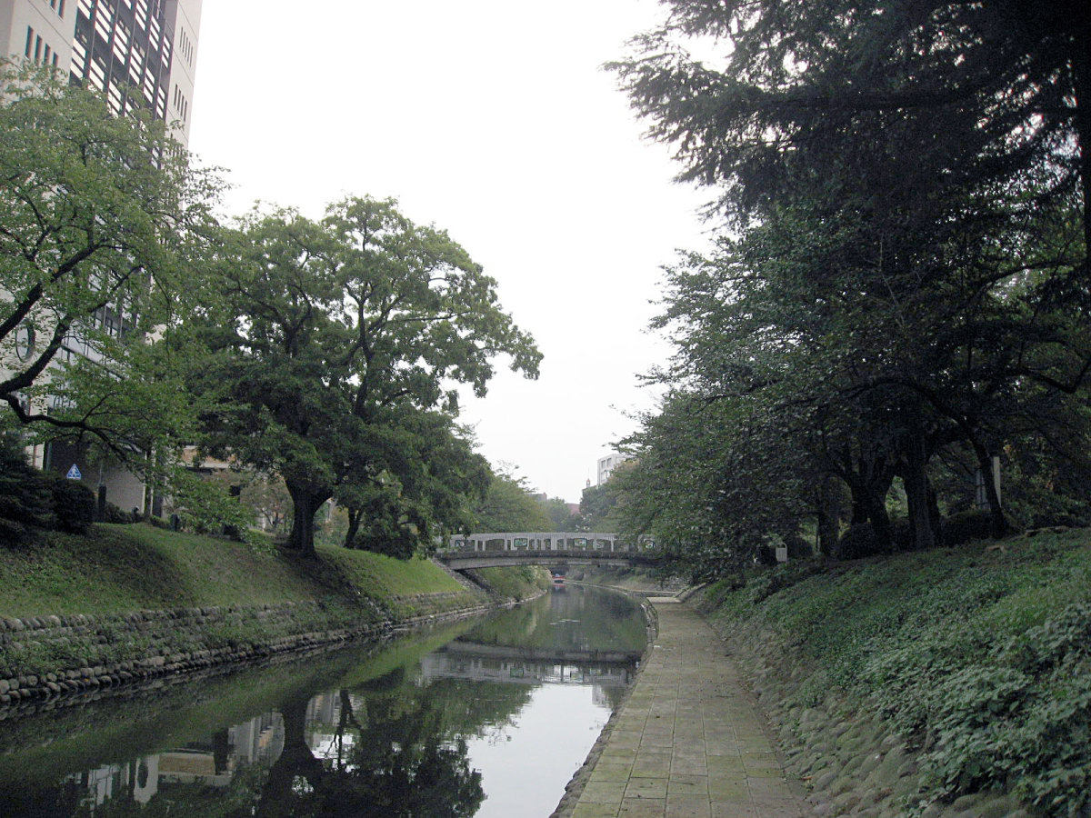 お城を眺めて,親水(日庭園式)公園をもう一度歩いて・・・さて,松川沿いに西へ向けて進みました。