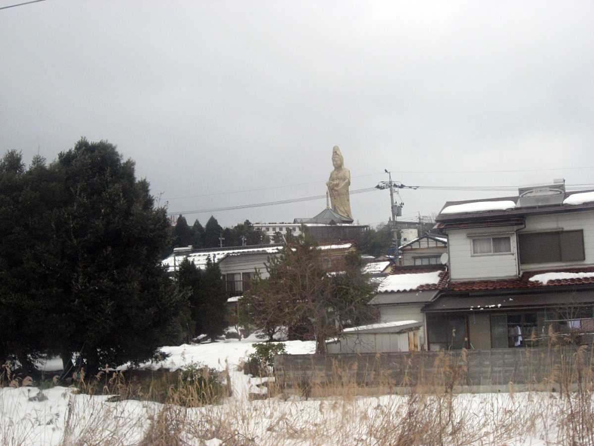 どこがどこやら・・・雪野原ばかり・・。大聖寺の加賀大観音がはっきり見えました。