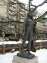 松川沿いには,彫刻が一杯・・像が一杯・・10月には東の桜橋の方へ行きましたが,今日は西に向けて・・・。