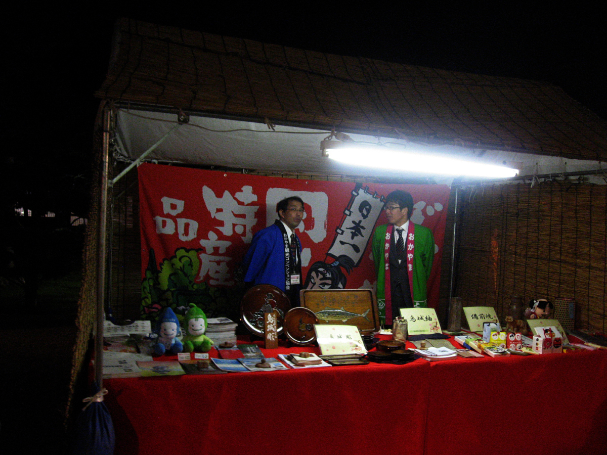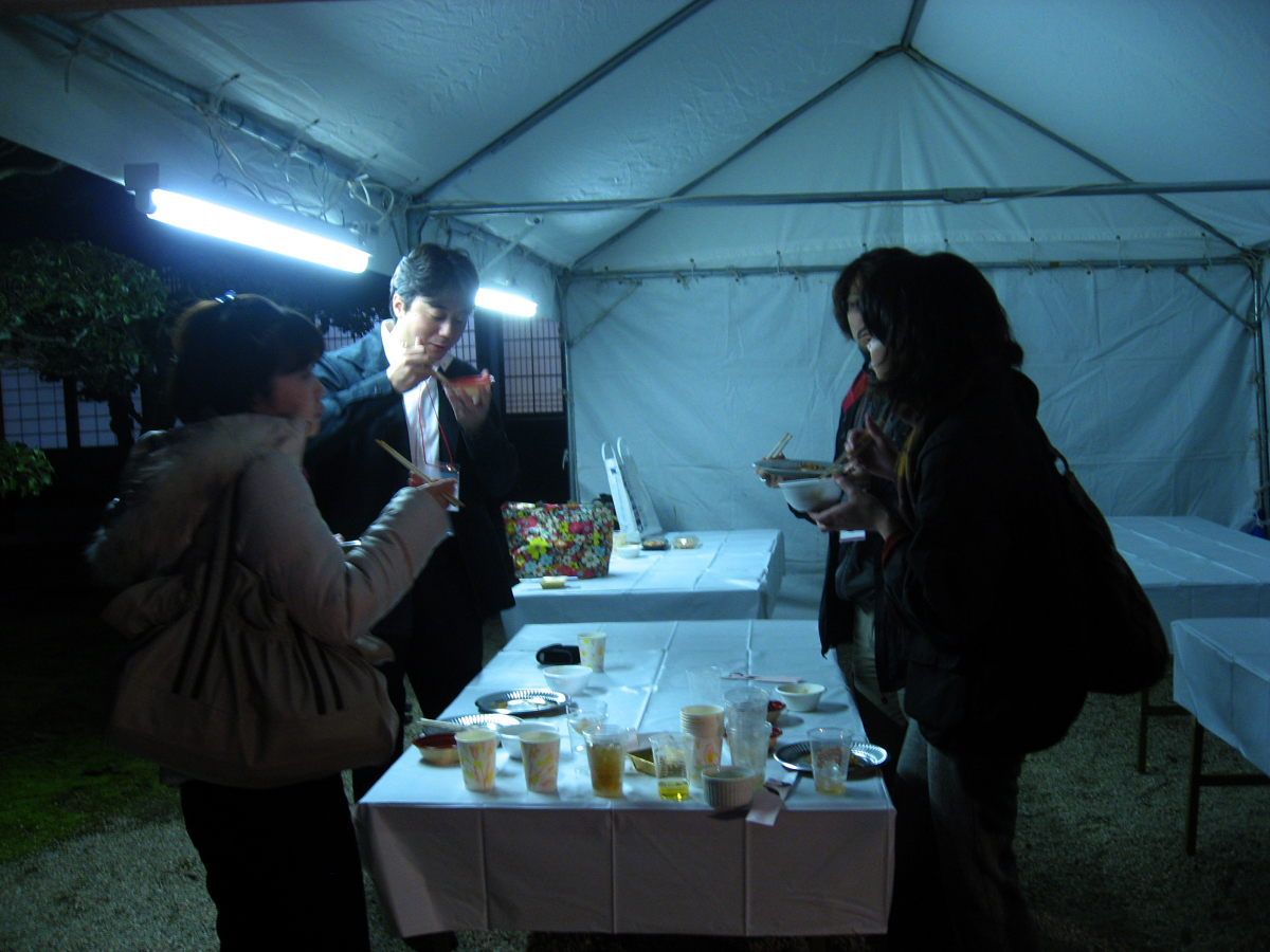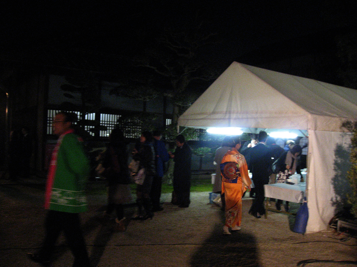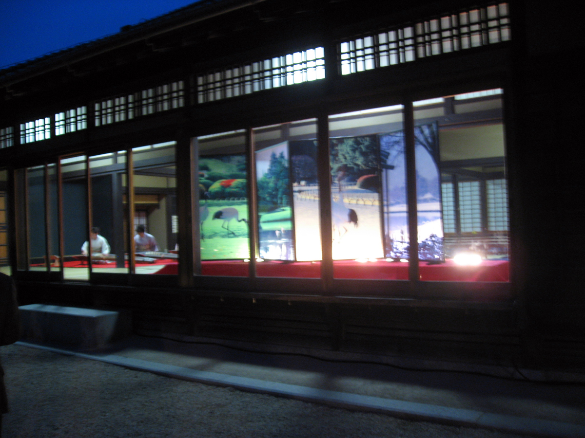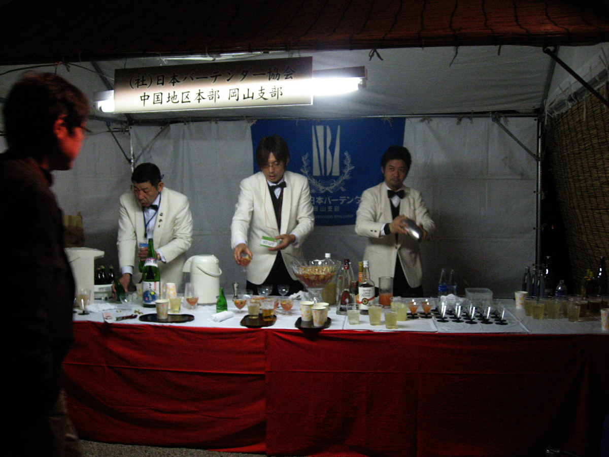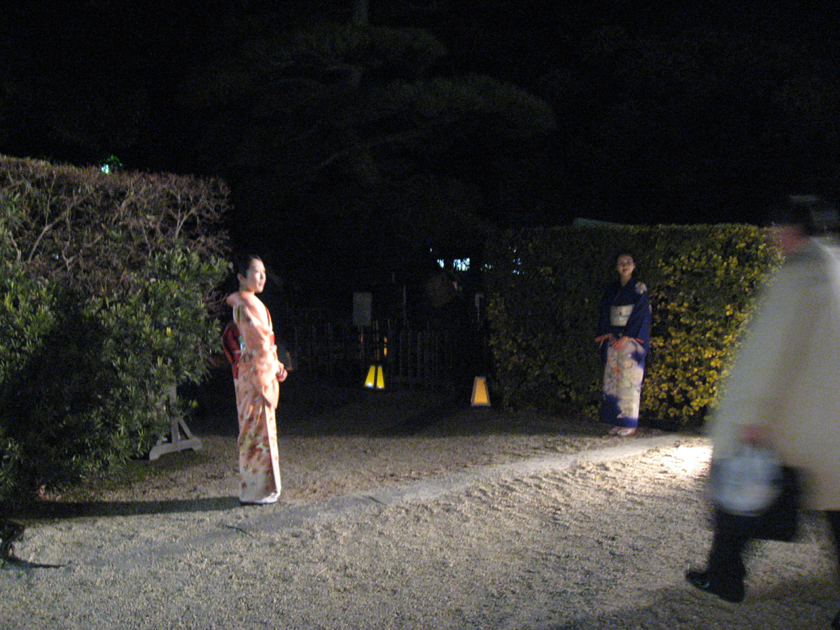 | 2010.2.222. (平成22年2月22日・・・・2ばかりです) 比較的,冬にしては暖かい夜でした。岡山の後楽園の中で・・・「岡山の夕べ」です。 これは昨年4月に岡山市は政令指定都市となって・・・で,コンベンションも充実させたいって思われているようで・・・。 高谷市長も来られていました。 結構な人が集まっています。 お寿司でお城を作ってて・・・・・。 市内有名ホテルが一堂に会していました。 前庭には,緋毛氈の卓が並びます。そして,お琴の生演奏です。 そして,・・・今日は皆で来ました。 夜の後楽園ってまた普段と別の風情??? なかなか,すごいストーリです・・・そして動画! ストーリーもしっかりしており,なかなか見ごたえがありました・・・!!!