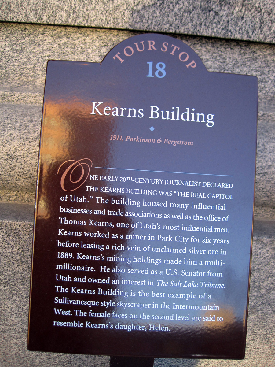 【開拓者をソルトレイク盆地に導いた教会の指導者であったブリガム・ヤングの記念像。テンプルスクエアの隣りに建つ。この像がソルトレイクシティ(盆地)の零地点とされている。ここから東西南北に碁盤の目が広がる。Main Street とSouth Templeの交差点。】です。