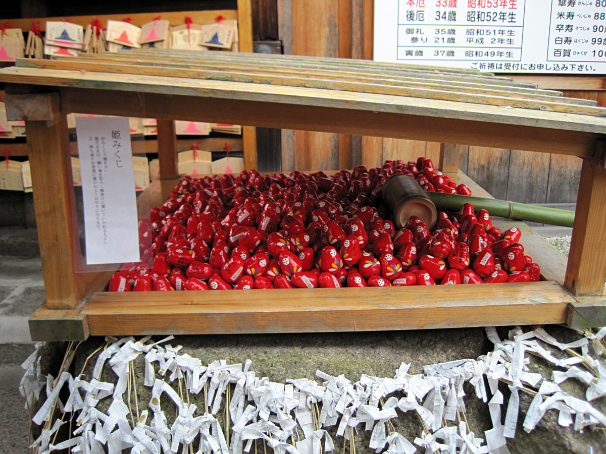 【 平安時代より市場の守り神である市比賣社は、多くの人々で賑わっていました。昭和2年日本で初めて「中央卸売市場」が京都に開設された折、分社として「市姫神社」が祀られています。「五十日百日之祝」(いかももかのいわい)は生後五十日目か百日目に当社より「五十顆之餅」を授かり健やかな成長を祈り子供の口に含ませる現在のお食べ初めの発祥として知られています。源氏物語など多くの古典文学にも描かれ、歴史にその名を残しています。】