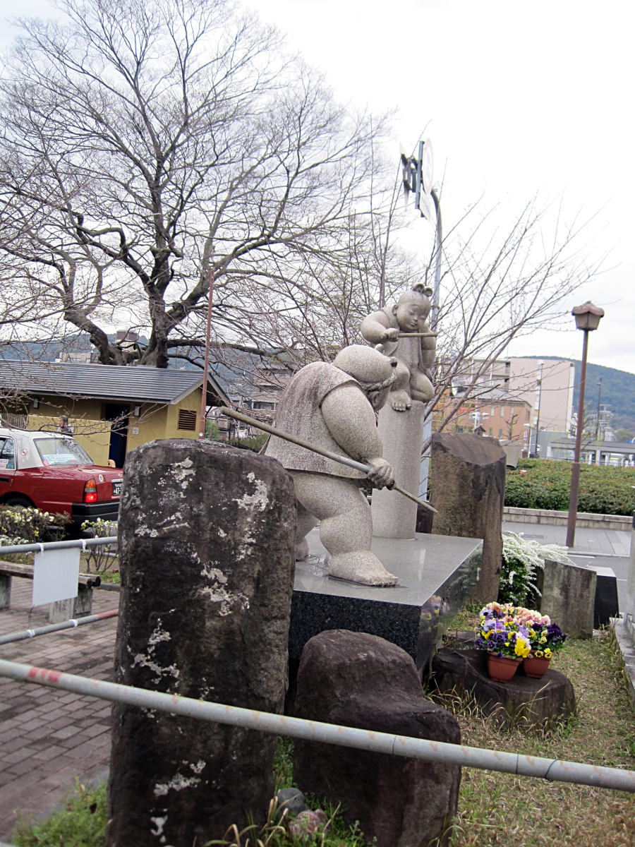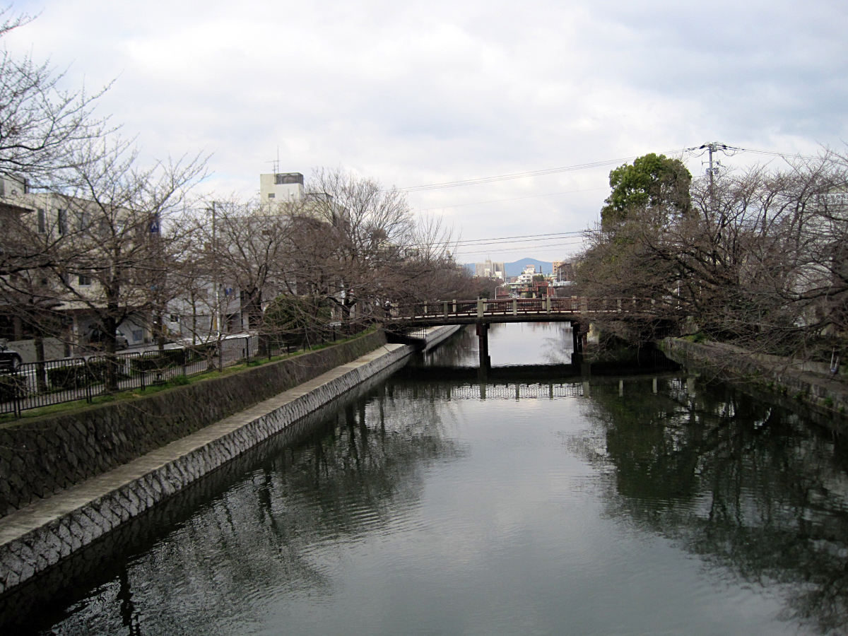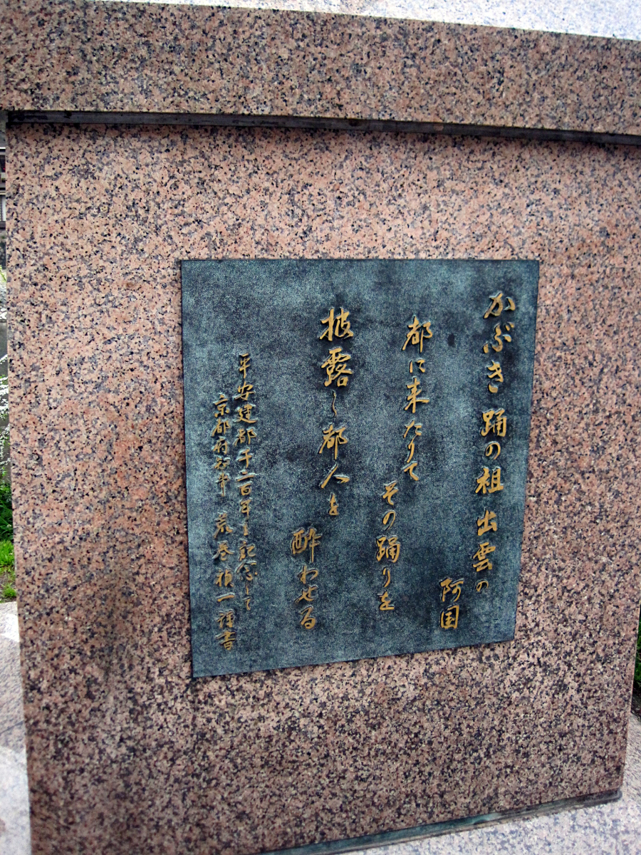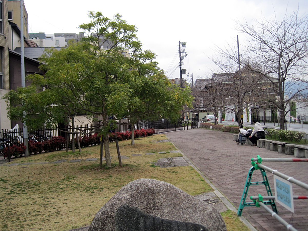 さて,少し上ルと・・・「京の五条の橋の上 大の男の弁慶が 長い長刀振りかざし 牛若めがけて、切リかかる」五条大橋です。