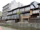 この辺りの料理屋さんは,鴨川を眺める様に出来ていますよね・・・。鱧とかですよね,きっと!