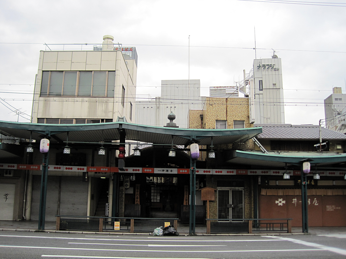 そこからは八坂神社の参道になりますが・・・そこに仲源寺さんがありました・・・商店に挟まれながら・・・・