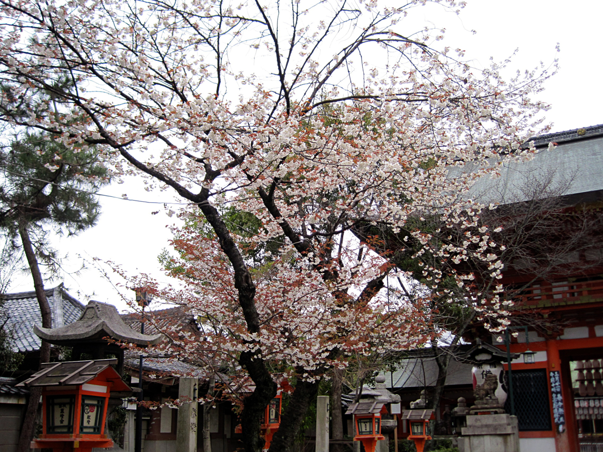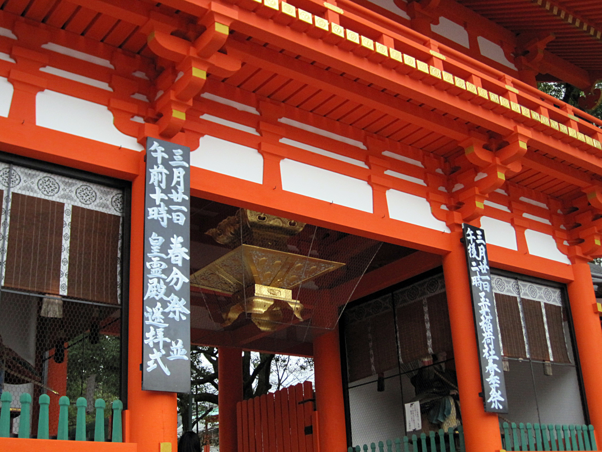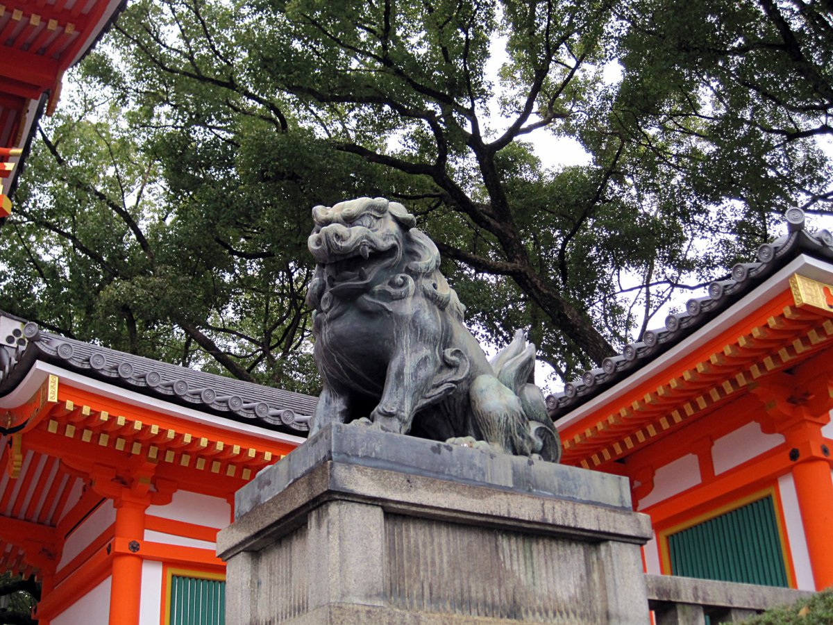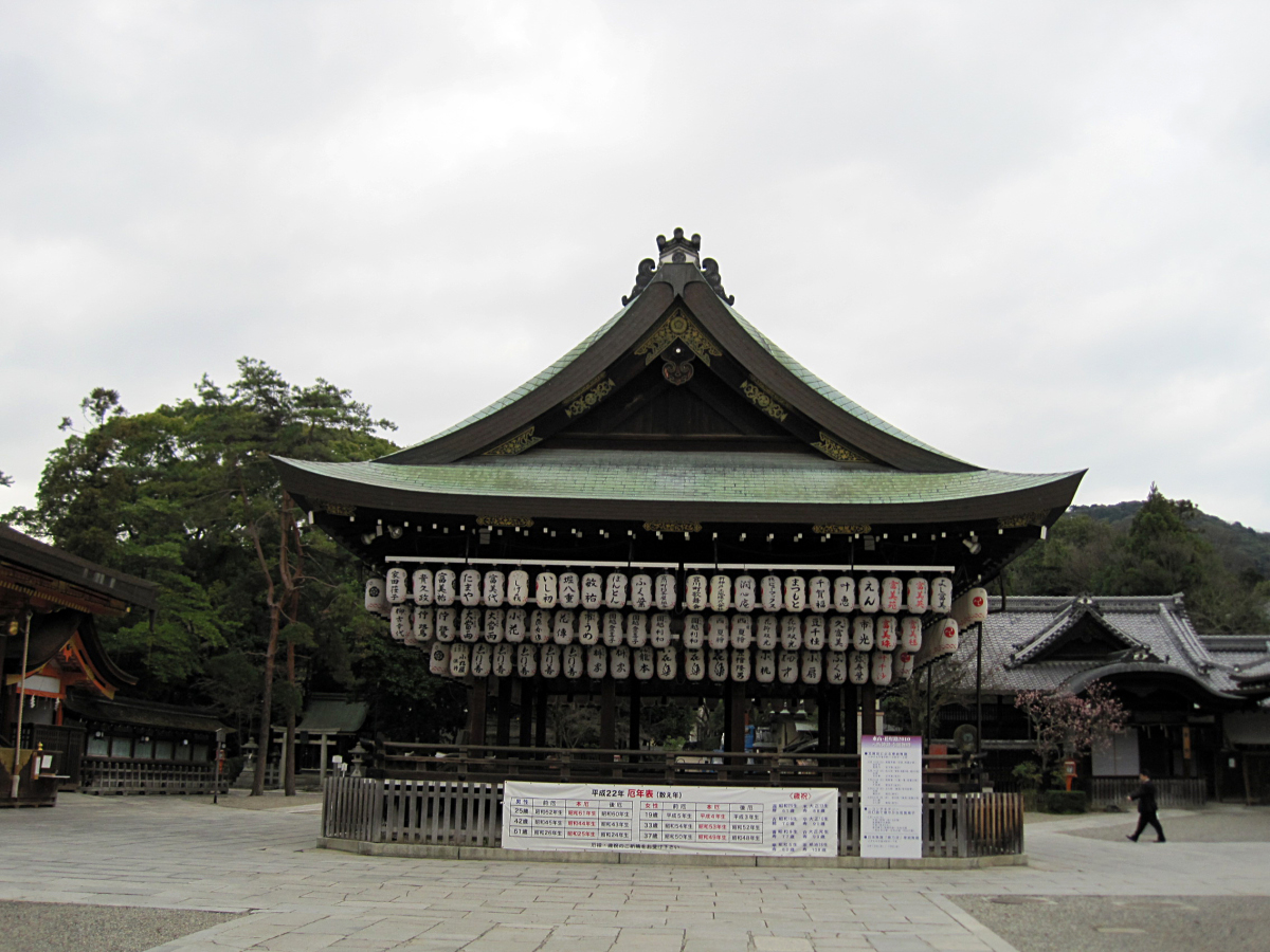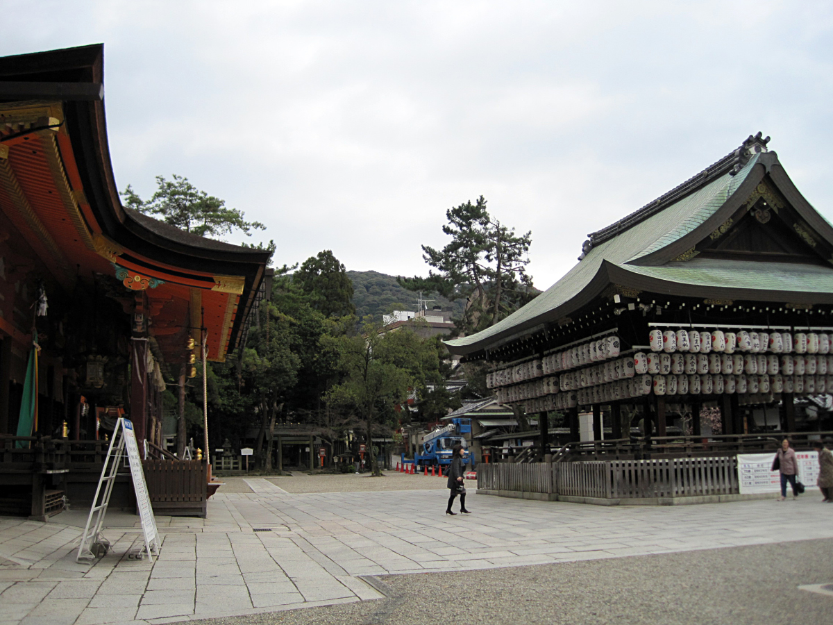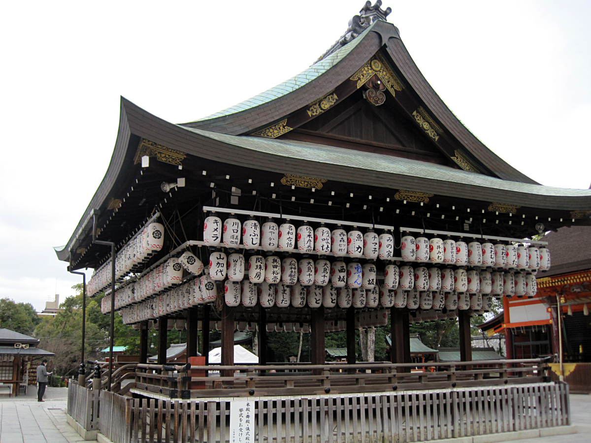 【八坂神社(やさかじんじゃ)は、京都府京都市東山区祇園町にある神社。かつての社名から祇園さんの愛称で呼ばれる。7月の祇園祭(祇園会)で知られ、ほかに特殊神事として白朮(をけら)祭がある。旧社格は官幣大社。中世には二十二社の下八社のひとつとされた。慶応4年(1868年)の神仏分離令(廃仏毀釈運動)により、元々「祇園神社」「祇園社」「祇園感神院」と呼ばれていたのが、「八坂神社」と改められた。八坂神社を総本社とし、素戔嗚尊(スサノオ)を祭神とする神社が、日本全国に約2300社あるとされる。】