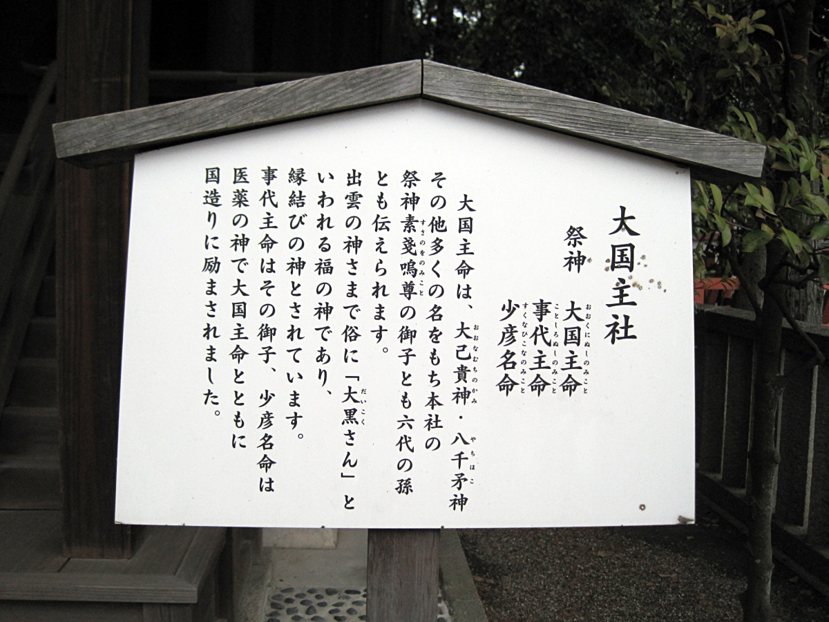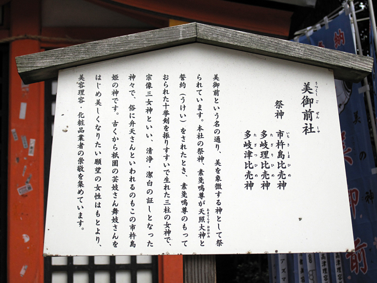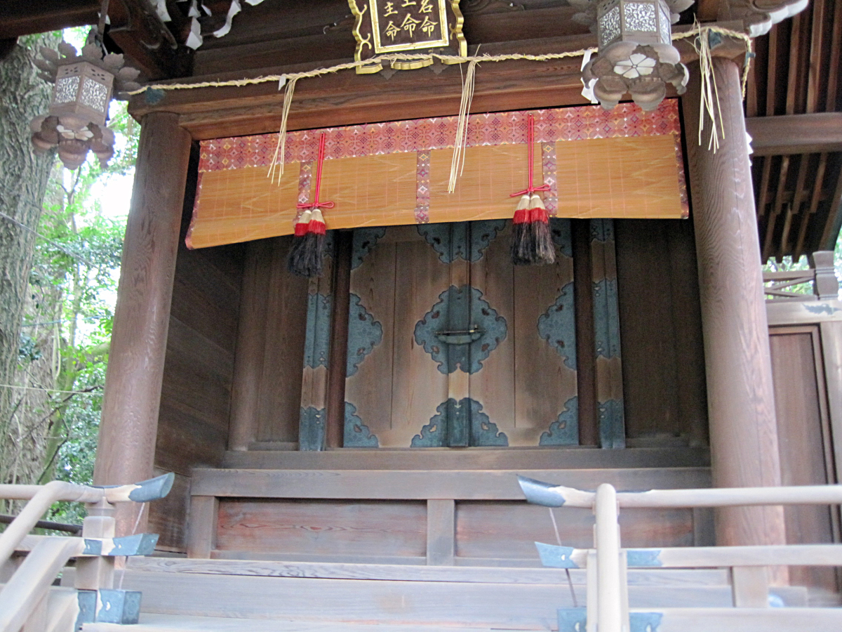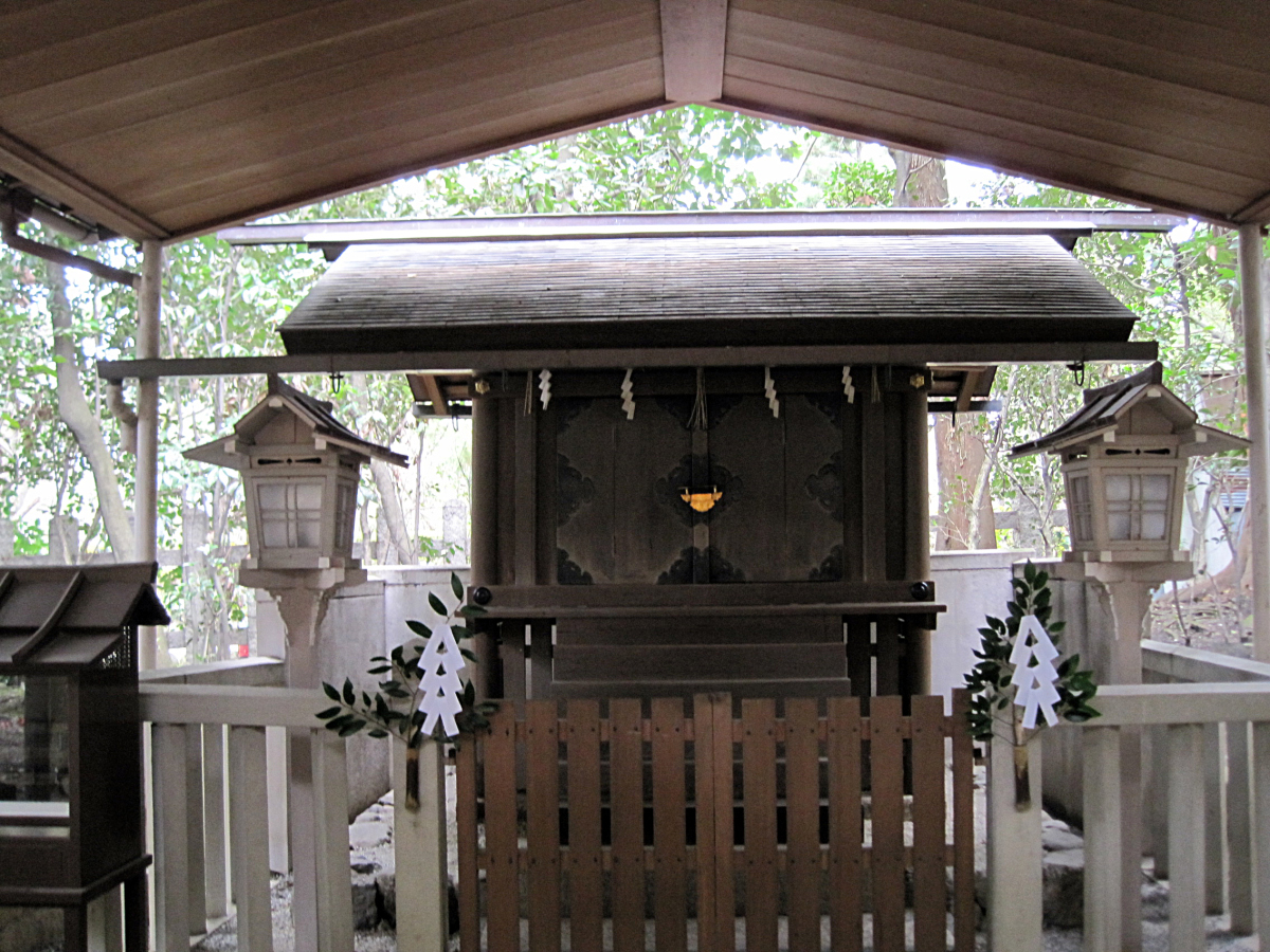 【末社 :北向蛭子社(事代主神),大神宮(天照大神、豊受大神),美御前社(多岐理比売命、多岐津比売命、市杵島比売命),大国主社(大国主神、事代主神、少彦名命),玉光稲荷社(宇迦之御魂神):玉光稲荷社権殿の「命婦稲荷社」と二社で一体の御社とされている。日吉社(大山咋神、大物主神),刃物神社(天目一箇神),厳島社(市杵島比売命),太田社(猿田彦命、宇受女命),大年社(大年社、巷社神),十社