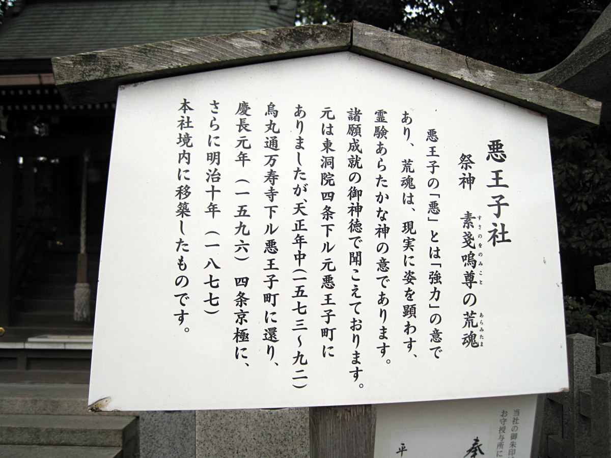 【摂社 としては 疫神社(蘇民将来),悪王子社(素戔嗚尊の荒魂),冠者殿社(天照大御神との誓約時の素戔嗚尊の御気)】だそうです。