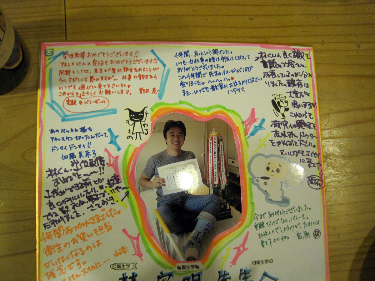 大学院生の林宏明先生が,卒業です。学位も受け取られました。博士(医学)です。