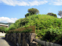 【古代吉備国の有力豪族であった吉備上道氏の本拠地は、旭川下流東岸の高島・竜操学区の地域とされています。この地域から北に、竜の口山を隔てた山間の牟佐地区に、吉備地方の三大巨石墳の一つの牟佐大塚古墳が、単独状態で築造されています。牟佐大塚古墳は、復元すると墳丘が直径40m、高さ10mを上回る大型の円墳で、墳丘の中心部分に全長18m、最大幅2.8m、最大高3.2mを計る横穴式石室が南向きに設けられていて、石室の規模の巨大さから、巨石墳と呼ばれています。出土物が不明ですが、六世紀末の築造と推定され、石室の奥には遺骸を納める家形石棺が安置してあり、この石棺は、備中南西部(井原市)産出の石材(浪形石)で作られています。横穴式石室は、今日の代々墓のように何人もの遺骸を葬る家族墓的な埋葬施設です。】ということです。