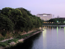 【旭川を跨ぎ出石町と後楽園を結ぶ橋、それが鶴見橋です。かっては木造の板橋でしたが、昭和5年(1930)の陸軍特別大演習の時に後楽園に本営が置かれることになり、架け替えられました。後楽園の玄関口となることから、意匠は景観上配慮されました。カンティレバープレートガーダー橋で設計は田島治二、高欄意匠は武田五一が担当しました。橋上からの美しい風景だけでなく、近代の土木遺産としても価値が高い橋です。】です。