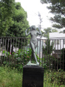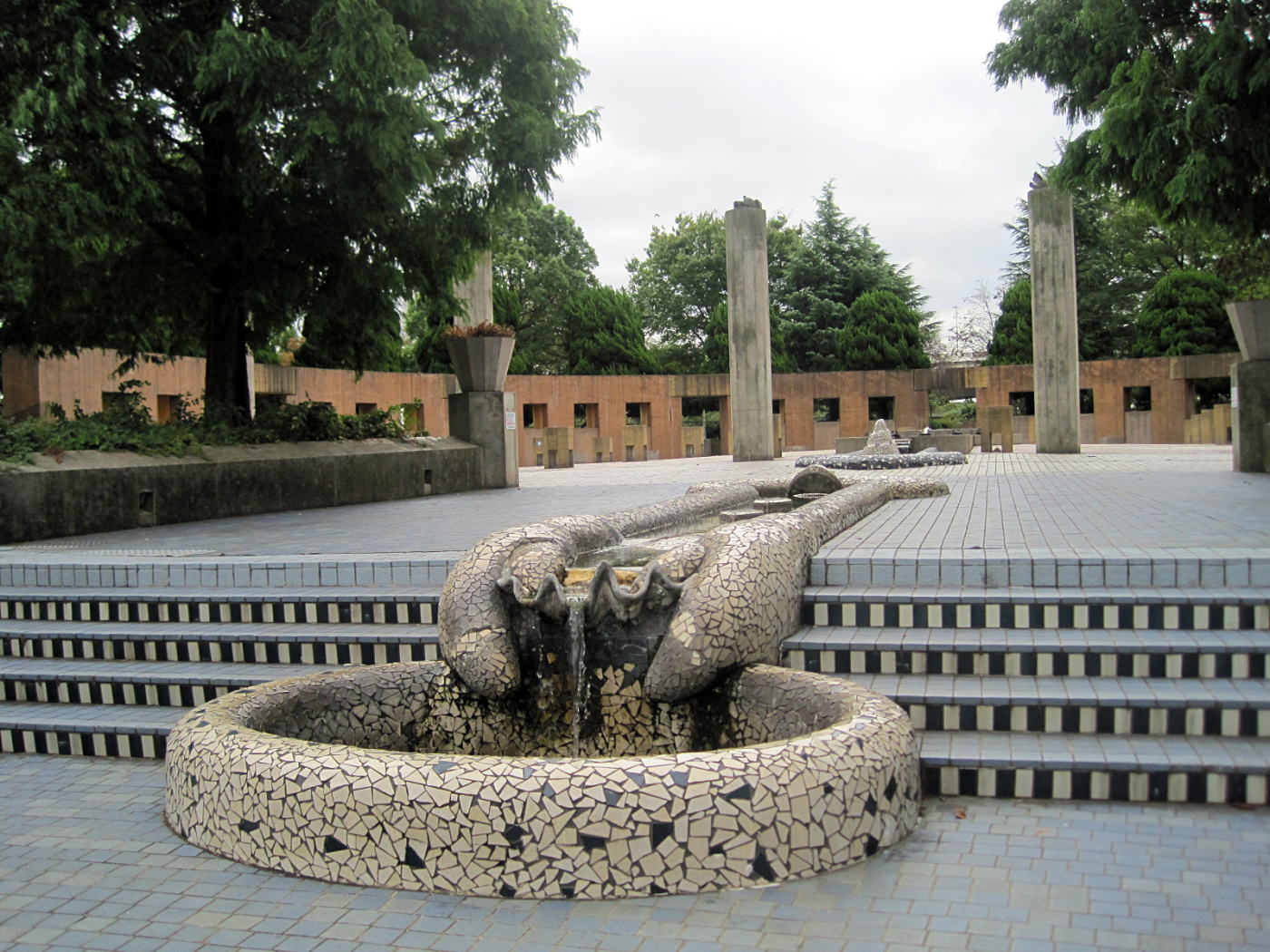 【解説:港の見える丘公園の展望台の右に広がる沈床花壇の奥にアーチ型の屋根と赤レンガの外観が一際目立つ瀟洒な館で、大衆文化の一時代を築いた「鞍馬天狗」などの作者として知られる大佛次郎の記念館。大著「パリ燃ゆ」の執筆時に集められたパリ・コミューン関連資料をはじめ、自筆原稿やメモ、書簡、愛用品、約6万冊におよぶ蔵書などを収蔵・展示している。猫を愛玩した彼の面影を偲んでか、館内には猫もシンボル的に配置されている。なお、大佛次郎は横浜出身で「霧笛」「幻橙」など横浜を舞台にした小説を数多く執筆している。】です。