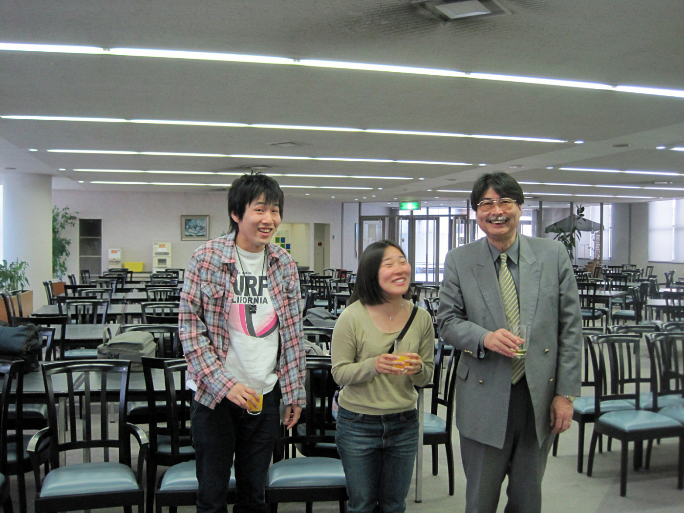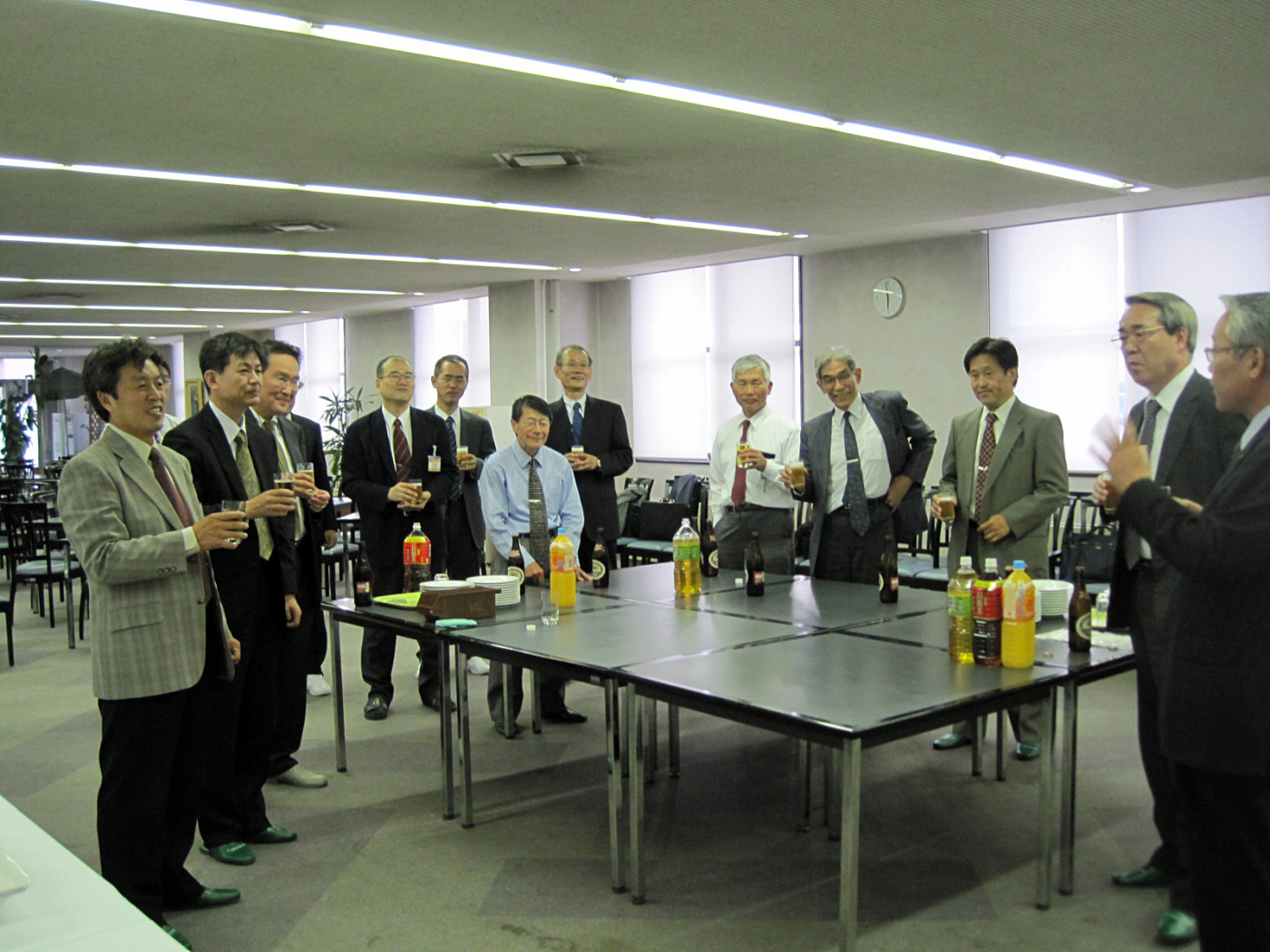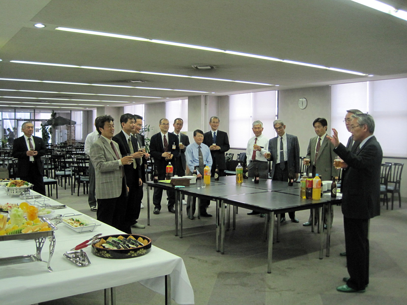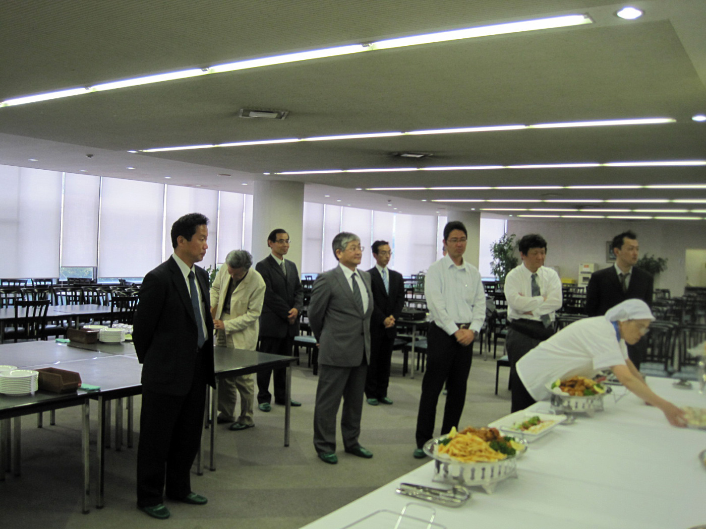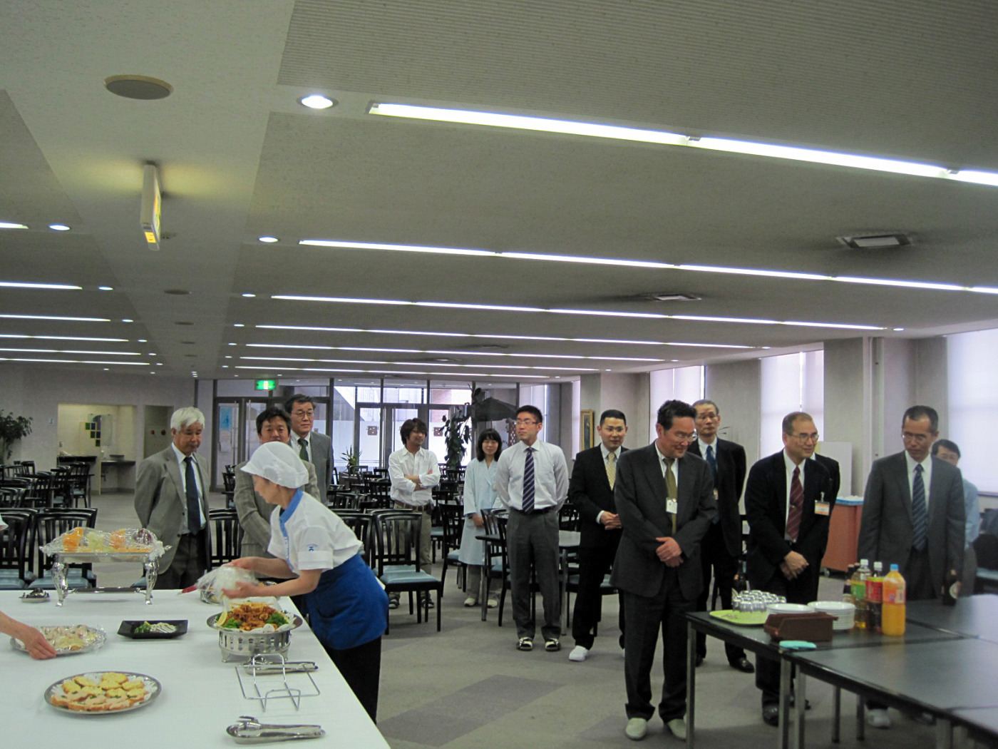 ====================================== この後,臨床工学科の実験室(東棟8Fでした・・・いつも授業には6Fに行きますけれど)の見学です。 最後は,福祉大の学生食堂のCAM-MEALで,交流会でした。 福祉大キャンパスと・・・残念ですが中途お帰りの先生方! OG技研の難波氏にに乾杯のご発声をお願いいたしました。 かつ,種々の関係で,結構あまり気味になっちゃって!! 最後は,臨床工学の小笠原先生にご挨拶頂きました。 |