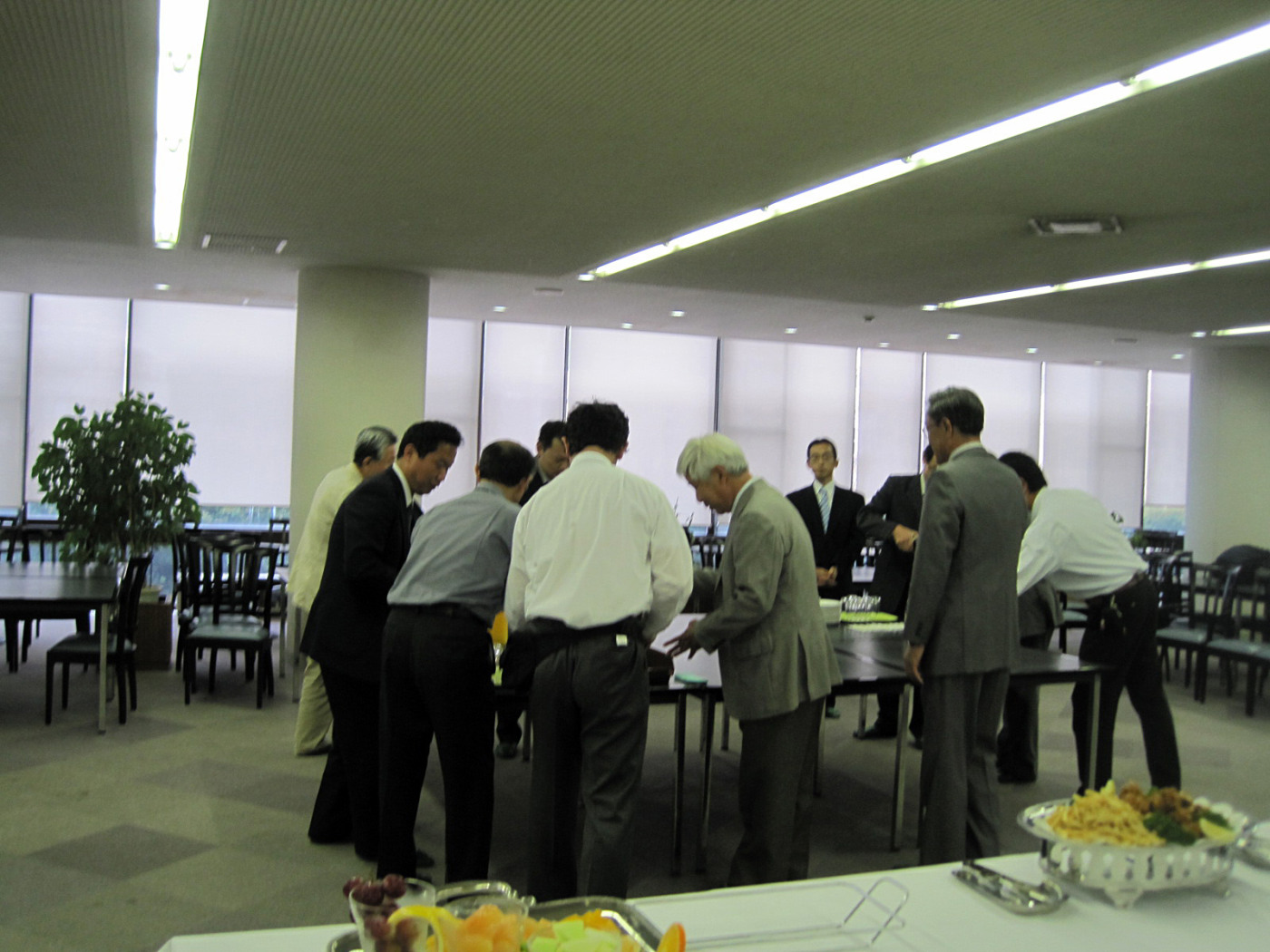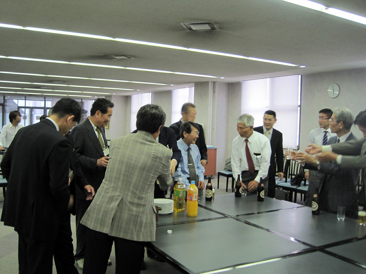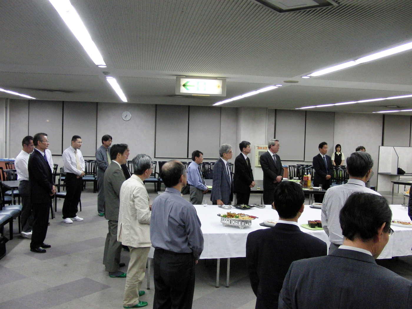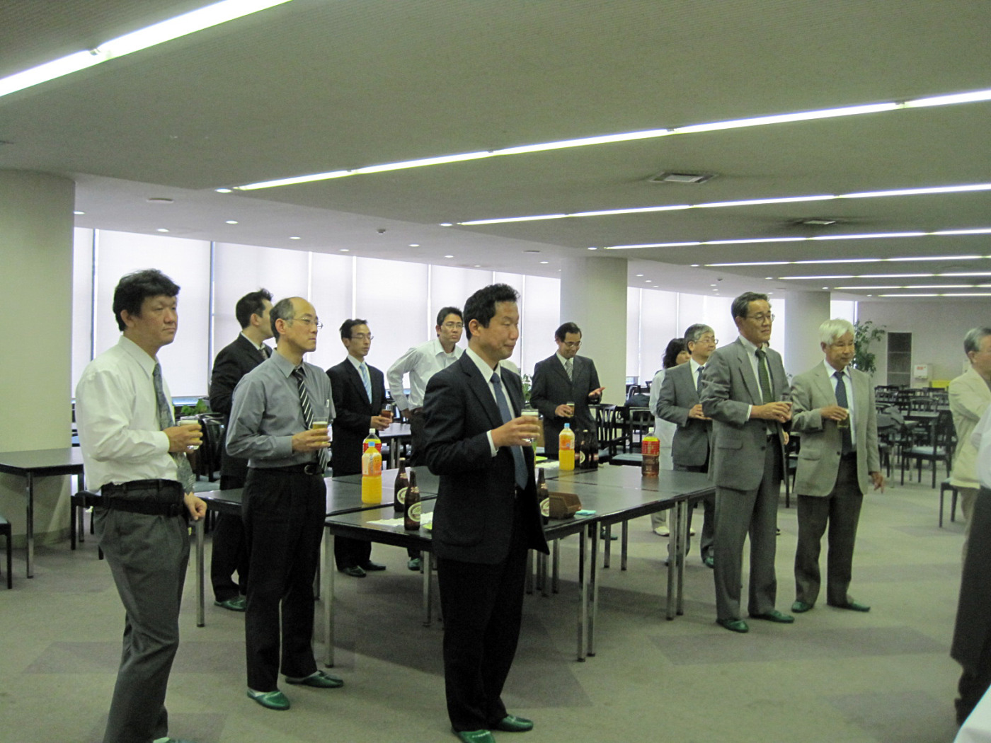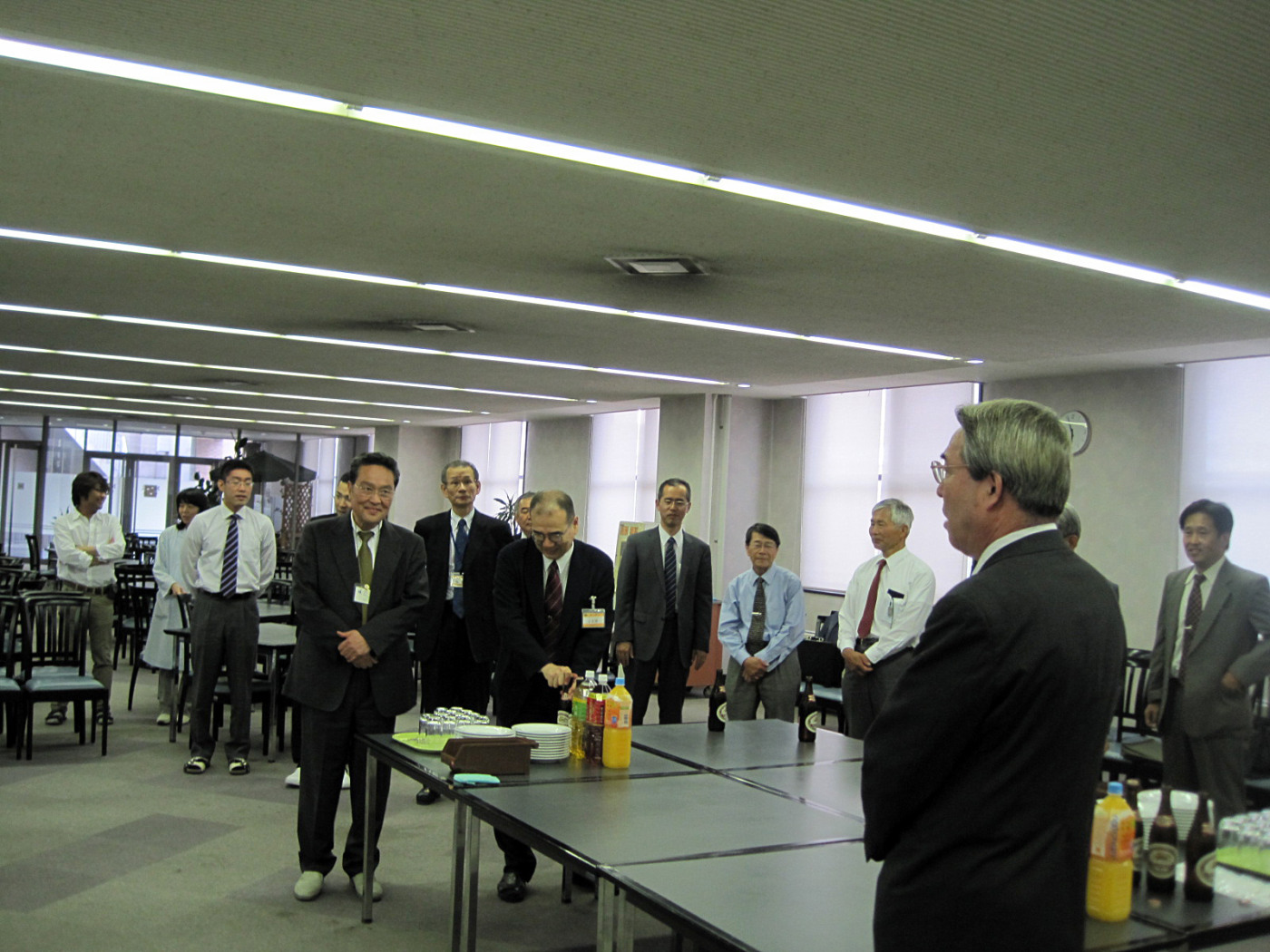 ====================================== この後,臨床工学科の実験室(東棟8Fでした・・・いつも授業には6Fに行きますけれど)の見学です。 最後は,福祉大の学生食堂のCAM-MEALで,交流会でした。 福祉大キャンパスと・・・残念ですが中途お帰りの先生方! OG技研の難波氏にに乾杯のご発声をお願いいたしました。 かつ,種々の関係で,結構あまり気味になっちゃって!! 最後は,臨床工学の小笠原先生にご挨拶頂きました。 |