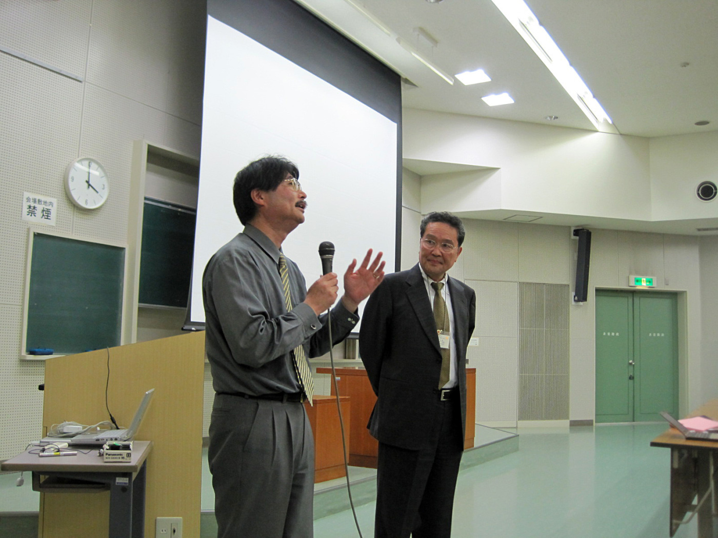 | 2010.5.31. おかやま生体信号研究会・・・第3回例会です。 今回は倉敷市松島地区担当で・・・大槻は研究内容があまり生体信号とは縁が乏しいので・・ 福祉大学の小野寺先生に学術内容はお願いして,実施していただきました。 最初は幹事会でした。 フロアーを移して講演会! 大槻も最初に話させてもらいました。 そして福祉大健康体育の小野寺教授! 小野寺先生と大槻の分は梶谷副学長に座長をお務め頂きました。