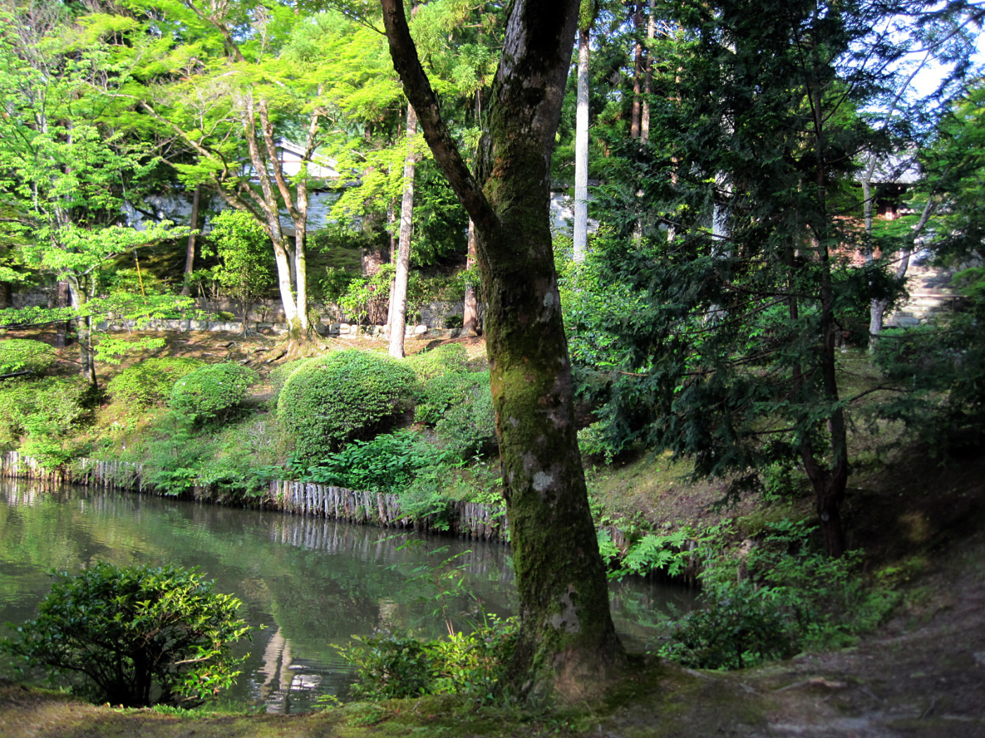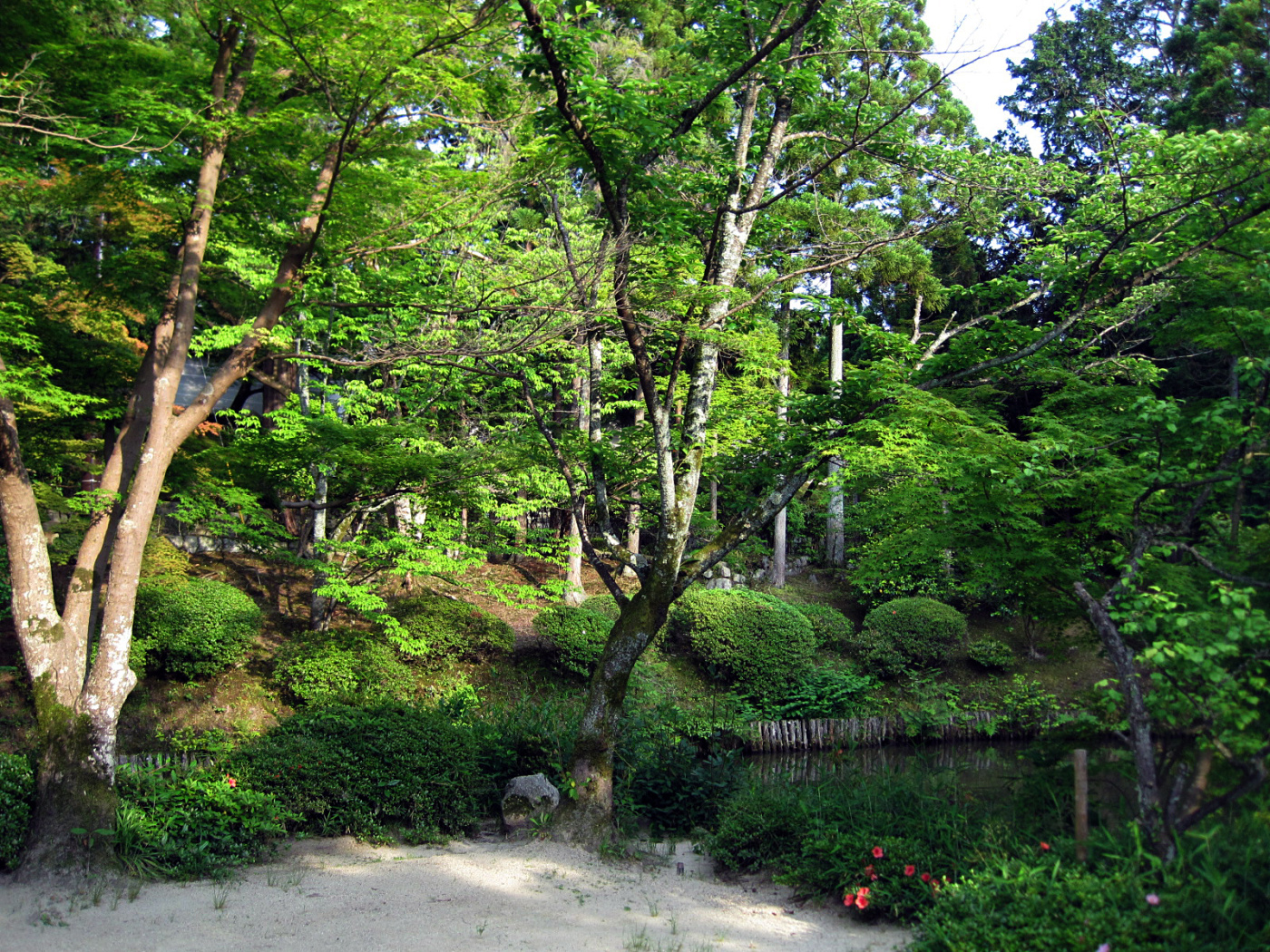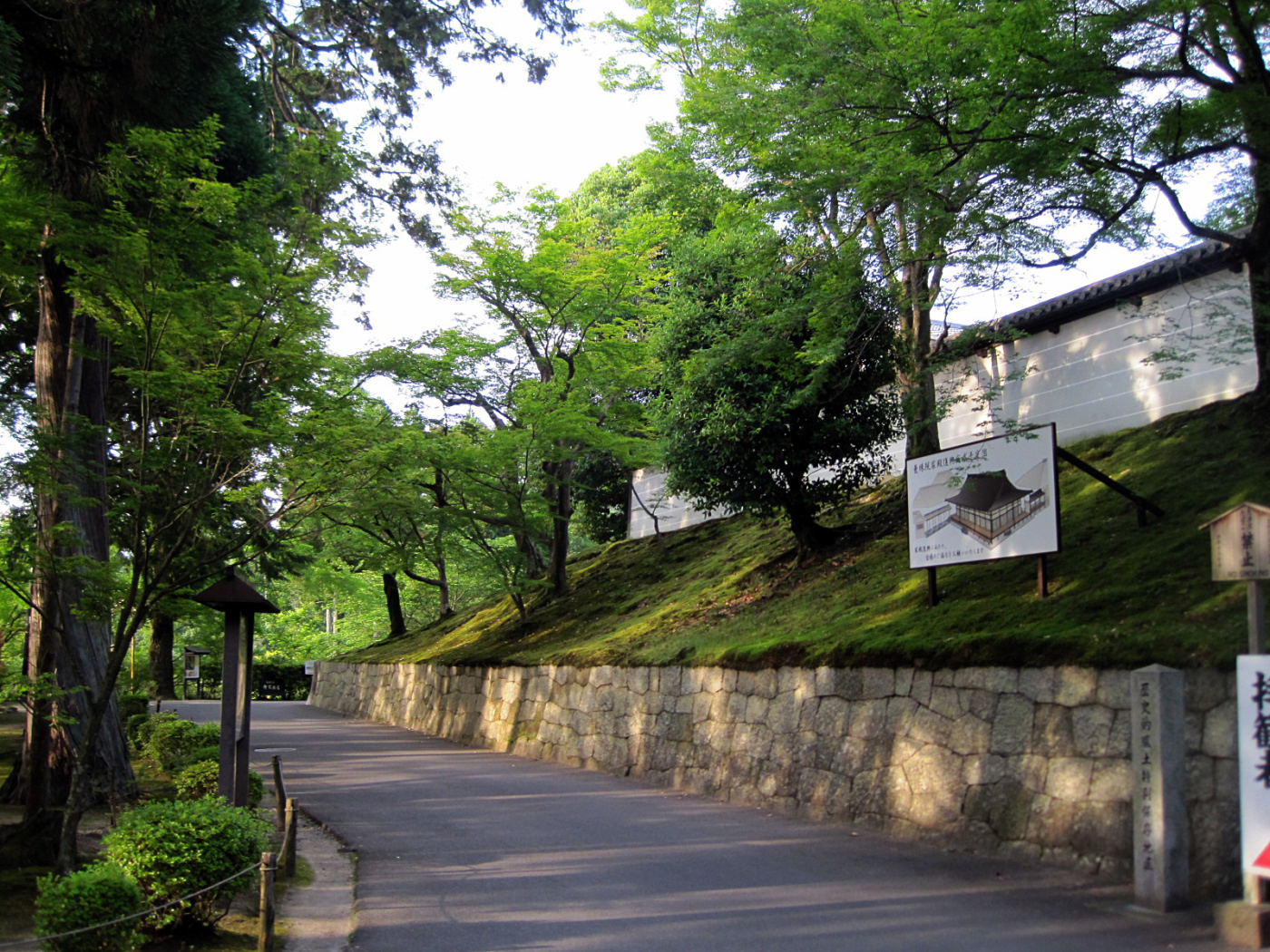 【 起源 :他の天台門跡寺院と同様、最澄(767-822)の時代に比叡山上に草創された坊(小寺院)がその起源とされる。その後、12世紀頃に北山(現在の京都市右京区・鹿苑寺付近)に本拠を移し、洛中(現在の京都市上京区・相国寺付近)への移転を経て、現在地に移転したのは明暦2