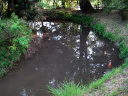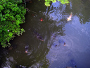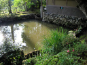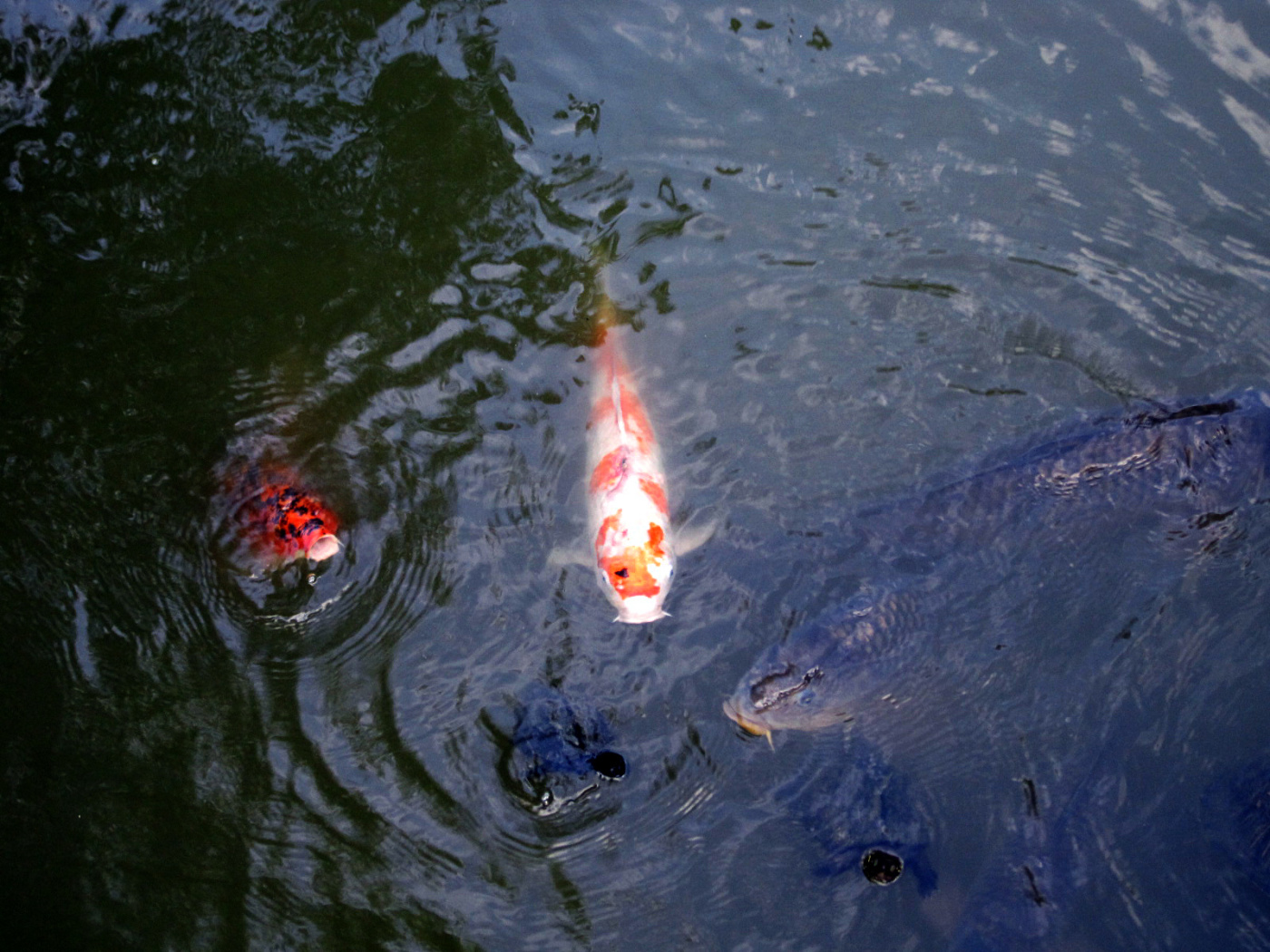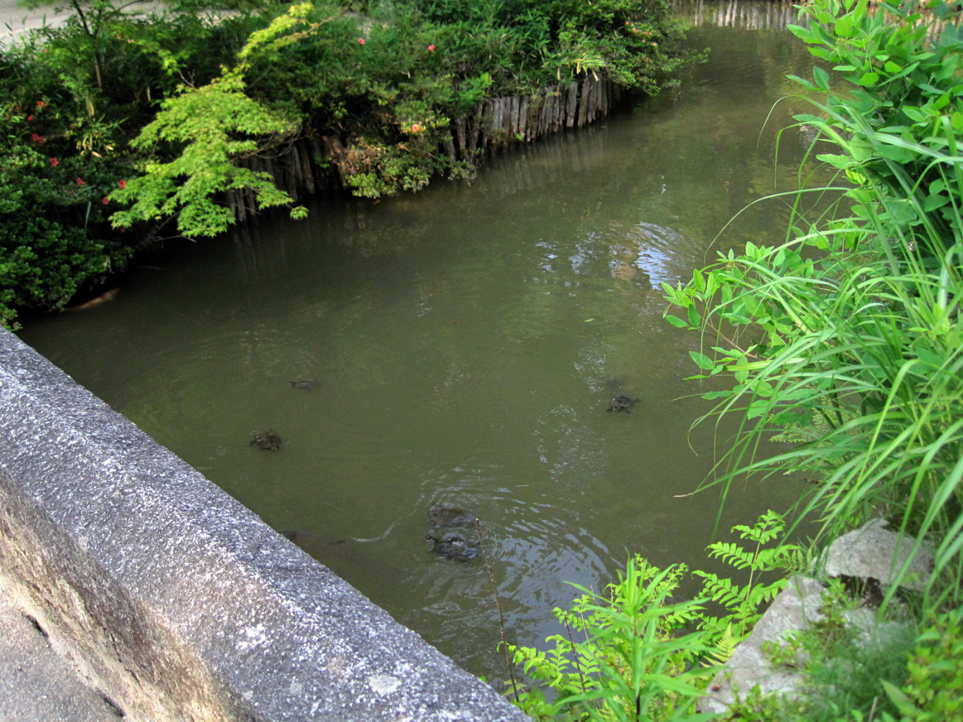 池には鯉と亀・・人が歩くと餌をもらえるって思うのか,集まってきます。