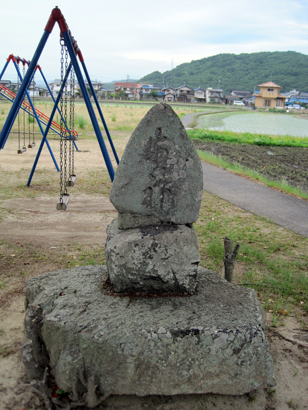 【惣爪(そうづめ)村 〔現・惣爪〕岡山城下町の西部にあり、東は宮内村、南は日畑村(倉敷市)、北は加茂村と接している。山陽道が東西に走っている。この地域には、鎌倉時代末期ごろはまだ海が入り込んでいたが、その後新田開発が行われ、「此地も惣て埋しといふより惣爪とは名付けたるよしいへり」(平家物語)というところから村名になったといわれる。「寛永備中国絵図」では、高721石、庭瀬藩戸川氏領。幕末ごろは東・西両惣爪に分かれていた。足守川左岸近くに惣爪廃寺跡がある。塔心礎(とうしんそ)(国指定史跡)が残っており、天平時代の瓦が出土している。また、加茂御野立所が残っている。明治43年(1910)明治天皇が大演習を統監された場所である。明治22年(1889)加茂村など4ヶ村と合併して加茂村となり、昭和30年(1955)高松町に入り、同町は46年、岡山市に編入合併された。】この塔心礎には,また行ってみましょう!