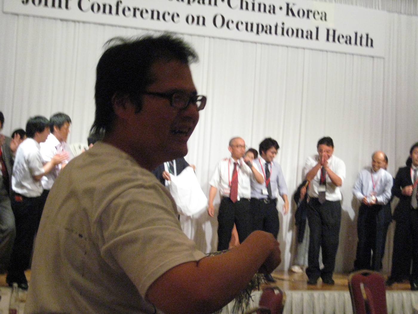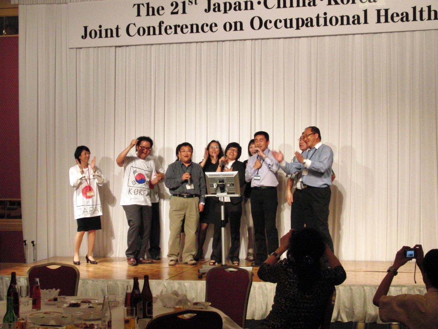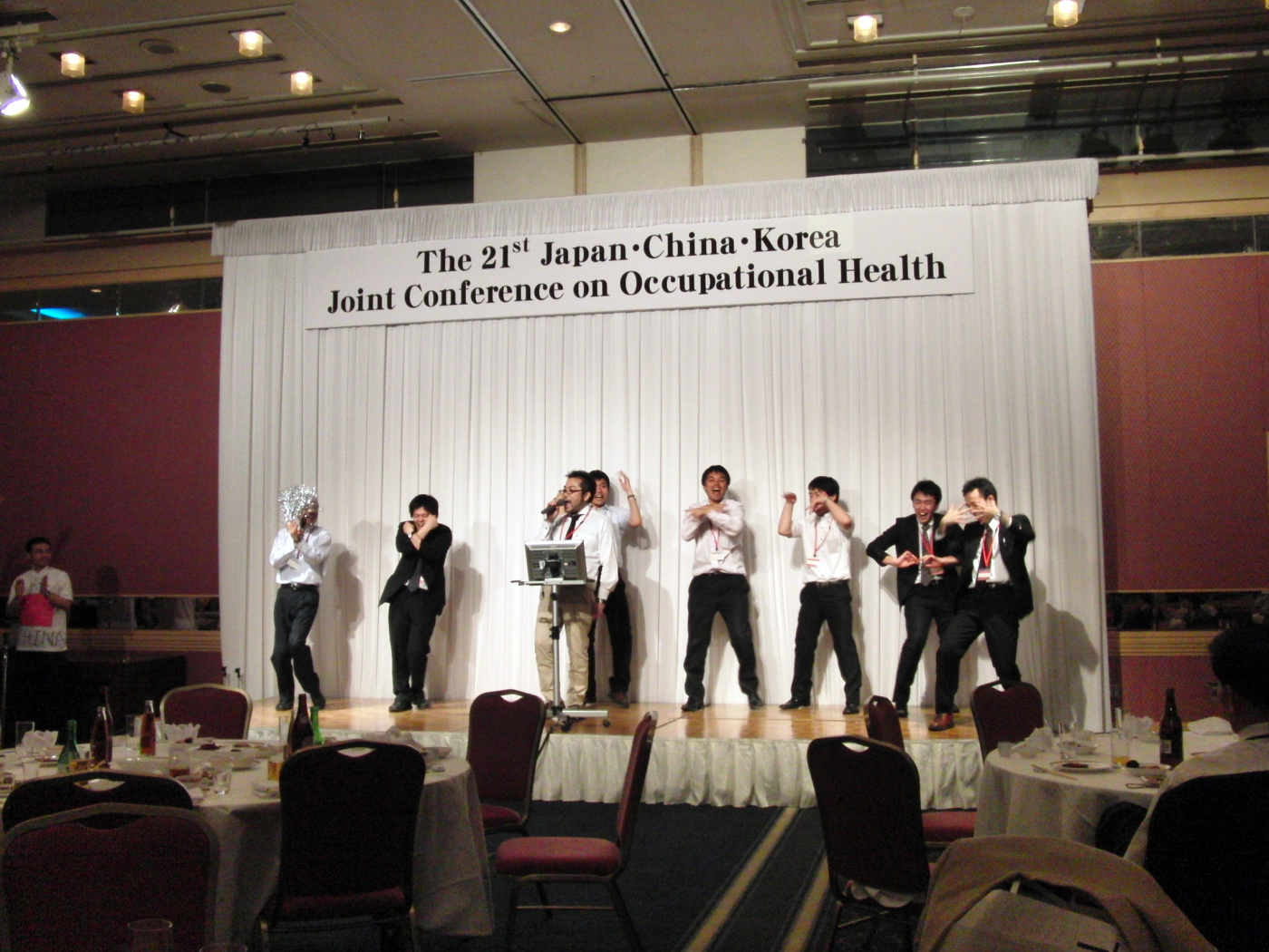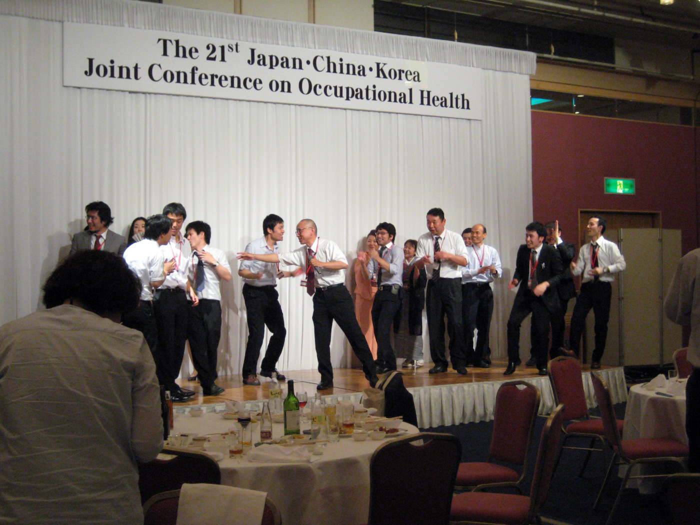 | 2010.6.10.-12. 宇都宮にて,第21回第日中韓産業保健学術集談会が栃木県総合文化センター(宇都宮市)で,催されました。 うちからは,西村・前田・熊谷の3人が,ポスター発表でした。 いろんなセッションの様子です。 ICOHプレジデントの小木先生もいらっしゃってました。 ポスターと2 min. presentationがありました。 我々もしっかり発表しています。 来年は,中国ですね! 他にもシンポジウムなどのアナウンスも! □ □ □ □ □ □ □ □ □ □ □ □ □ □ □ □ □ □ □ □ □ 発表の様子を北里大角田先生より頂戴しました。感謝です。 宇都宮は・・・大槻は2度ほど,行きましたけれど・・・。 さすがに懇親会は餃子とカクテルだったそうです。 これはスタッフの記念写真かしら? 懇親会後??? 懇親会で武藤先生のご挨拶ですね・・・ 最初の日のpre-gatheringかしら? エンタテイメントは阿波踊り? そしてKARAOKE大会でしょうか? 懇親会です。 (動画 ↑ をクリックです) 北里の角田先生・・大活躍です! 本当に,飛び跳ねてらっしゃいます! 彼はプロレス団体にも深く関わっているから・・いっち,にぃ,さぁっん! ダァ〜〜〜ってかな? |