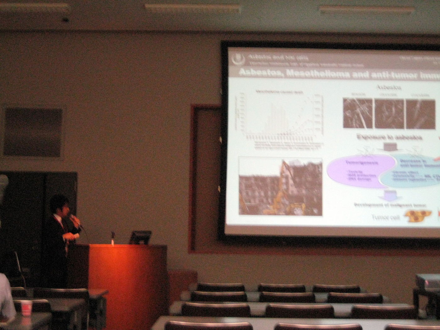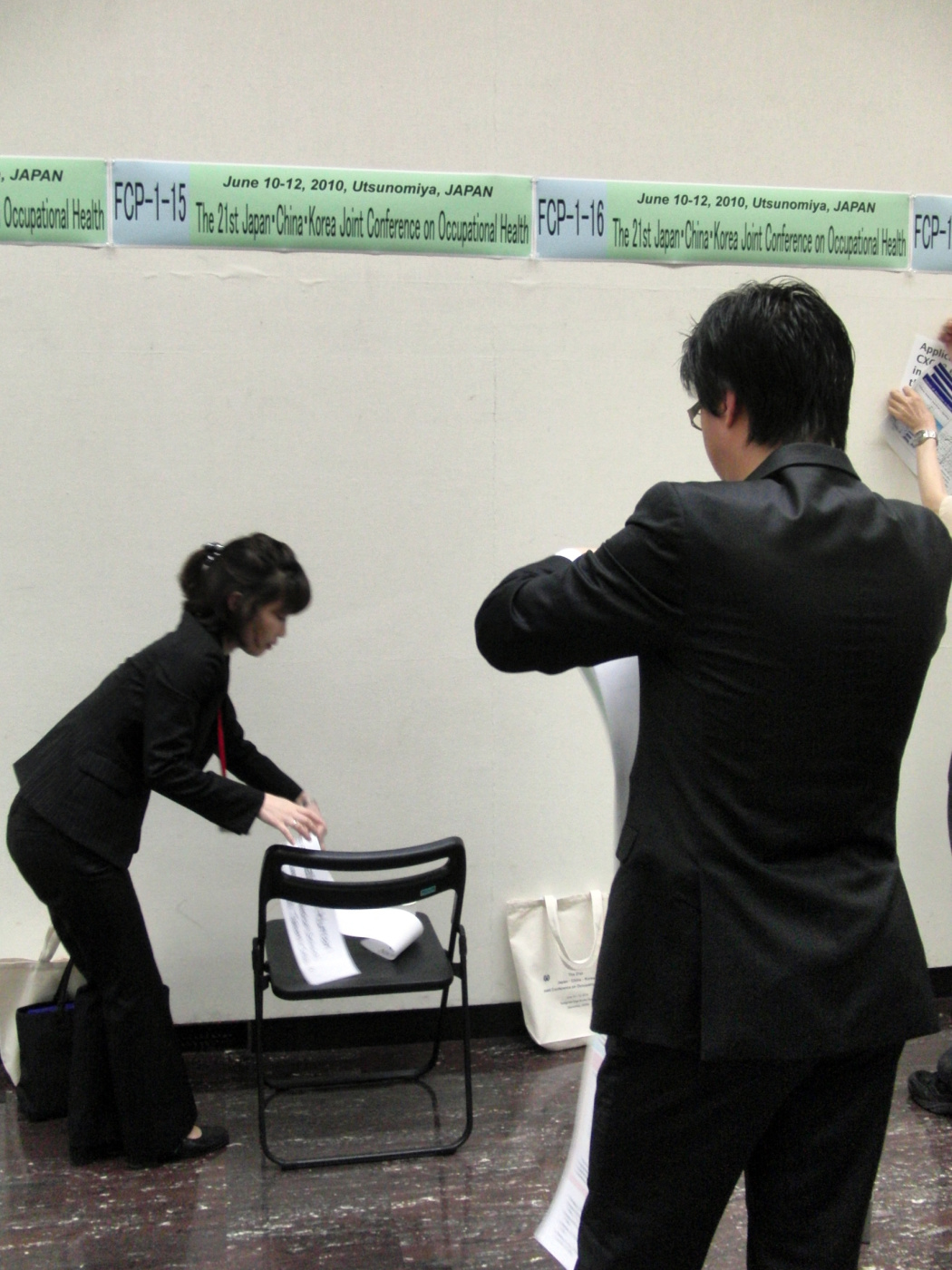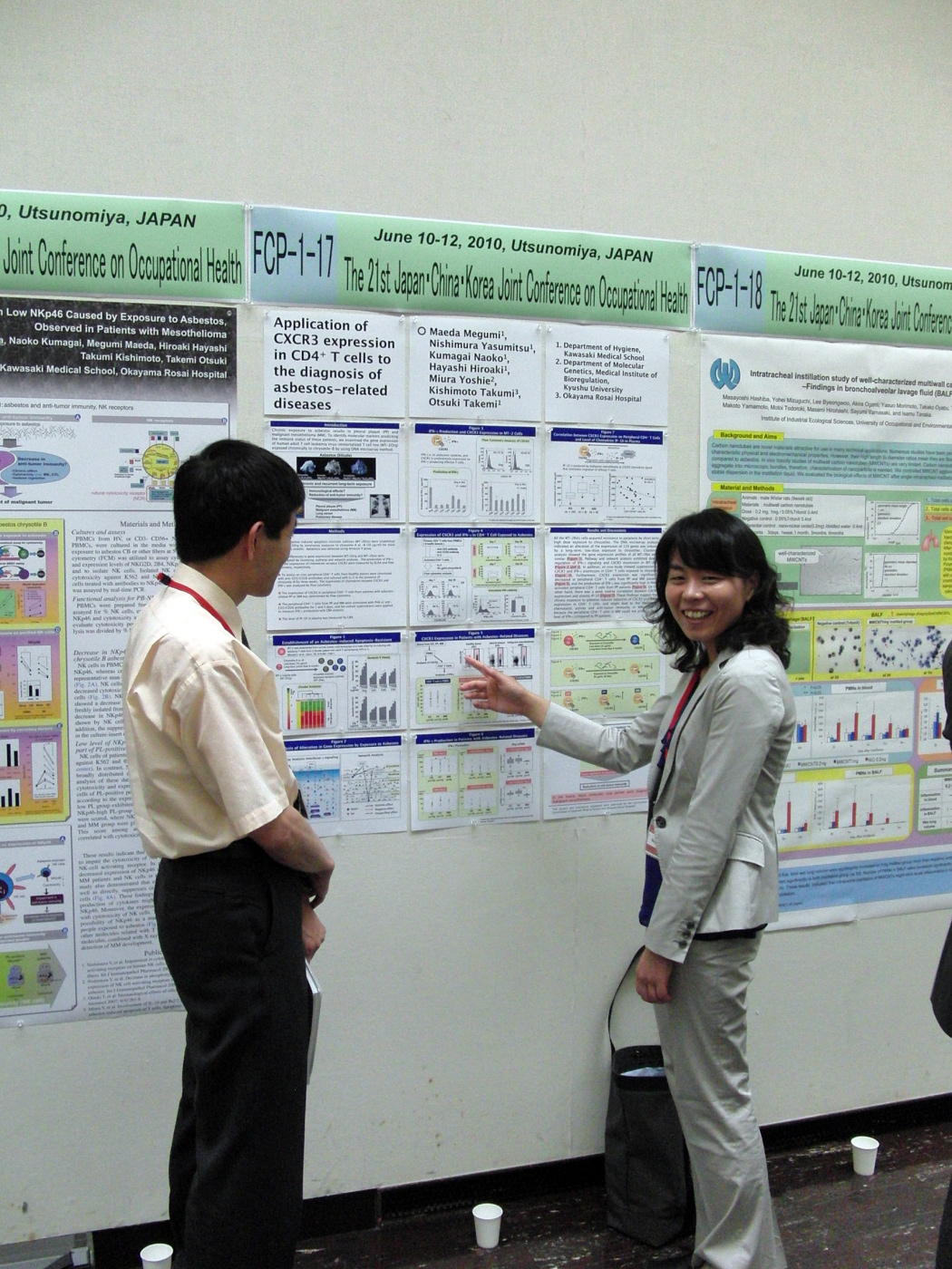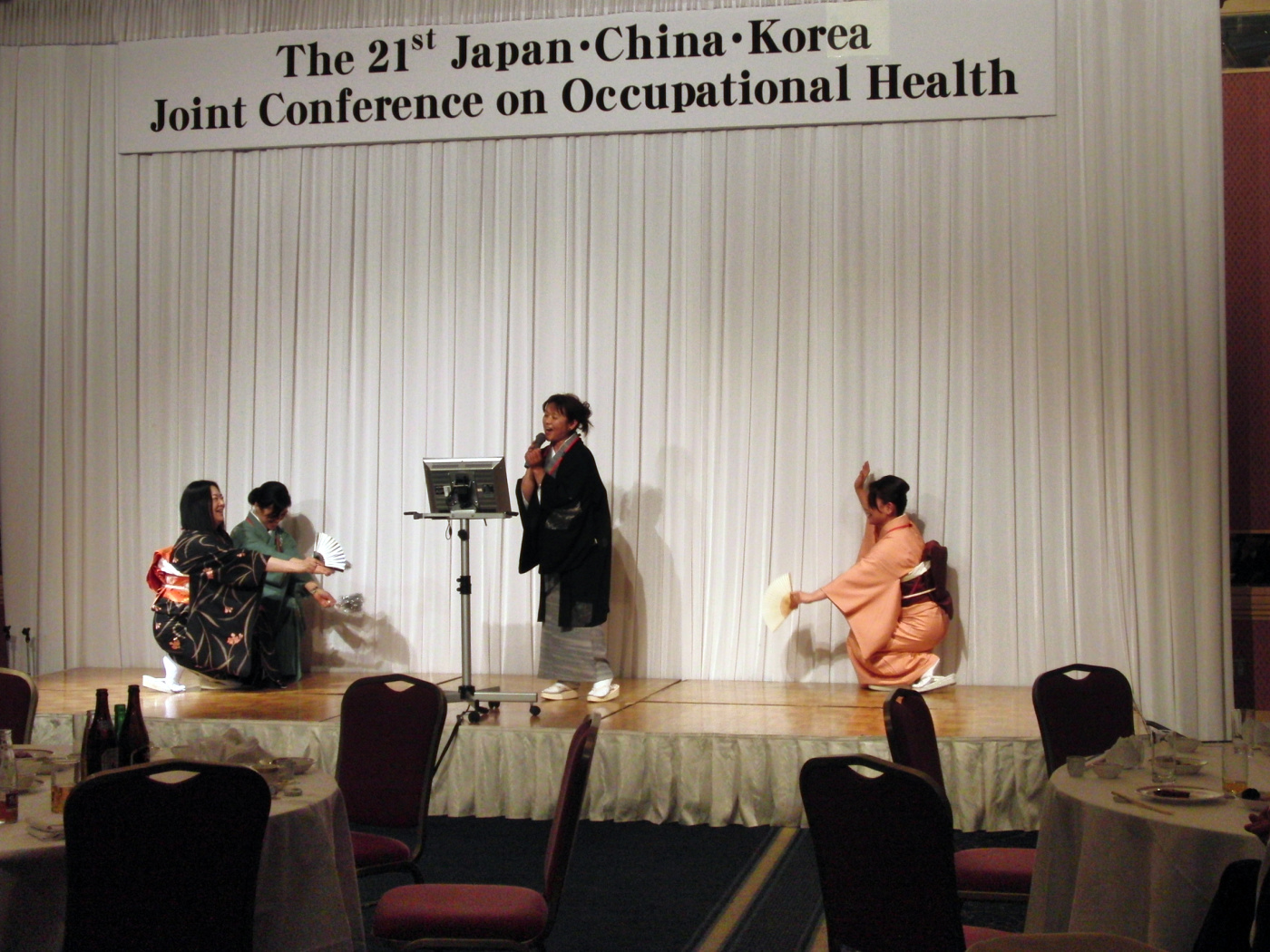 | 2010.6.10.-12. 宇都宮にて,第21回第日中韓産業保健学術集談会が栃木県総合文化センター(宇都宮市)で,催されました。 うちからは,西村・前田・熊谷の3人が,ポスター発表でした。 いろんなセッションの様子です。 ICOHプレジデントの小木先生もいらっしゃってました。 ポスターと2 min. presentationがありました。 我々もしっかり発表しています。 来年は,中国ですね! 他にもシンポジウムなどのアナウンスも! □ □ □ □ □ □ □ □ □ □ □ □ □ □ □ □ □ □ □ □ □ 発表の様子を北里大角田先生より頂戴しました。感謝です。 宇都宮は・・・大槻は2度ほど,行きましたけれど・・・。 さすがに懇親会は餃子とカクテルだったそうです。 これはスタッフの記念写真かしら? 懇親会後??? 懇親会で武藤先生のご挨拶ですね・・・ 最初の日のpre-gatheringかしら? エンタテイメントは阿波踊り? そしてKARAOKE大会でしょうか? 懇親会です。 (動画 ↑ をクリックです) 北里の角田先生・・大活躍です! 本当に,飛び跳ねてらっしゃいます! 彼はプロレス団体にも深く関わっているから・・いっち,にぃ,さぁっん! ダァ〜〜〜ってかな? |