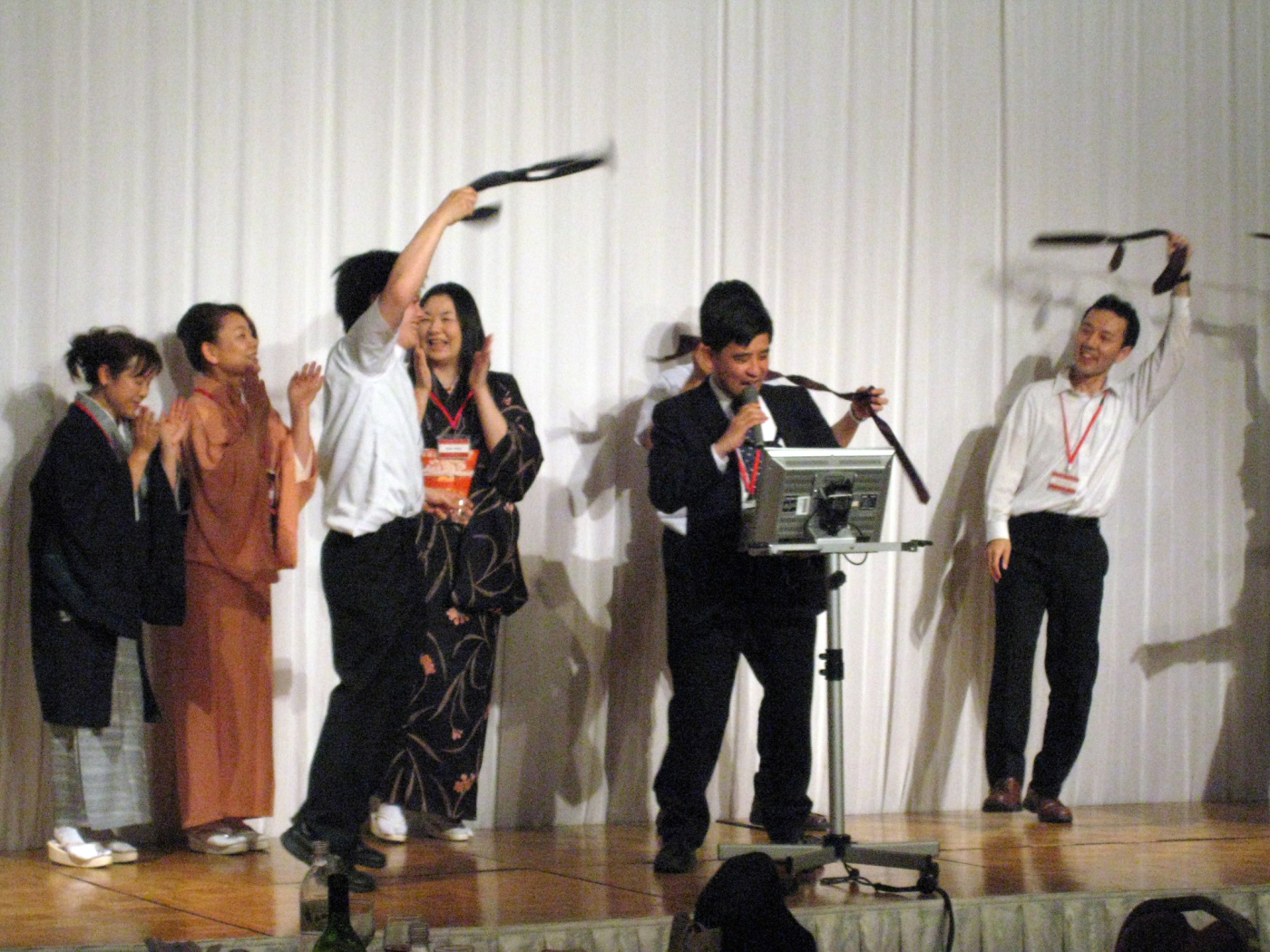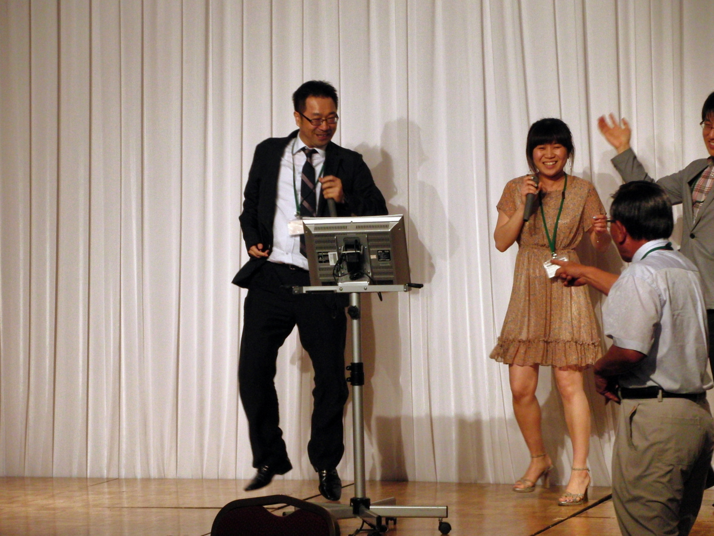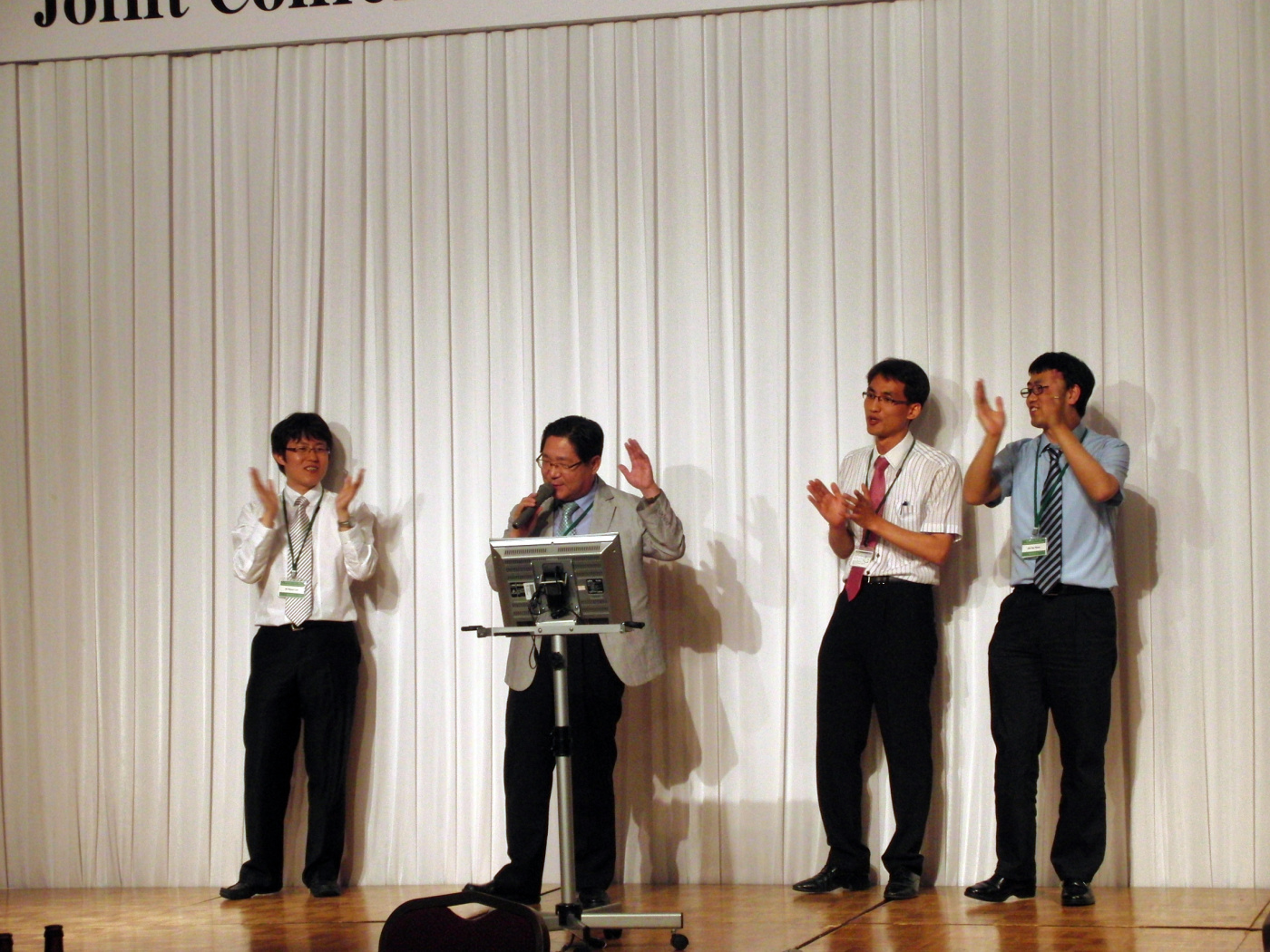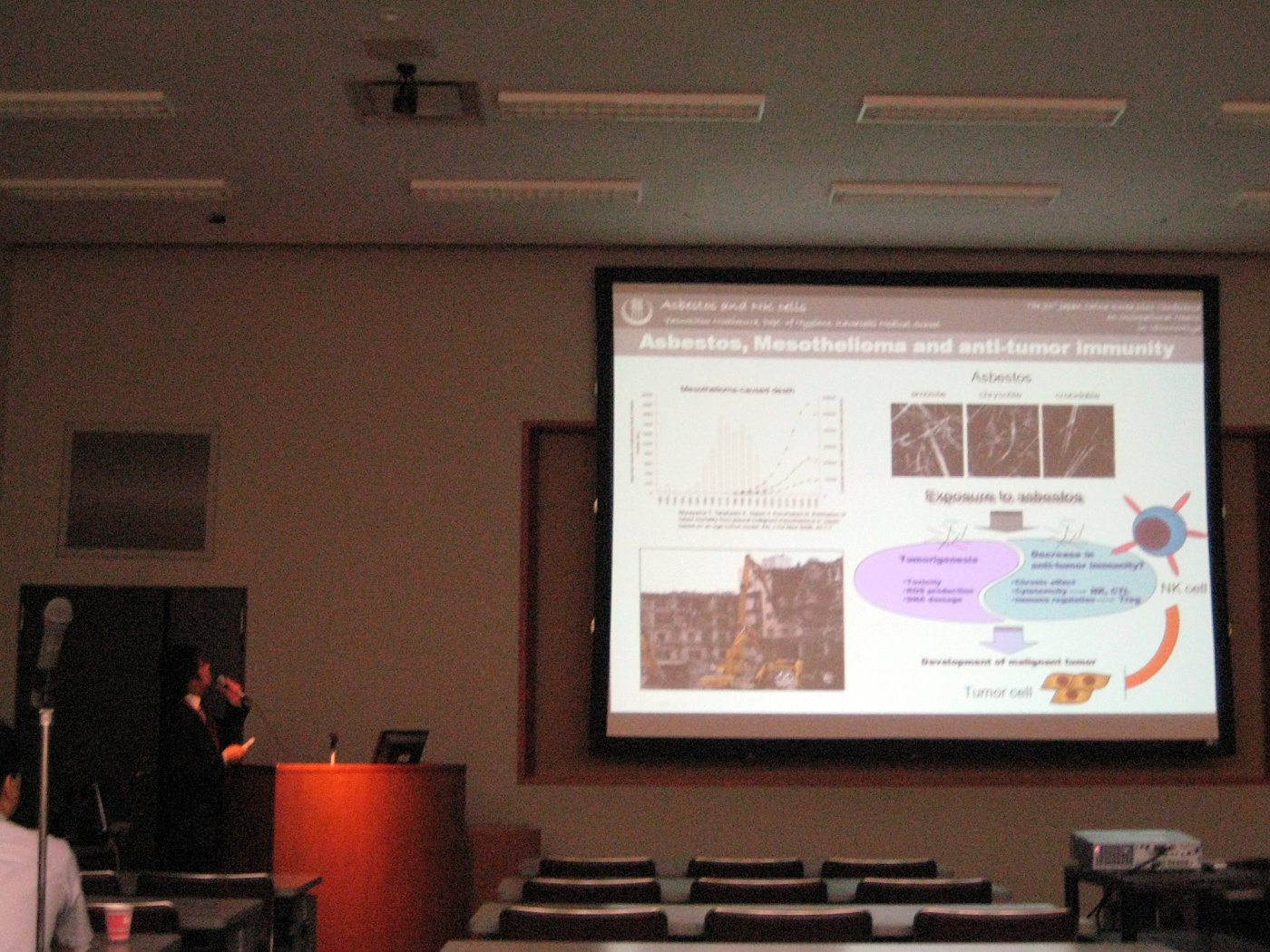| 2010.6.10.-12. 宇都宮にて,第21回第日中韓産業保健学術集談会が栃木県総合文化センター(宇都宮市)で,催されました。 うちからは,西村・前田・熊谷の3人が,ポスター発表でした。 いろんなセッションの様子です。 ICOHプレジデントの小木先生もいらっしゃってました。 ポスターと2 min. presentationがありました。 我々もしっかり発表しています。 来年は,中国ですね! 他にもシンポジウムなどのアナウンスも! □ □ □ □ □ □ □ □ □ □ □ □ □ □ □ □ □ □ □ □ □ 発表の様子を北里大角田先生より頂戴しました。感謝です。 宇都宮は・・・大槻は2度ほど,行きましたけれど・・・。 さすがに懇親会は餃子とカクテルだったそうです。 これはスタッフの記念写真かしら? 懇親会後??? 懇親会で武藤先生のご挨拶ですね・・・ 最初の日のpre-gatheringかしら? エンタテイメントは阿波踊り? そしてKARAOKE大会でしょうか? 懇親会です。 (動画 ↑ をクリックです) 北里の角田先生・・大活躍です! 本当に,飛び跳ねてらっしゃいます! 彼はプロレス団体にも深く関わっているから・・いっち,にぃ,さぁっん! ダァ〜〜〜ってかな? |