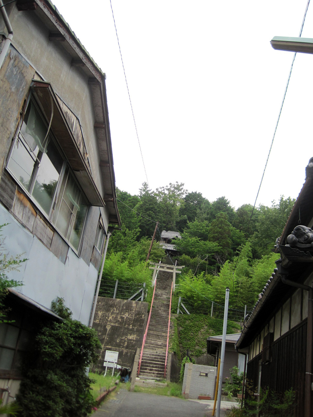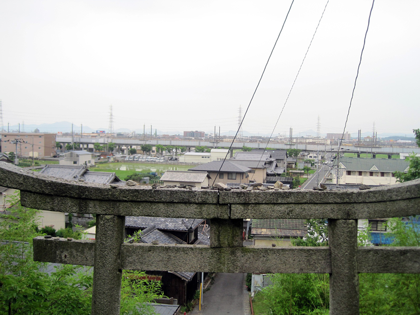 遠くコンベックスの建物なども見えていますし,鳥居と新幹線が平行して見えています。